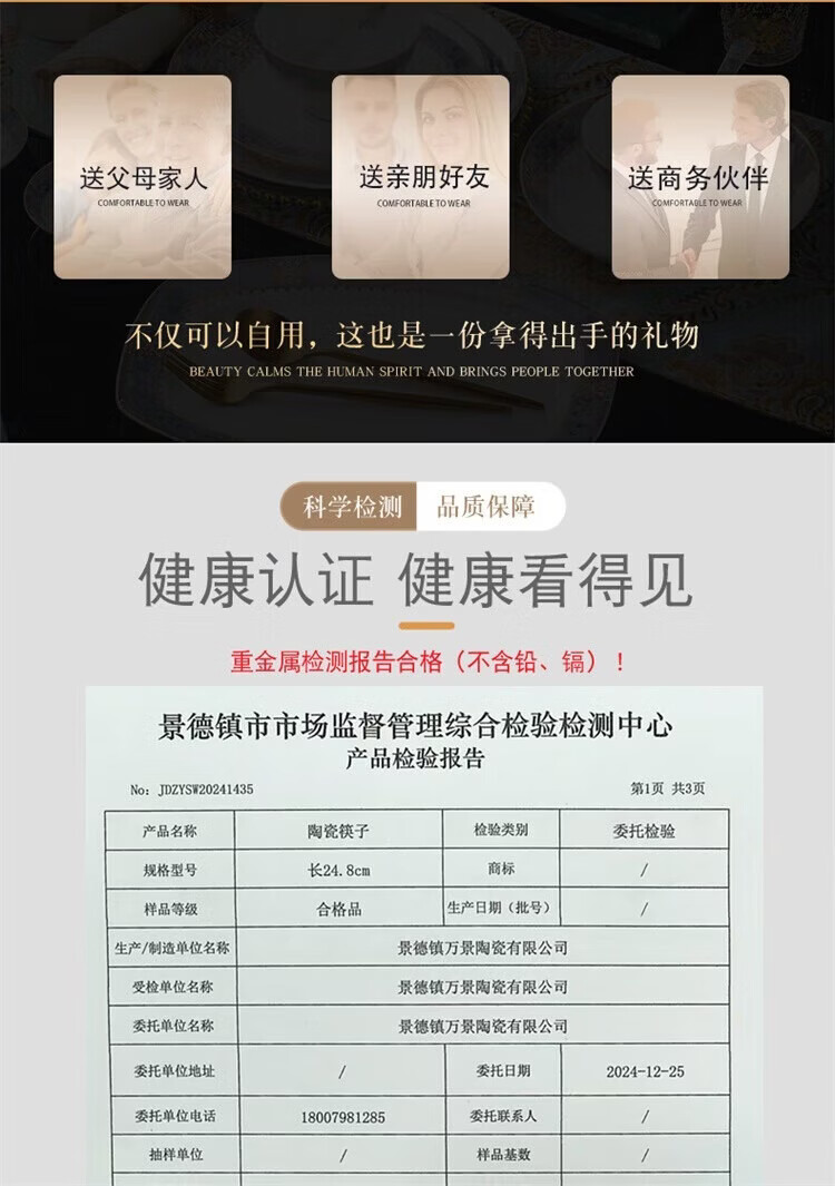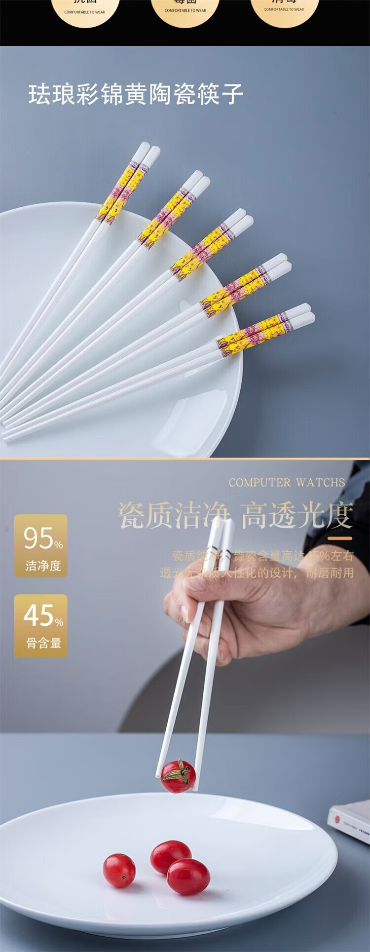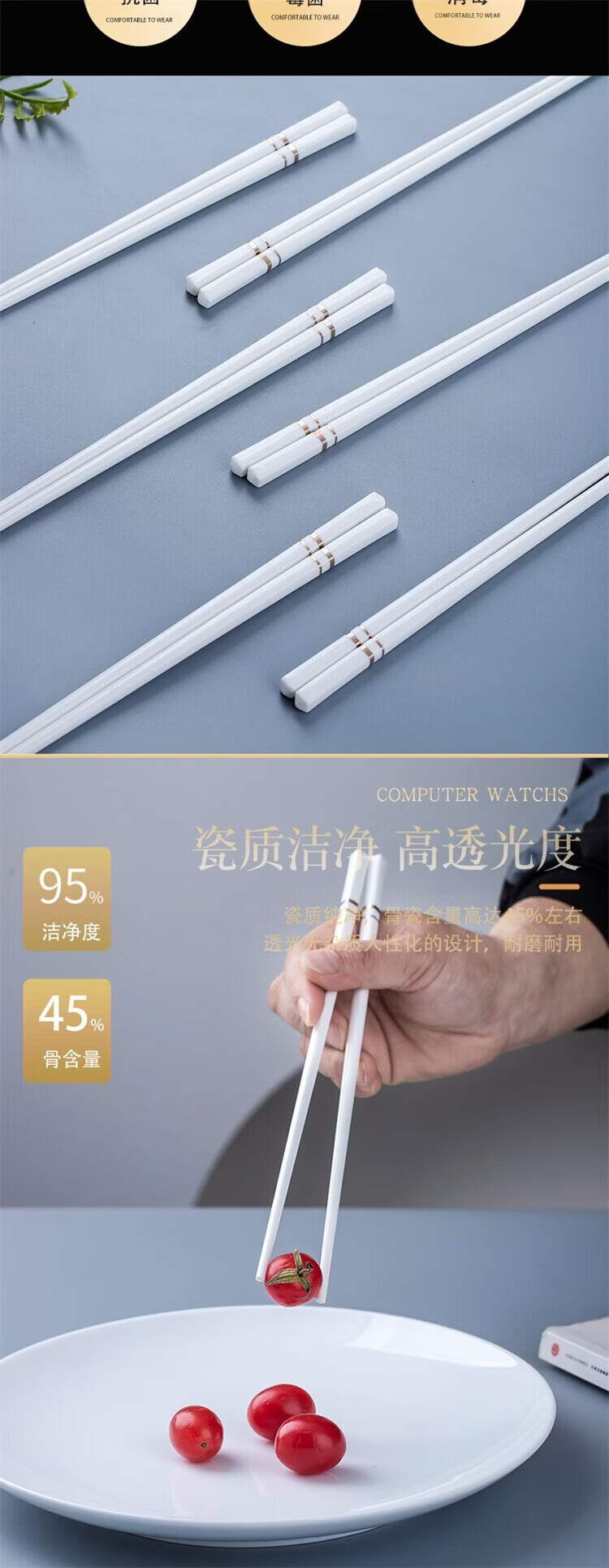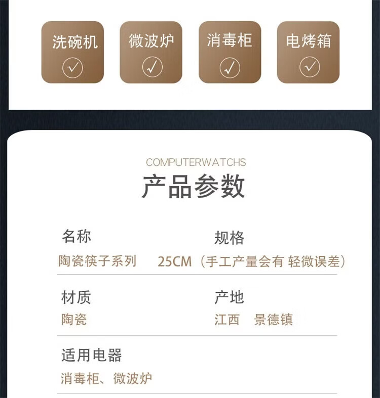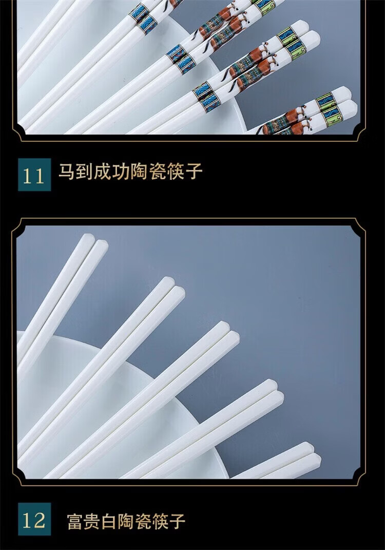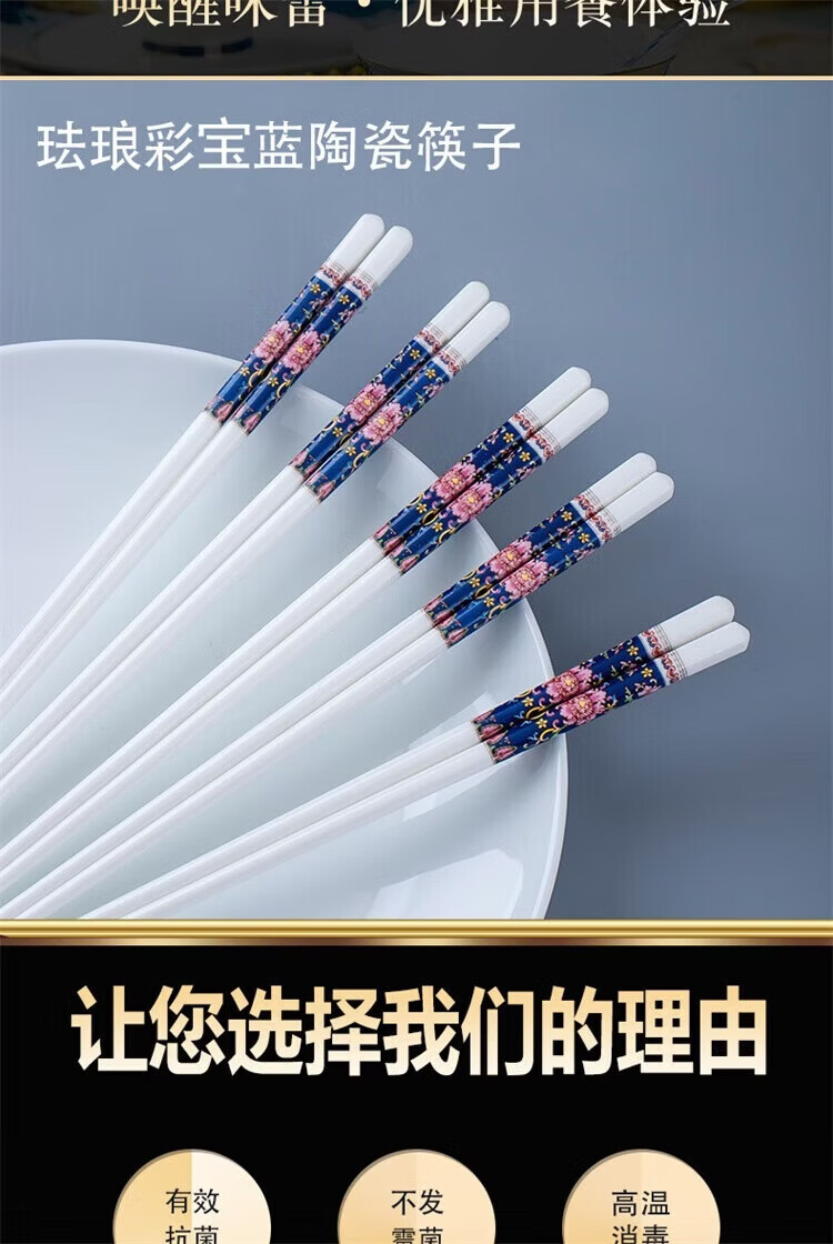 Fuou Jingdezhen Ceramic Chopsticks High-end Healthy and Environmentally Friendly Ceramic Chopsticks Time Walking Ceramic Chopsticks Ten Pairs