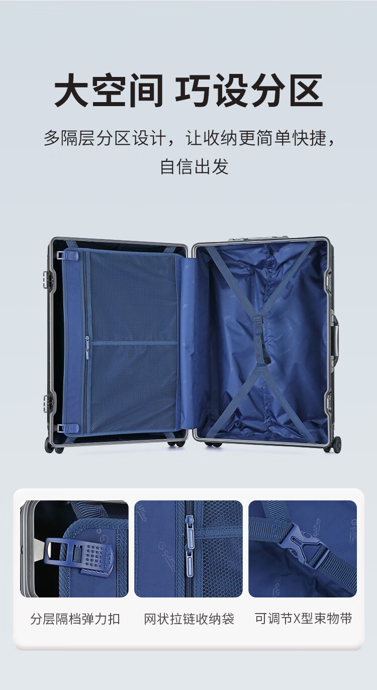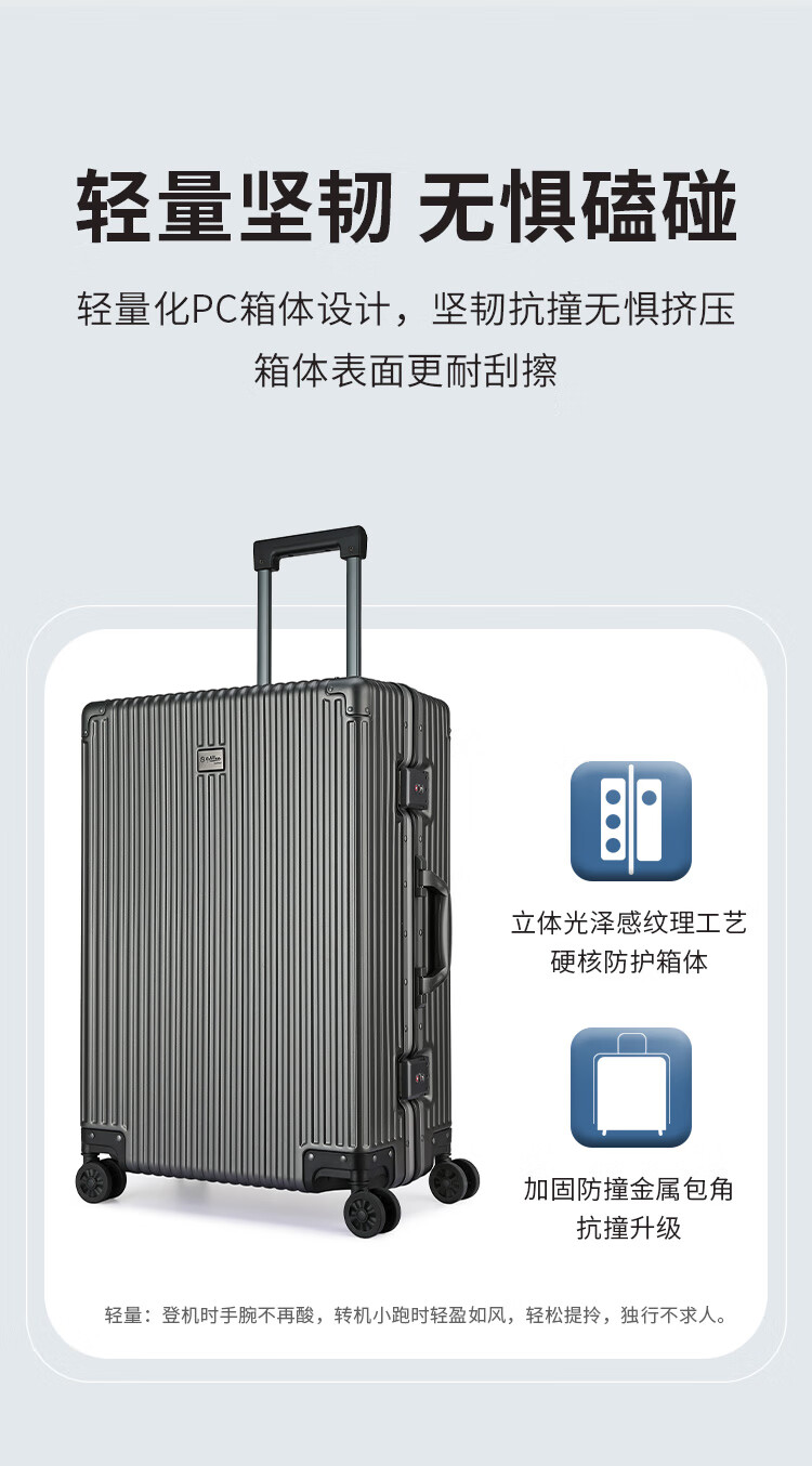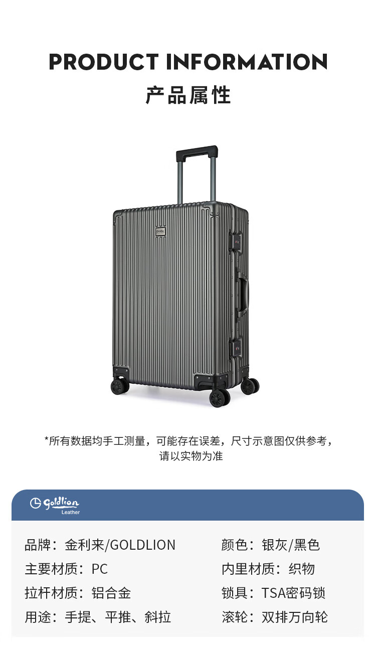 Goldlion Luggage Large Capacity Checked Code Box Lightweight Travel Trolley Case for Men and Women New Year Gift for Men Silver Gray TSA Code Lock 20 Inch (Carry-on Case Suitable for 3-5 Days Short Distance)