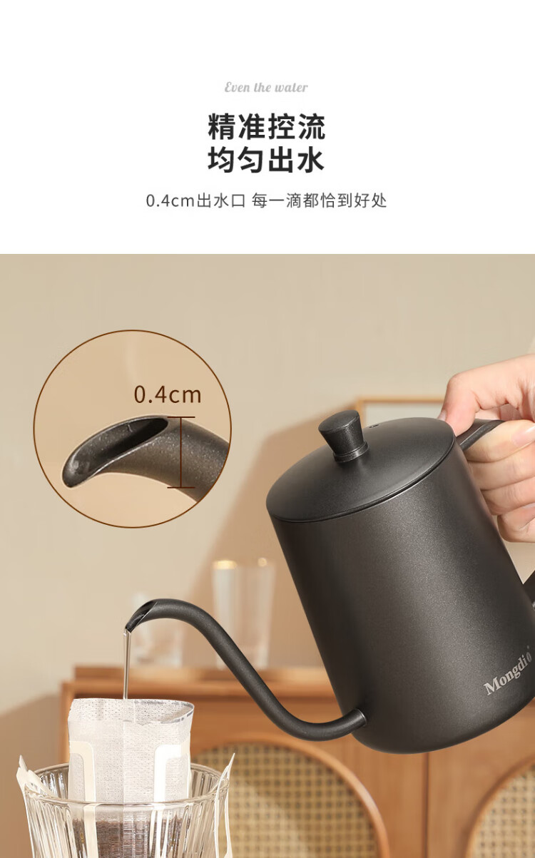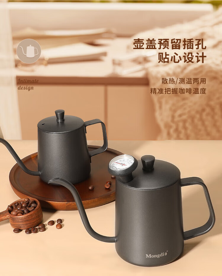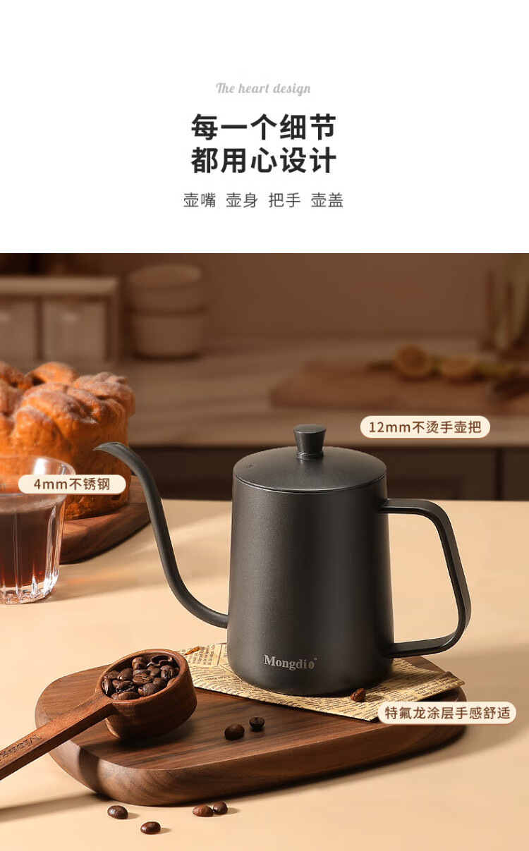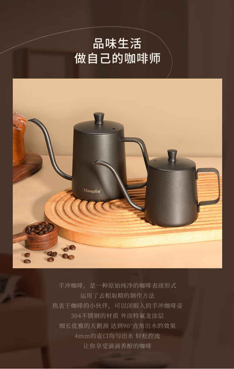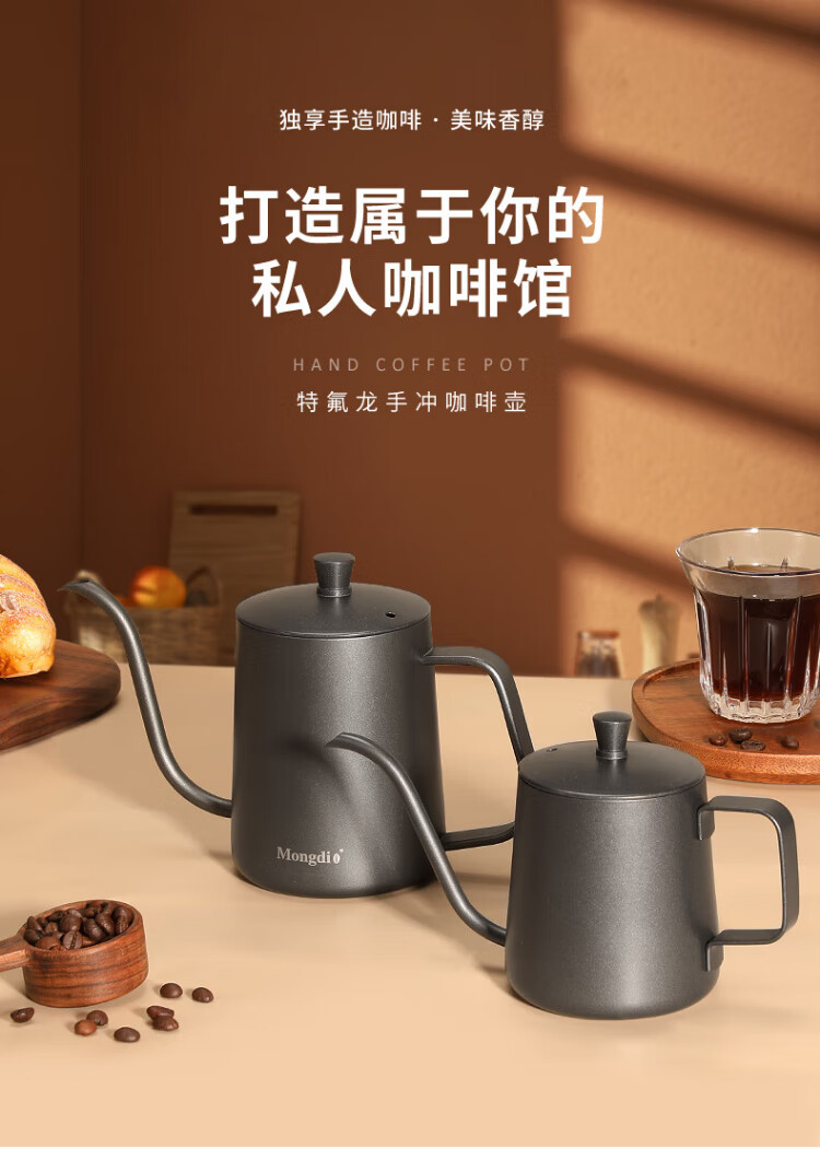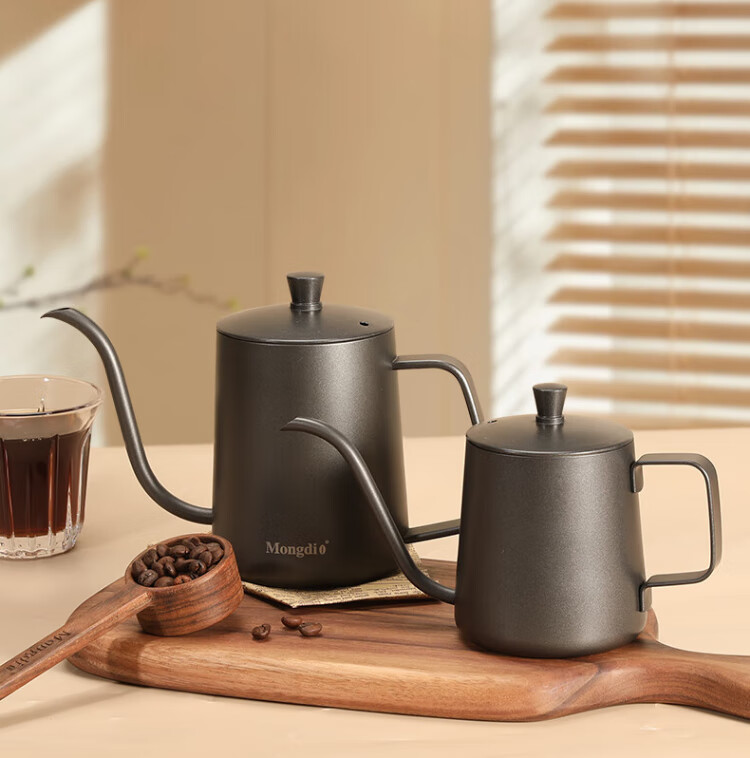Mongdio hand-pour pot ear-hung coffee utensils hand-pour coffee pot Teflon thin mouth 304 stainless steel long mouth kettle 350ml