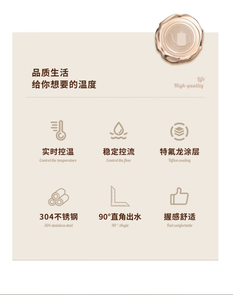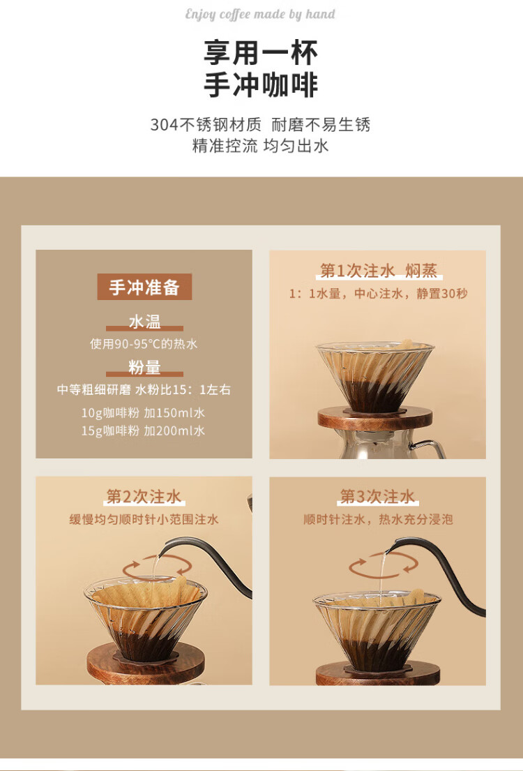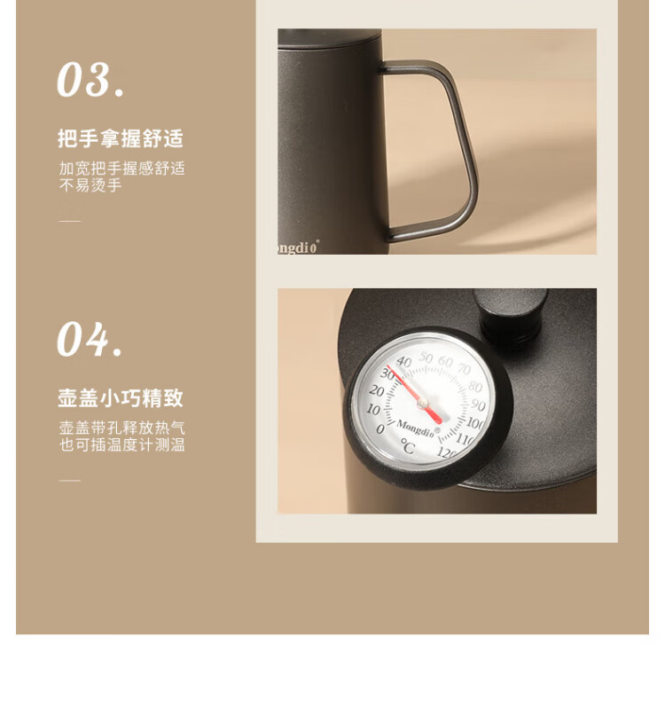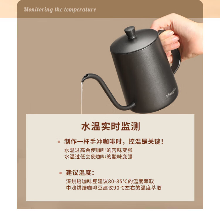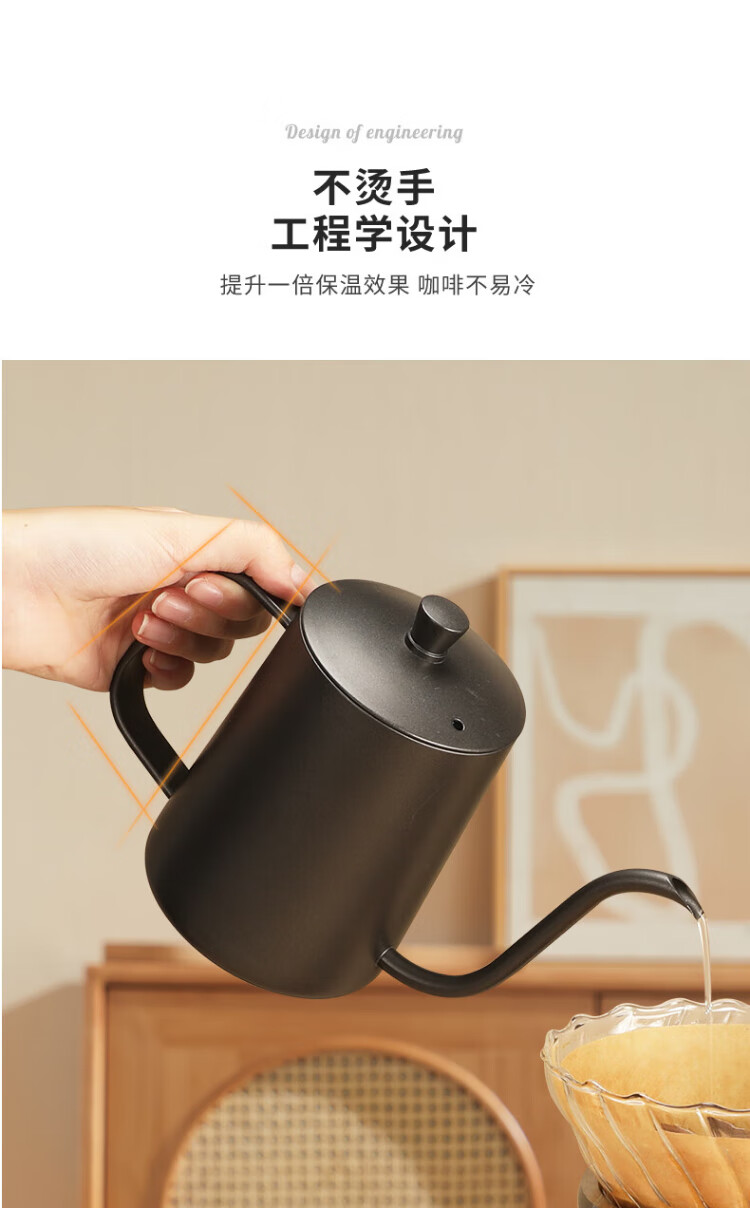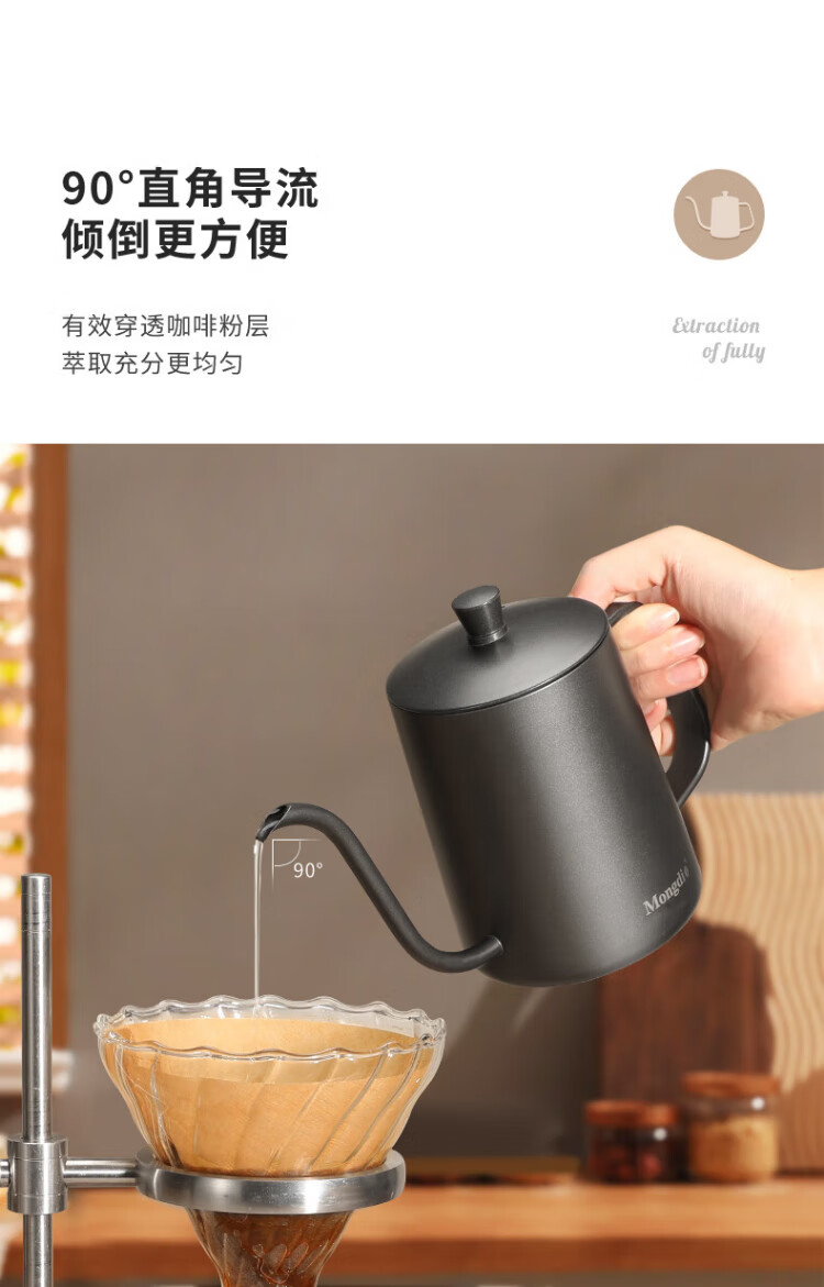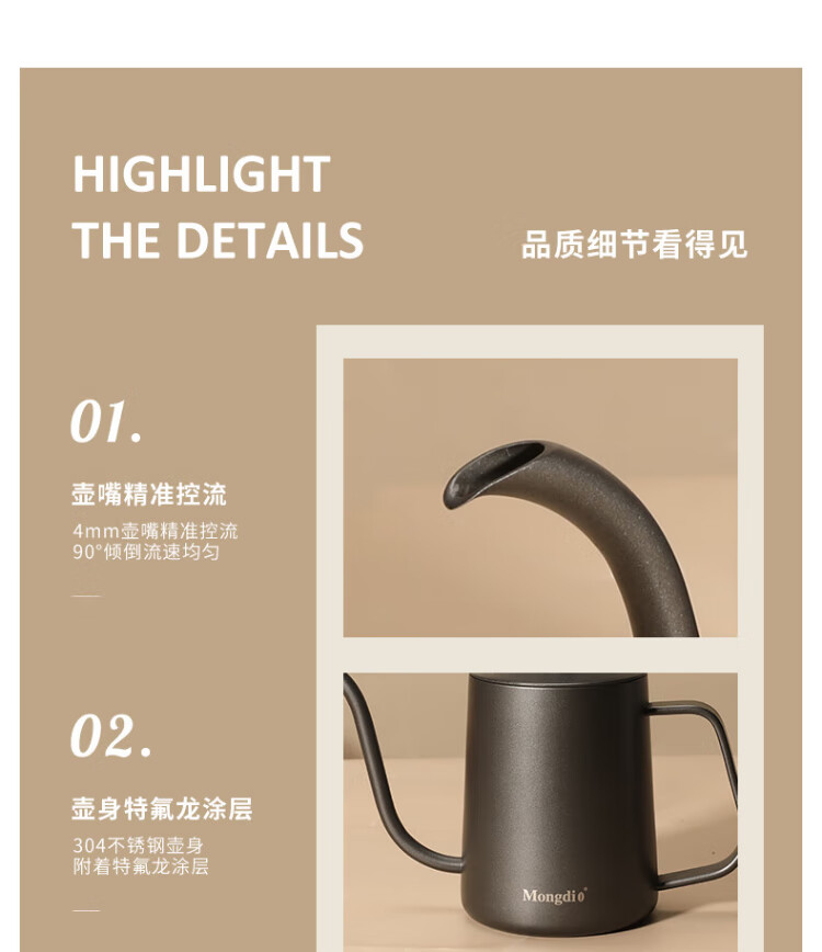 Mongdio hand-pour pot ear-hung coffee utensils hand-pour coffee pot Teflon thin mouth 304 stainless steel long mouth kettle 350ml