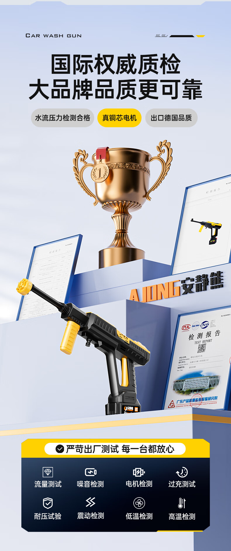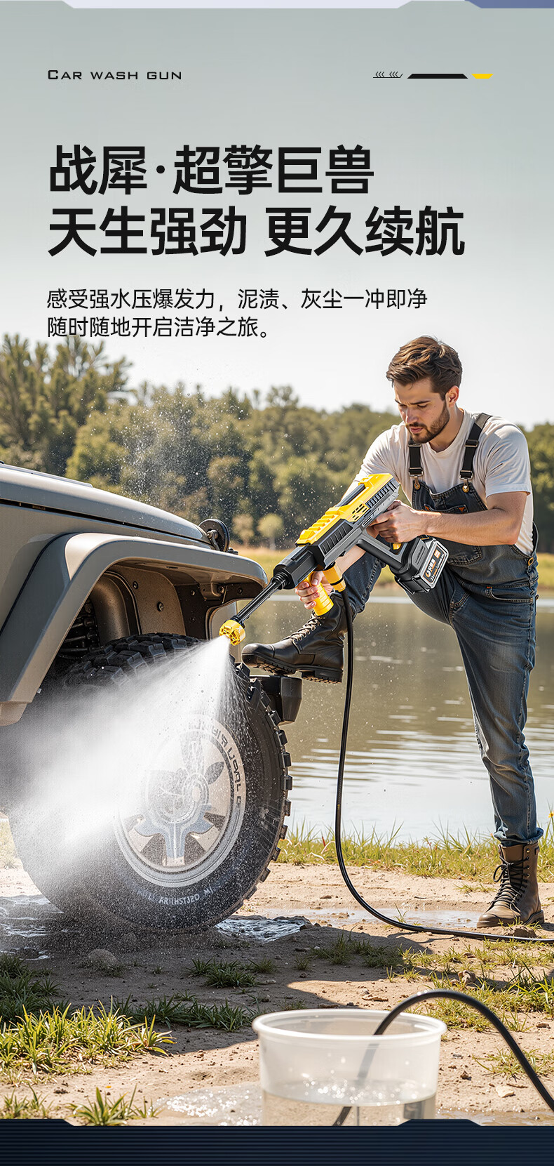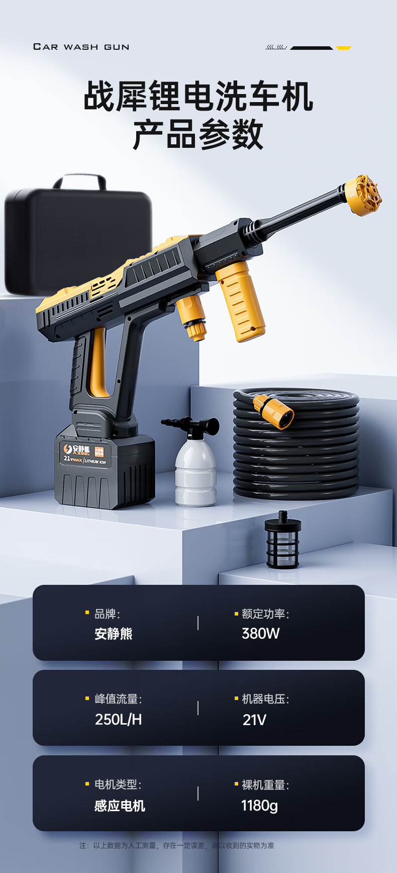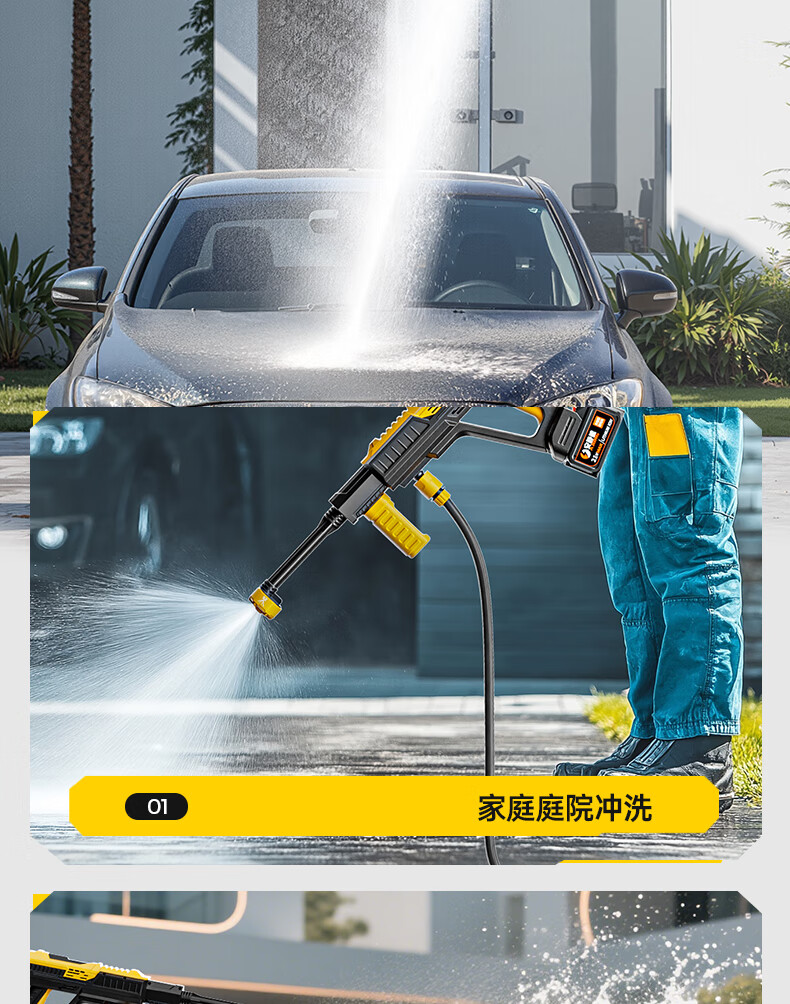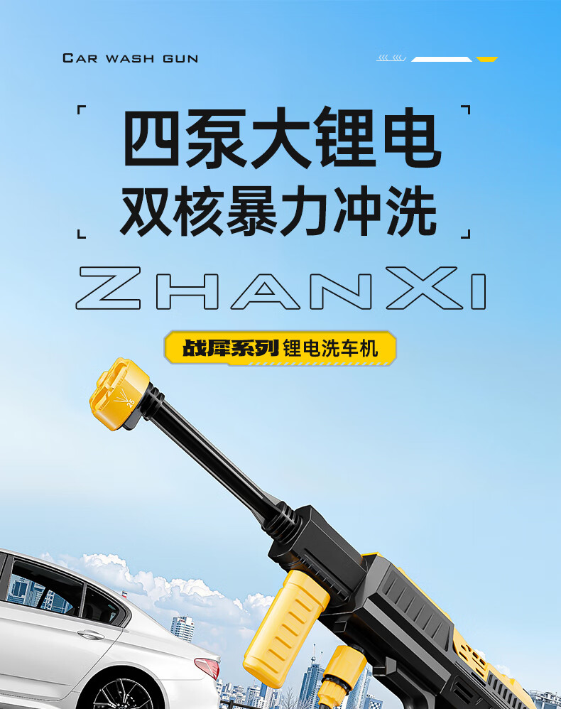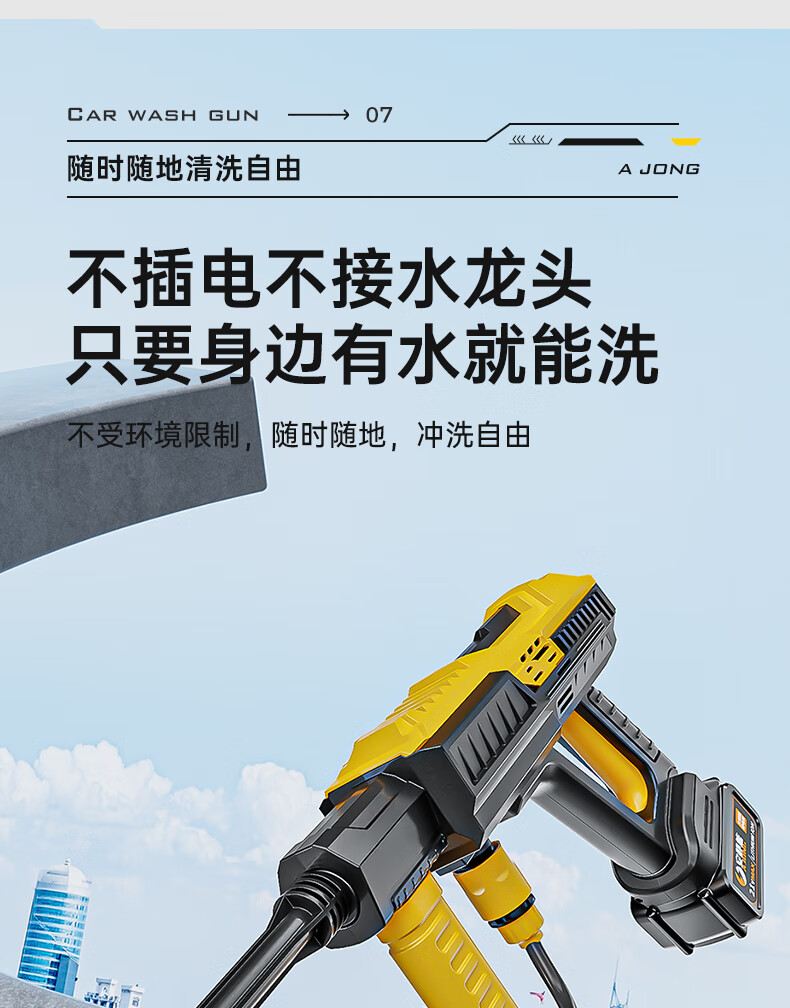 Quiet Bear wireless car washing machine high-pressure water gun lithium battery household rechargeable car wash water gun electric cleaning machine