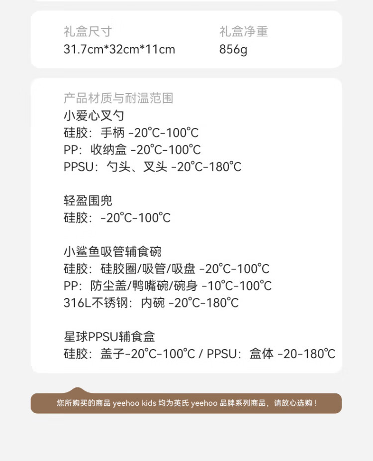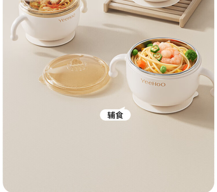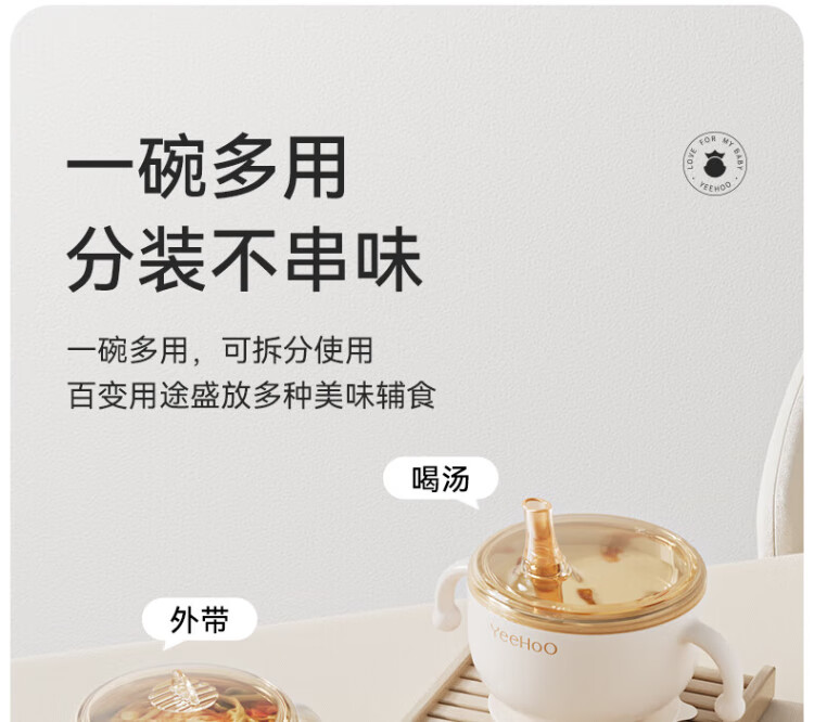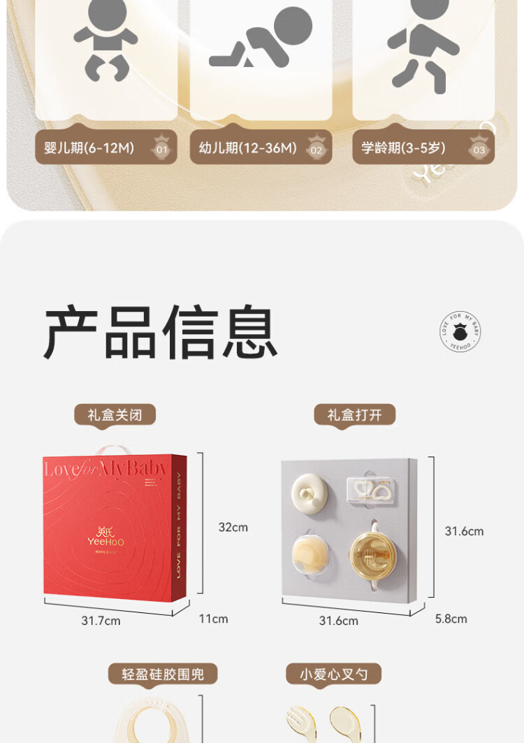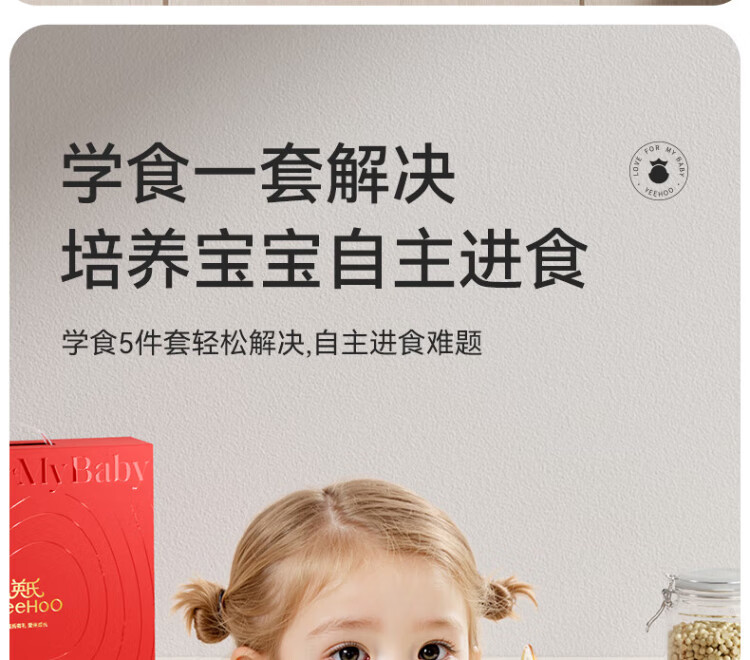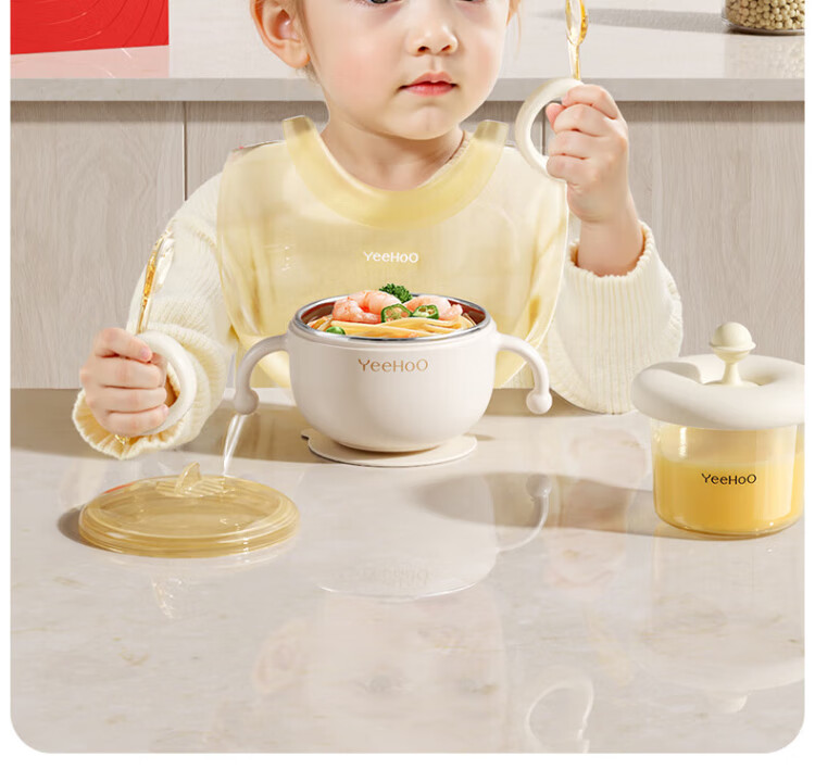 YEEHOO children's tableware gift box baby food bowl training fork spoon food box eating bib feeding five-piece set