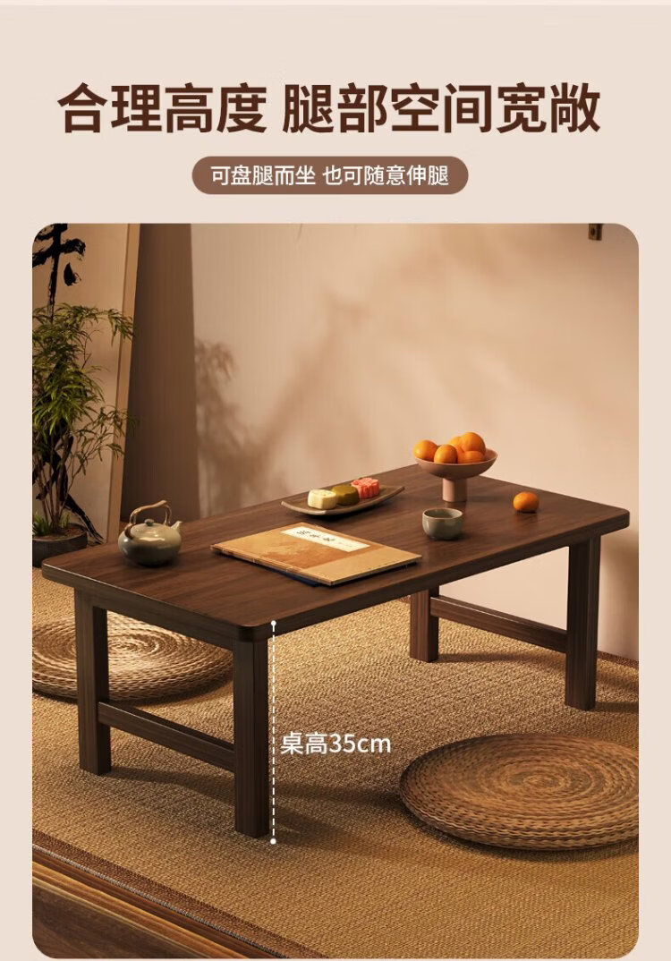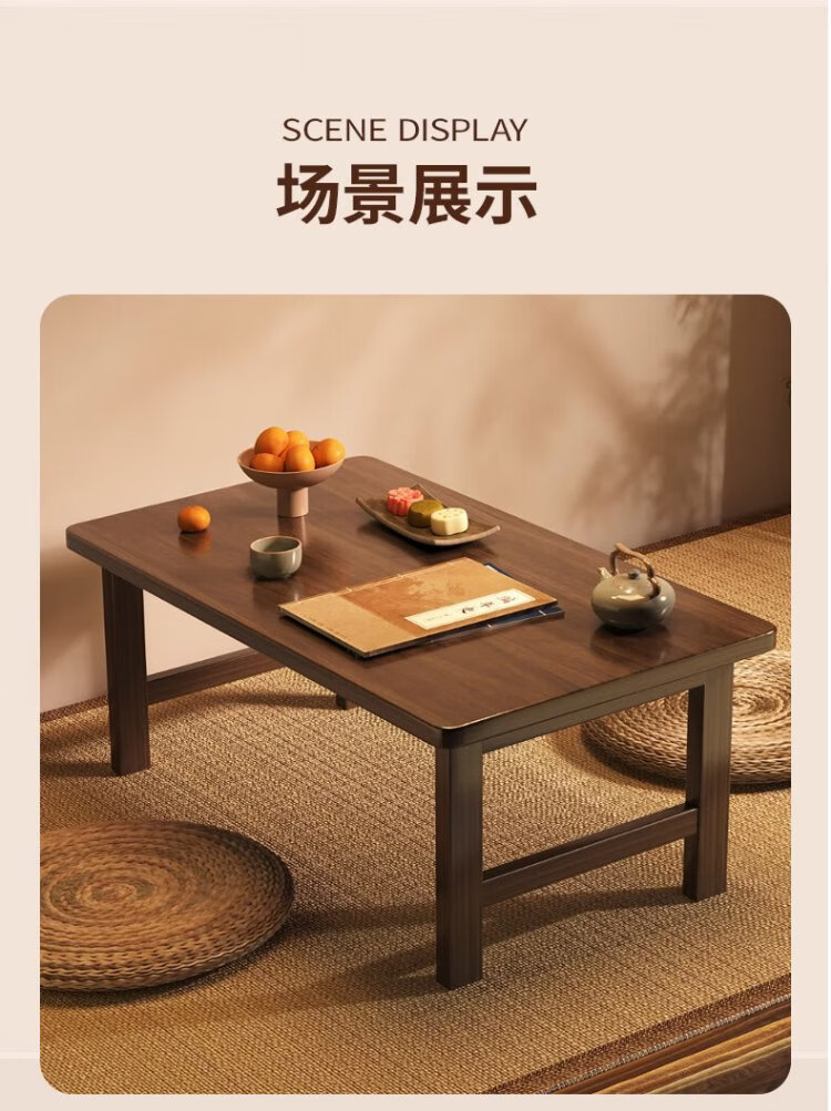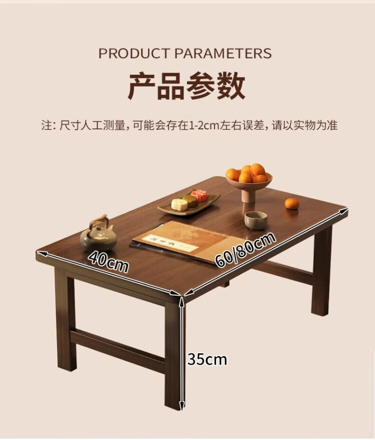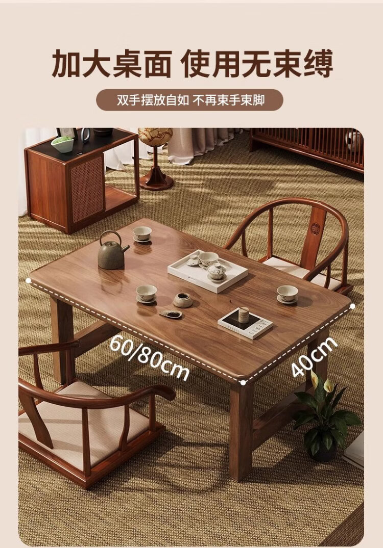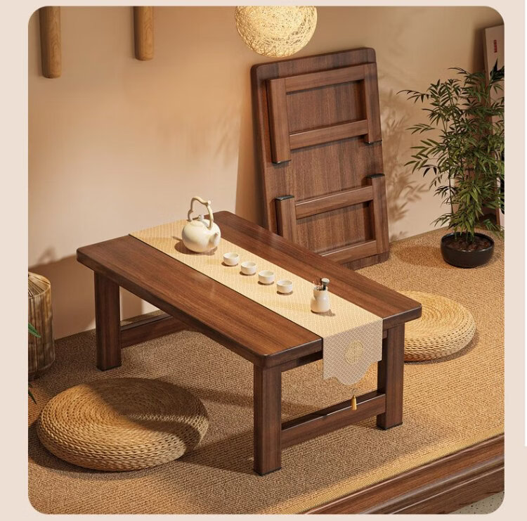 Zhuobo coffee table bay window table kang table bed table folding table small table BZ52 walnut color 80*40cm