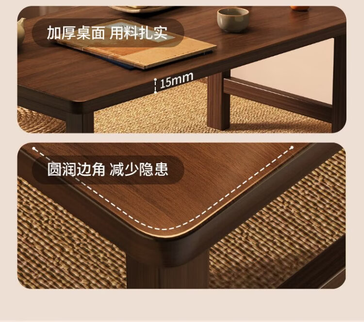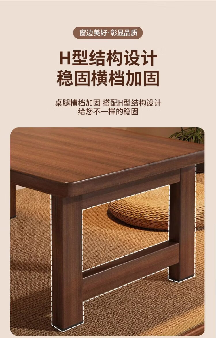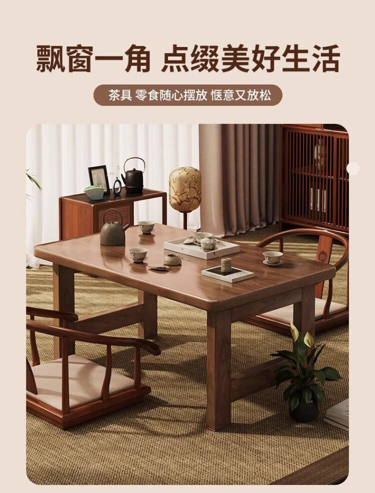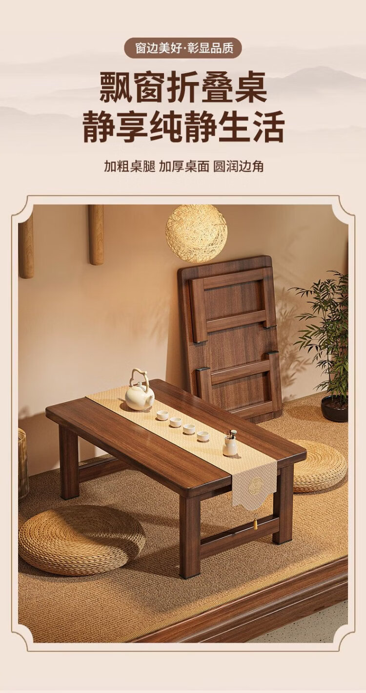 Zhuobo coffee table bay window table kang table bed table folding table small table BZ52 walnut color 80*40cm