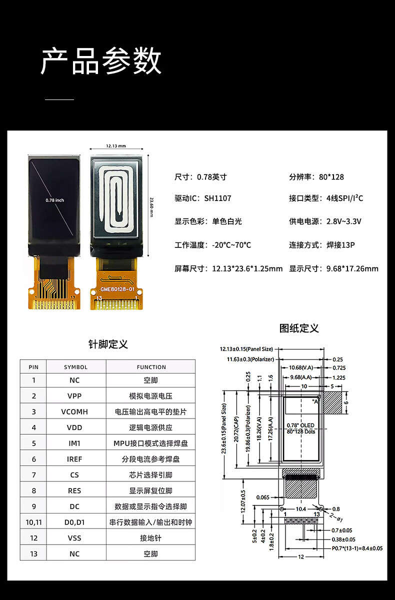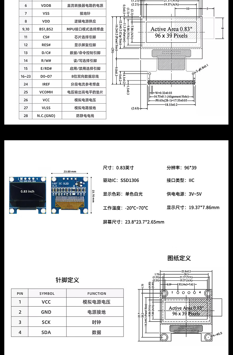 Jiudingxin monochrome OLED LCD screen development board bare screen small screen 96*39 IC chip SSD1306 0.83-inch solder pin 4-pin blue board module 1 piece JDX-OLED0832
