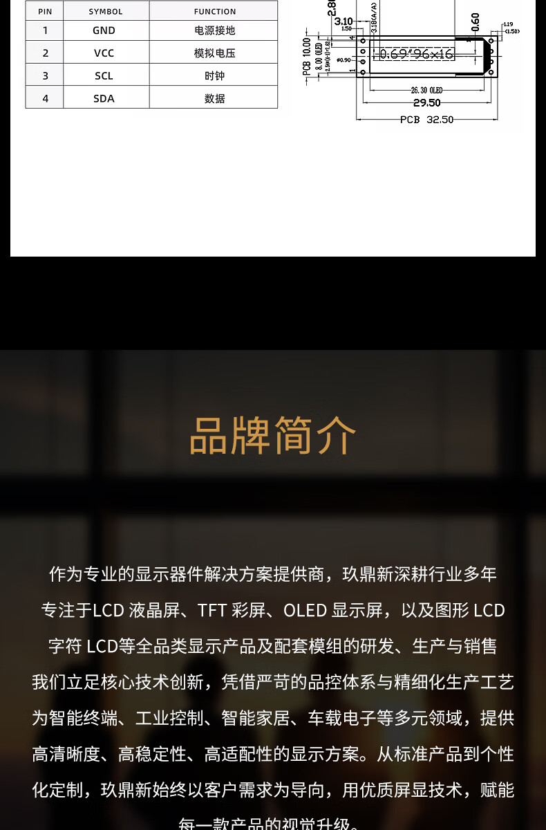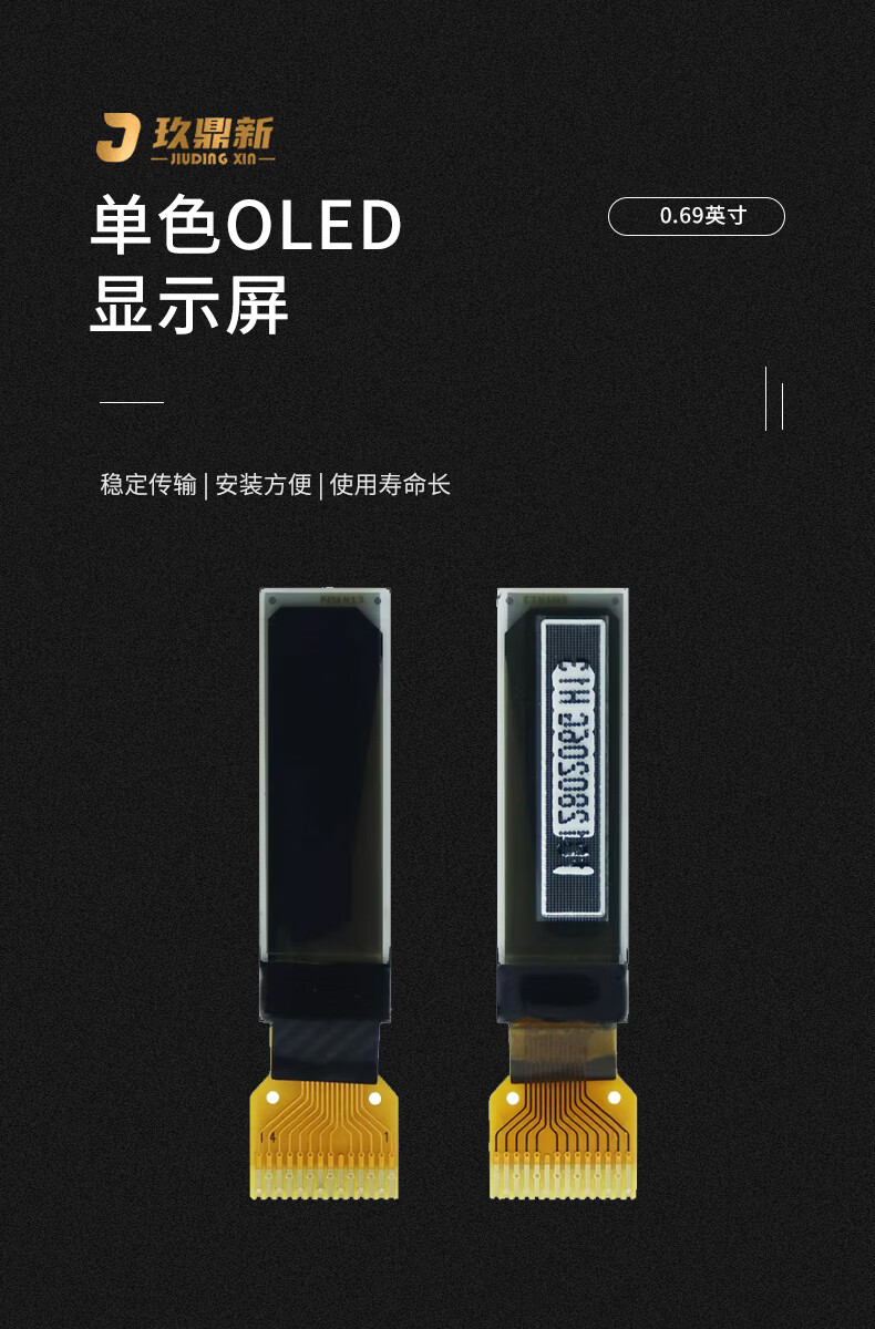 Jiudingxin monochrome OLED LCD screen development board bare screen small screen 96*16 IC chip SSD1315 0.69 inch 4-pin solder pin blue board module 2 pieces JDX-OLED0693