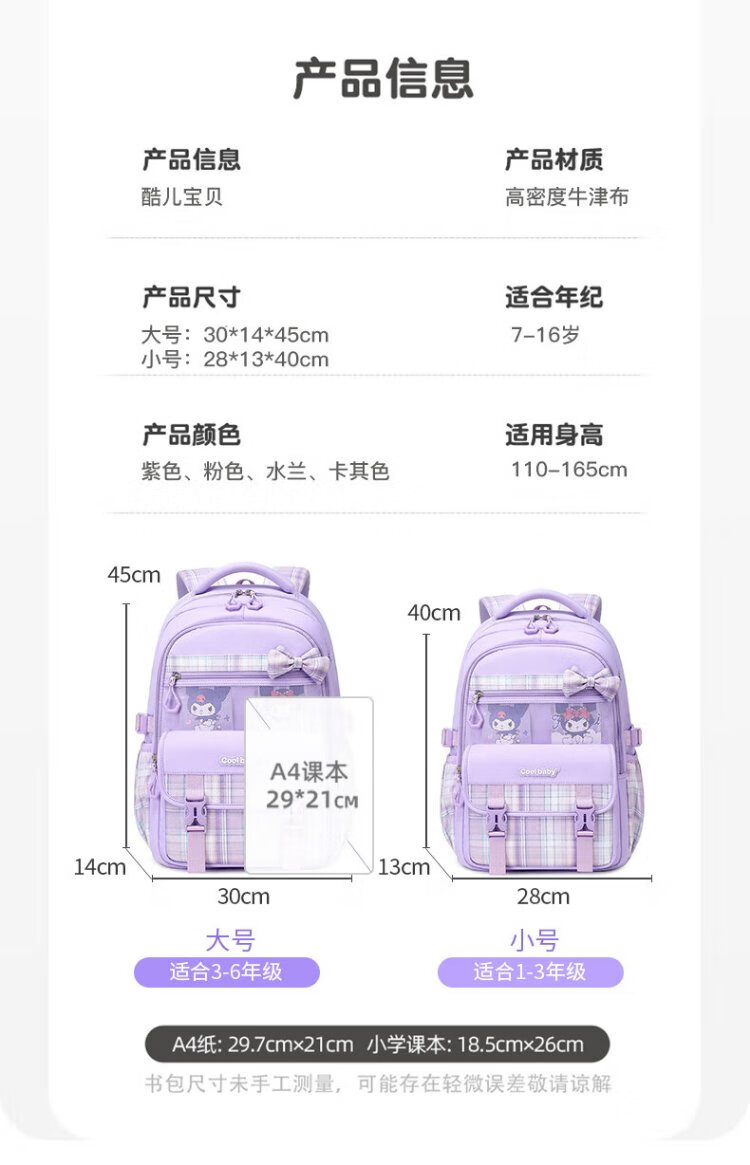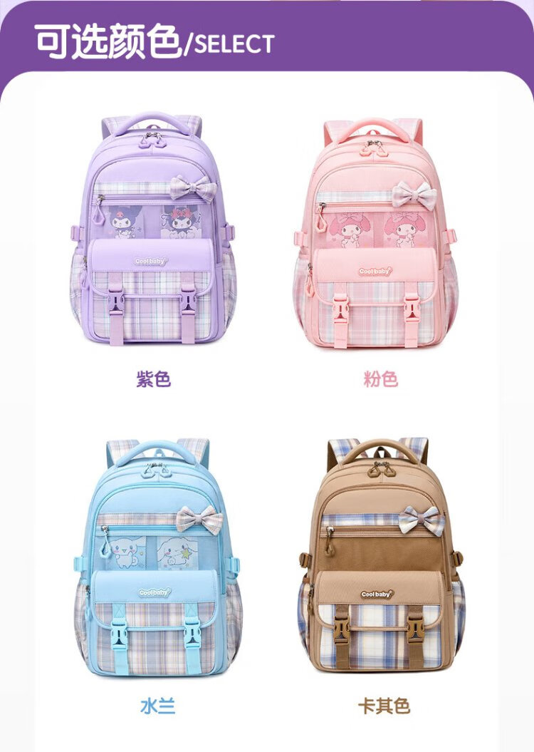 COOLBABY Coolomi pendant schoolbag primary school children's spine protection and burden reduction girls 1-3-4 grade high-looking backpack