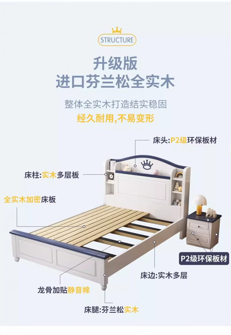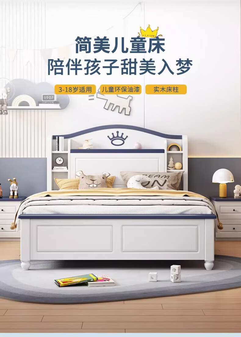 Sanskrit 2026 new solid wood children's bed 1.5m single 1.2m bedroom bed teenagers modern simple girl boy bed
