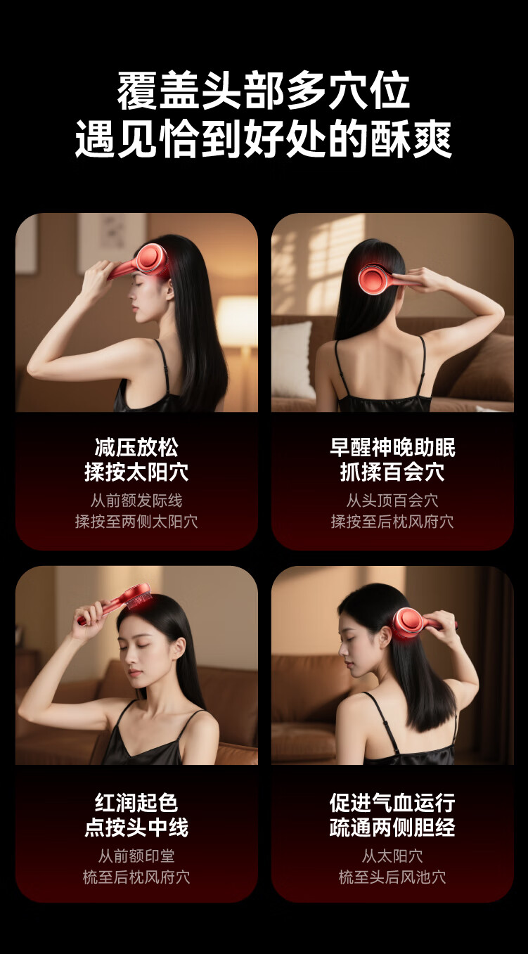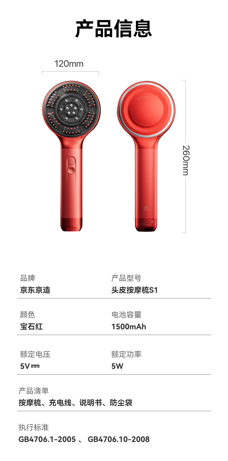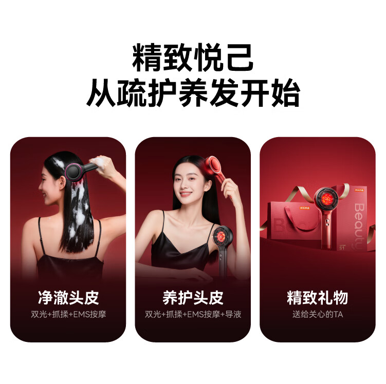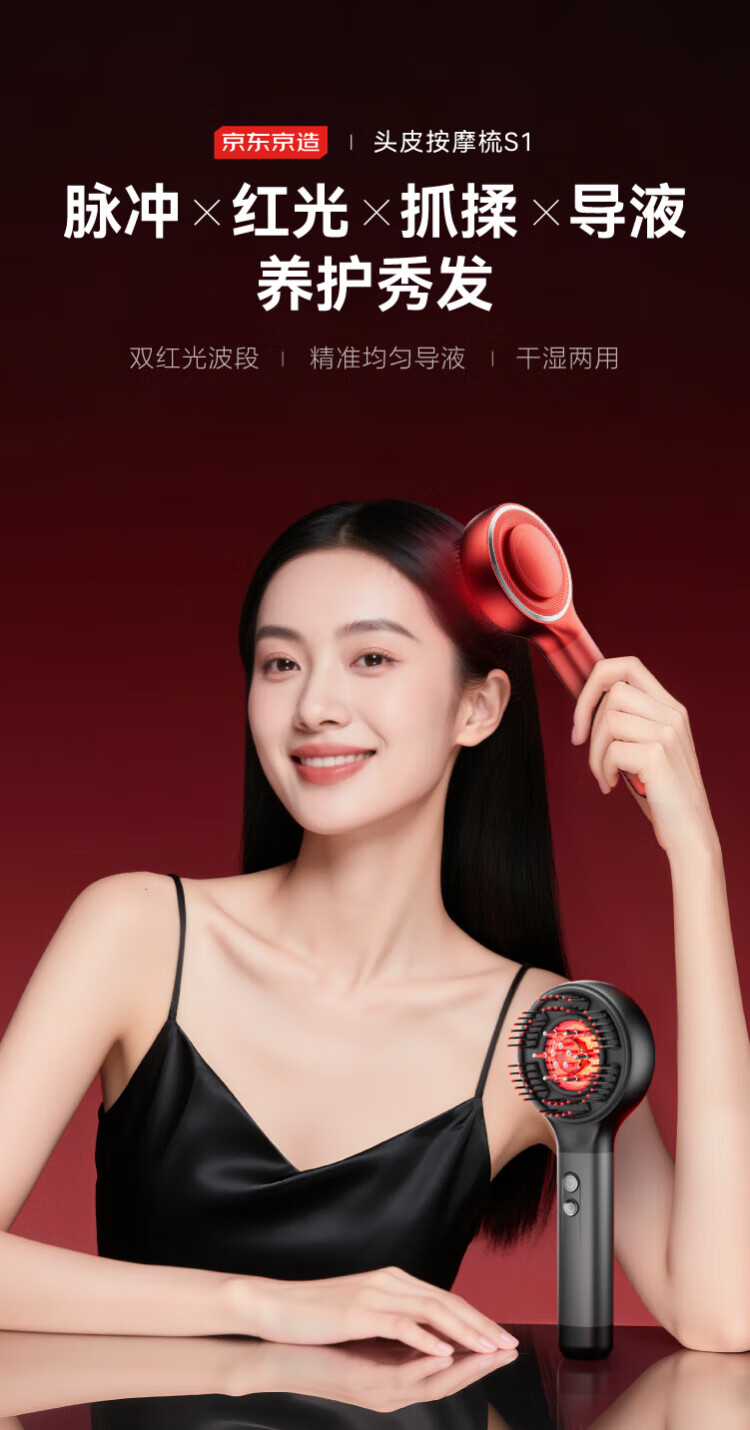 Jingdong Tokyo-made head massager S1 ruby red head massager scalp red light maintenance temperature induction fluid scalp massage comb meridian brush birthday gift for women New Year's gift for men