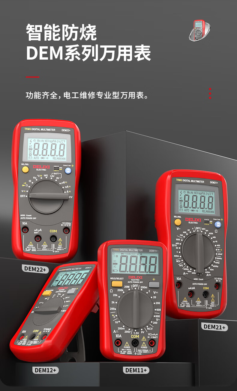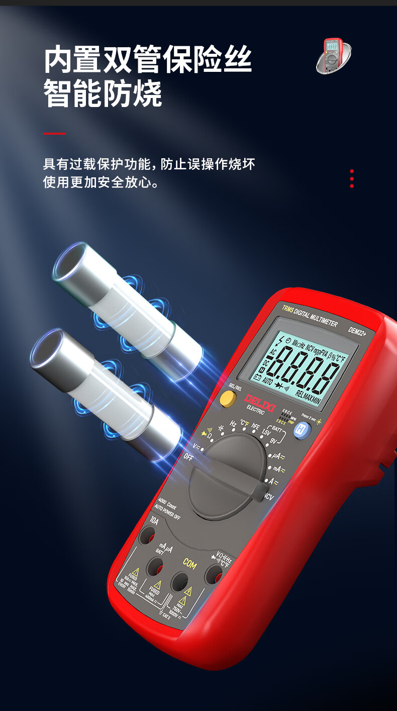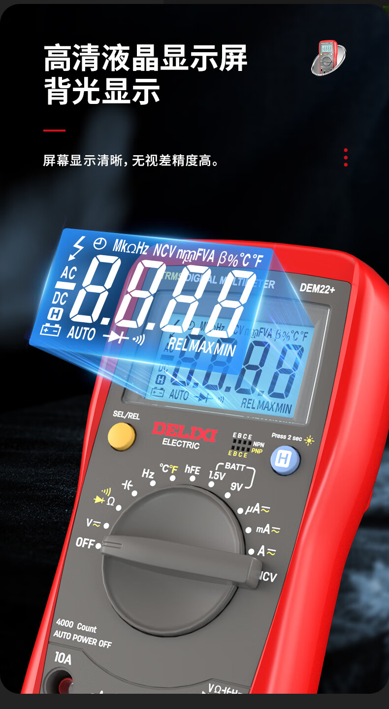 Delixi electrical multimeter high-precision digital electrician repair special multi-function digital display electrician meter automatic range DEM22+