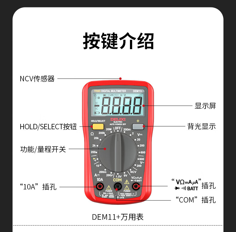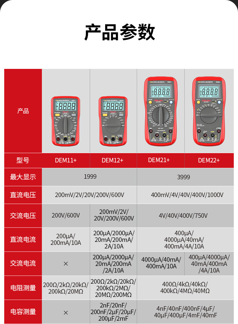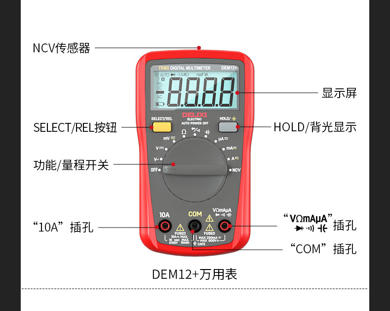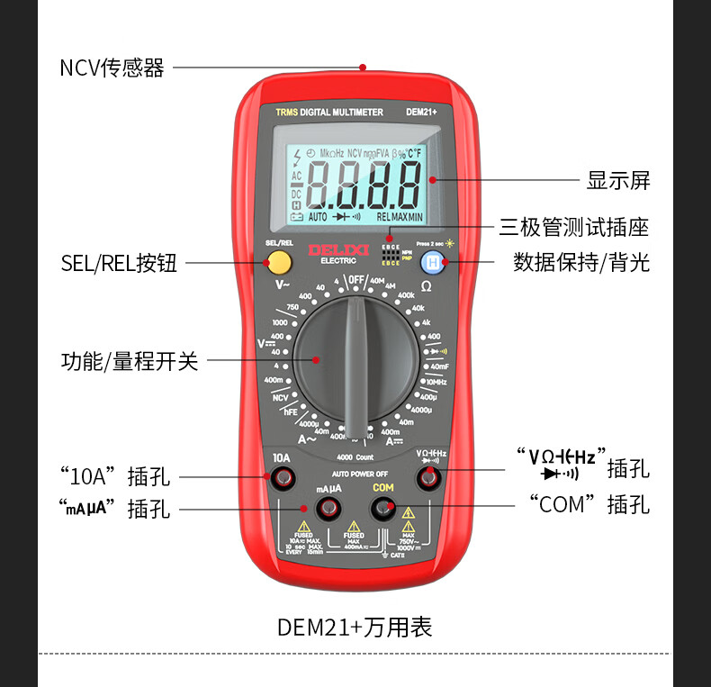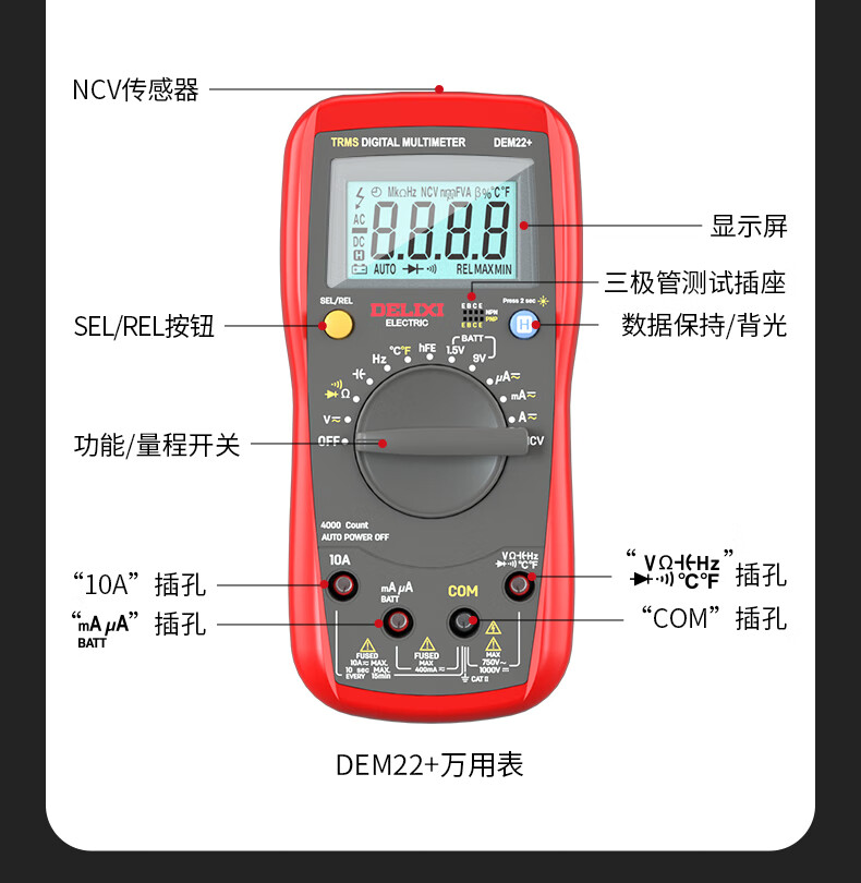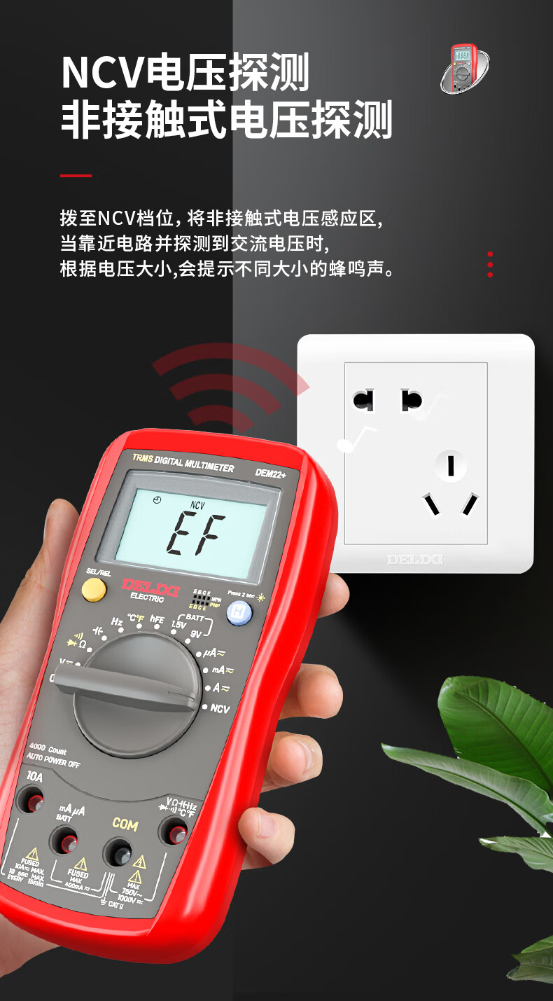 Delixi electrical multimeter high-precision digital electrician repair special multi-function digital display electrician meter automatic range DEM22+