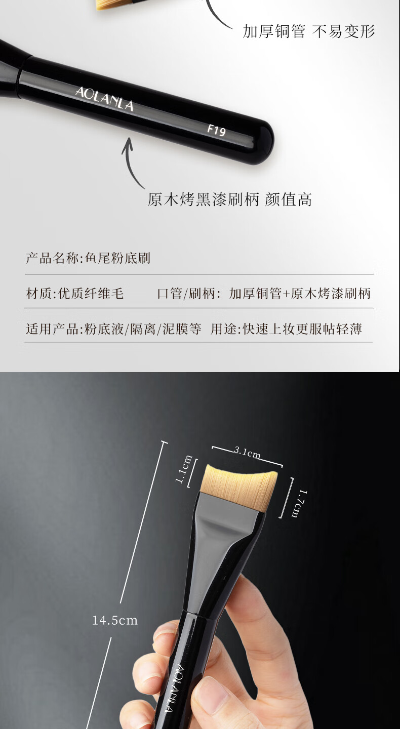 AOLANLA fishtail foundation brush ultra-thin one-word brush flat head liquid foundation brush does not eat powder traceless makeup brush novice makeup brush