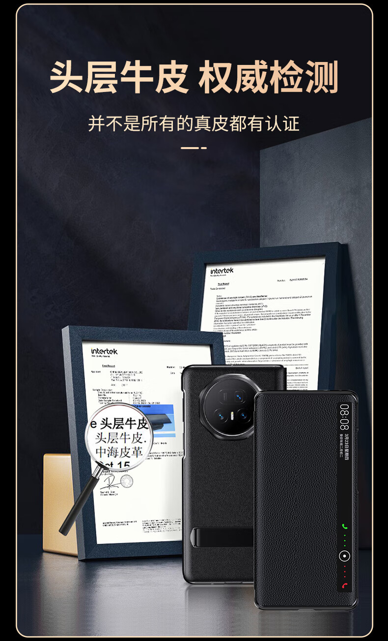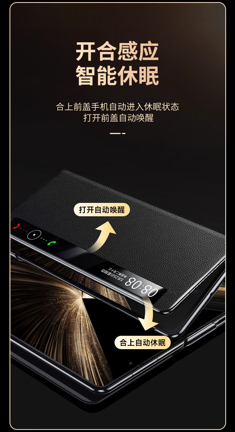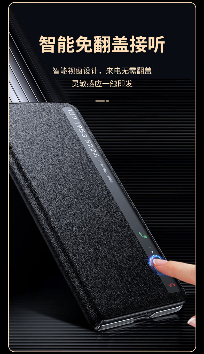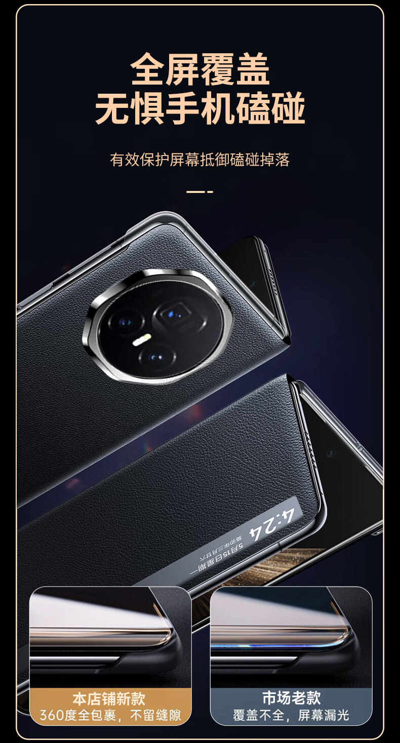 CoolFeng first-layer cowhide suitable for Honor magicV5 mobile phone case with stand HONOR folding screen protective cover genuine leather flip smart window lens all-inclusive anti-fall black