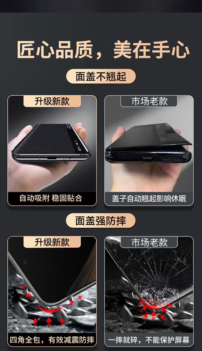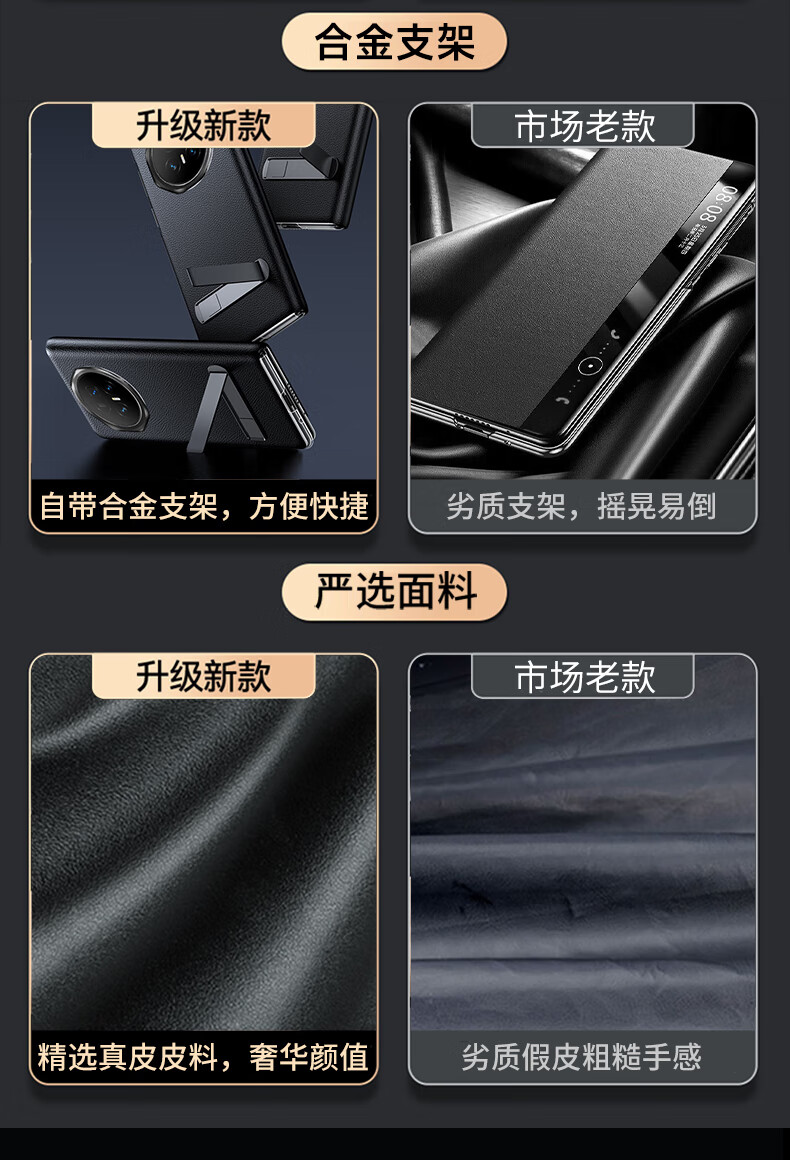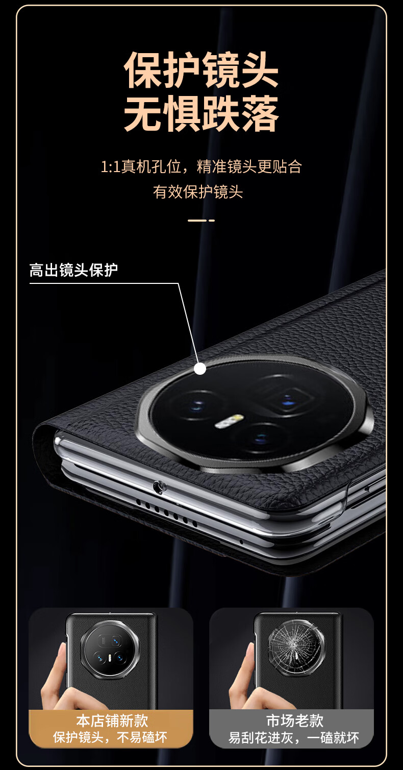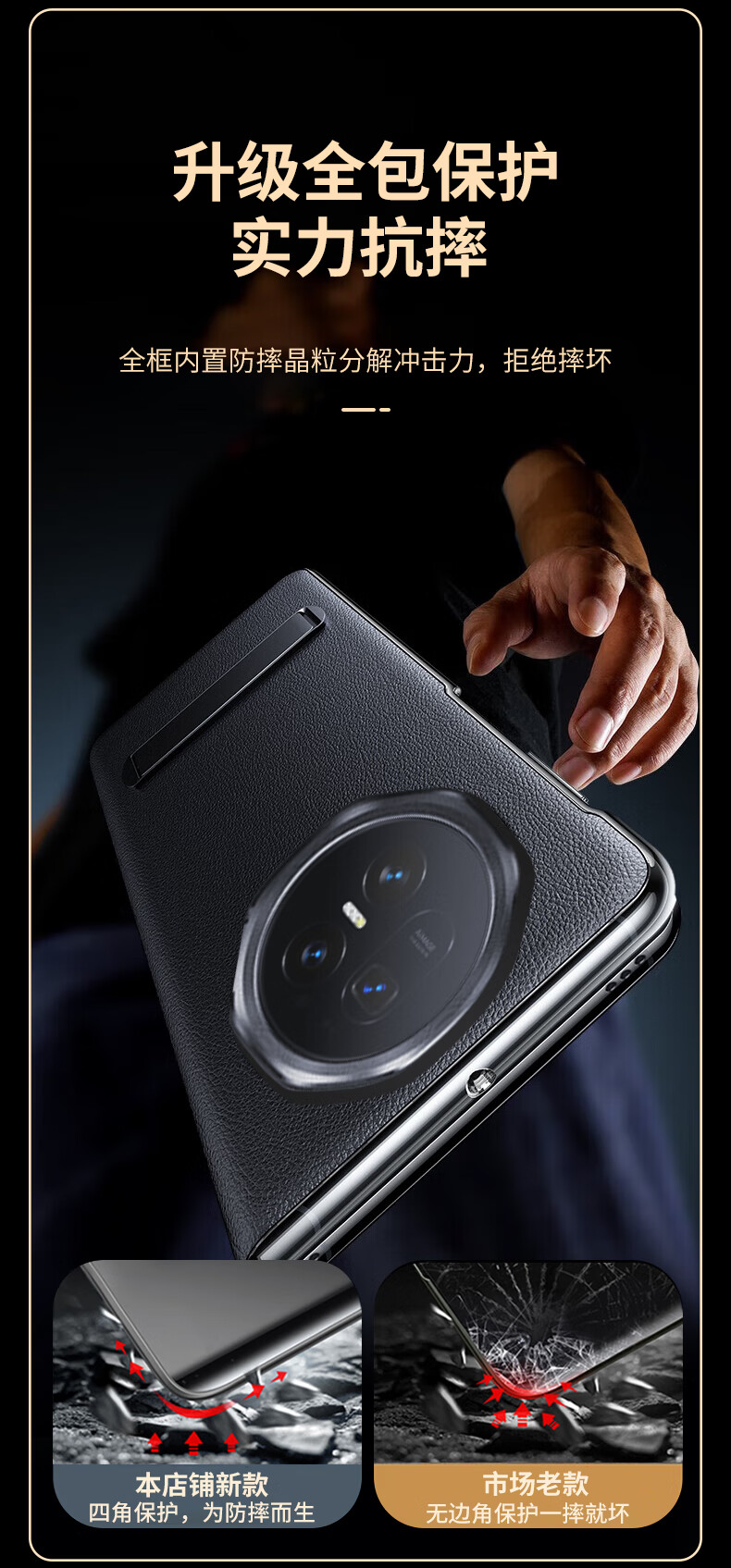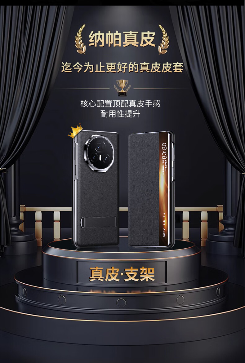 CoolFeng first-layer cowhide suitable for Honor magicV5 mobile phone case with stand HONOR folding screen protective cover genuine leather flip smart window lens all-inclusive anti-fall black