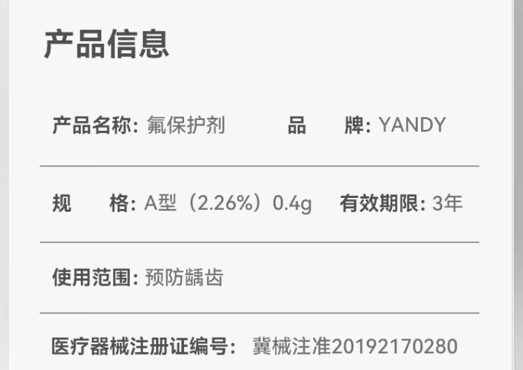 YANDY adult tooth fluoride agent fluoride protective agent 0.4g*2 bags to prevent dental caries, orthodontics, braces and correction, Jingdong self-operated