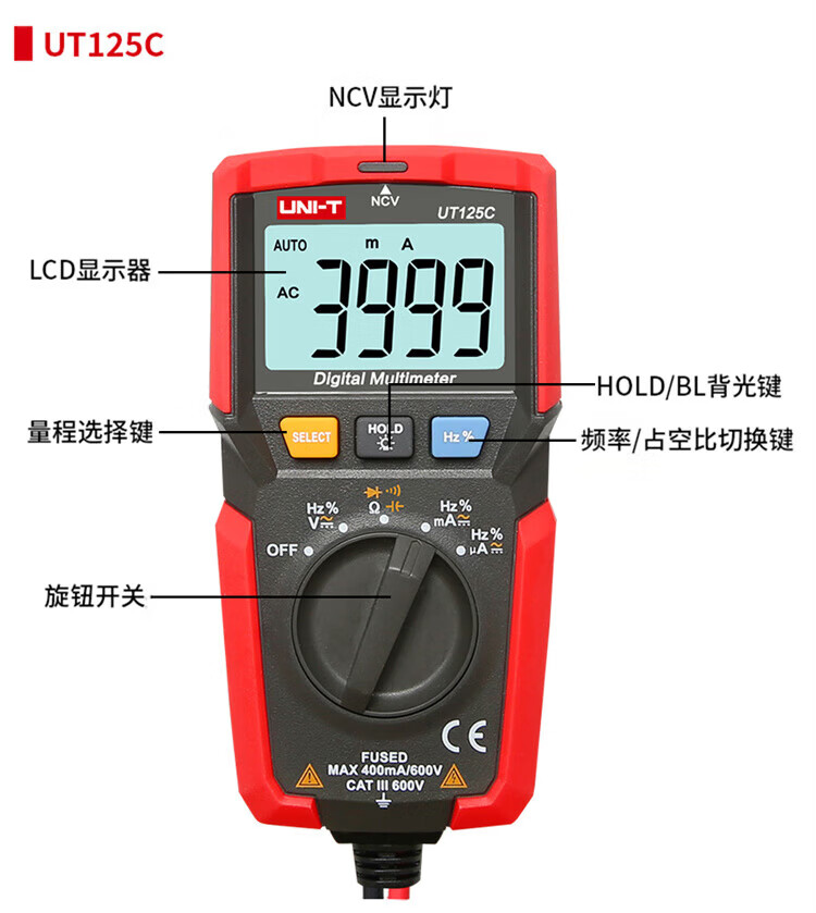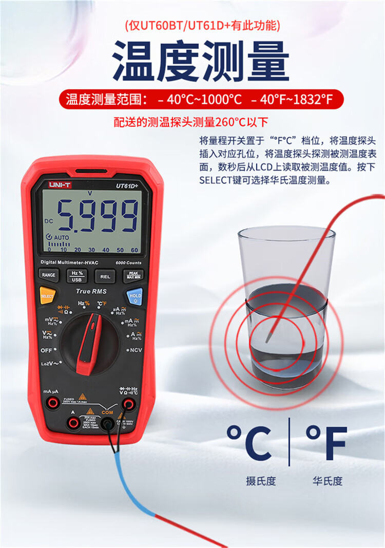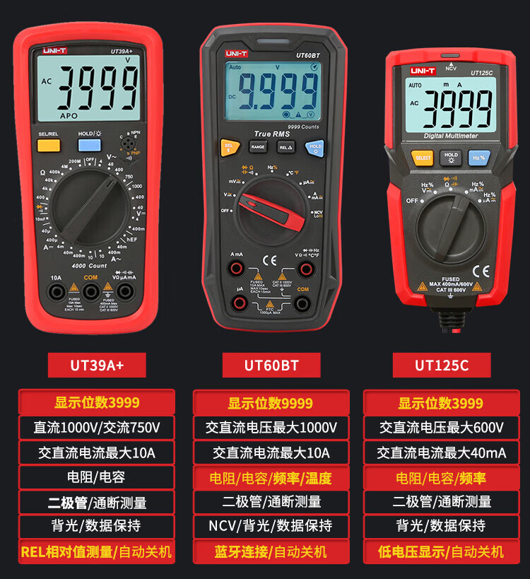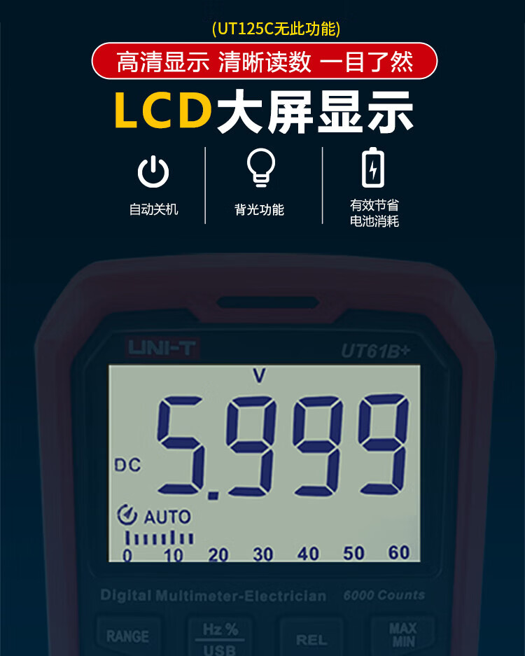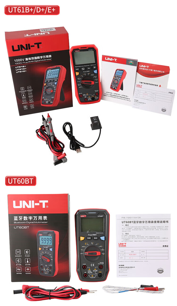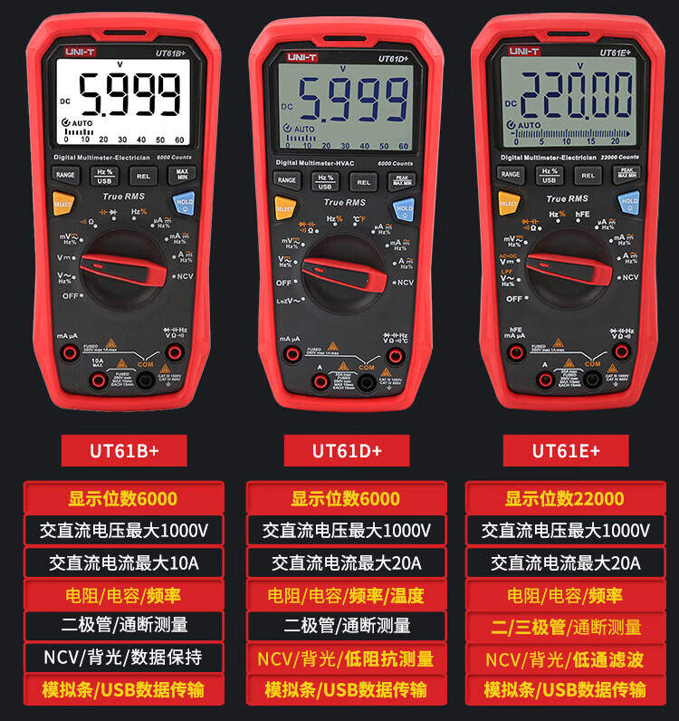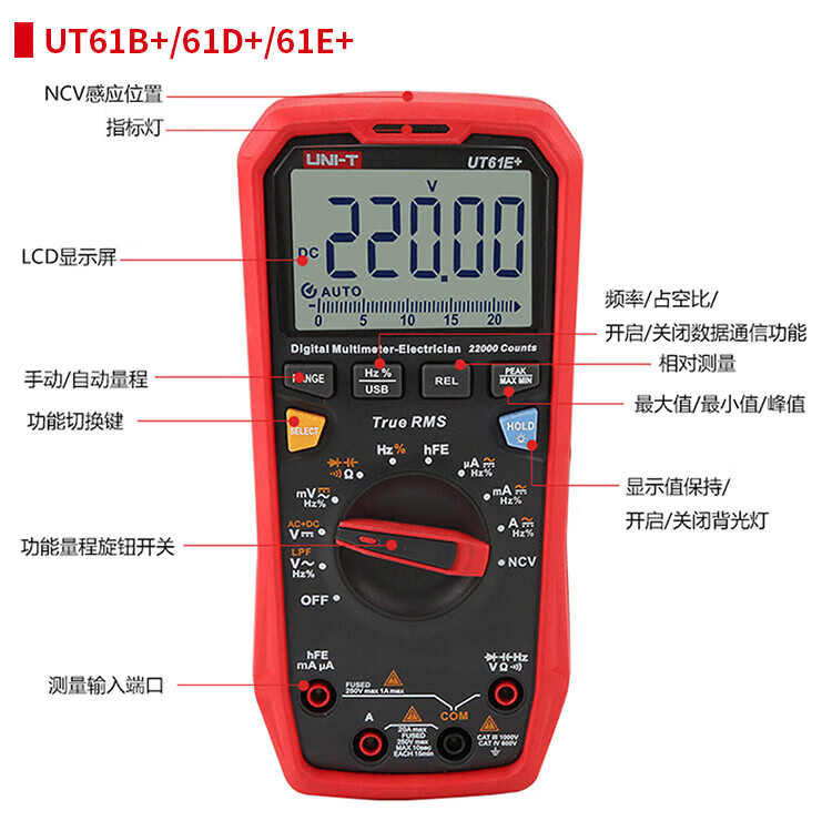 UNI-T digital multimeter, intelligent anti-burn multimeter, high-precision household voltmeter, electrician-specific ammeter, UT61B+ large capacitance/NCV measurement