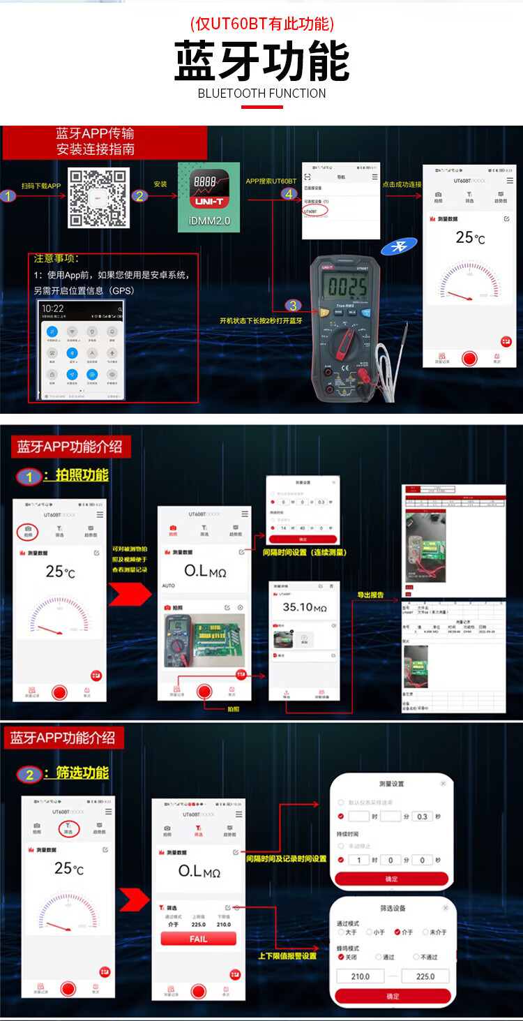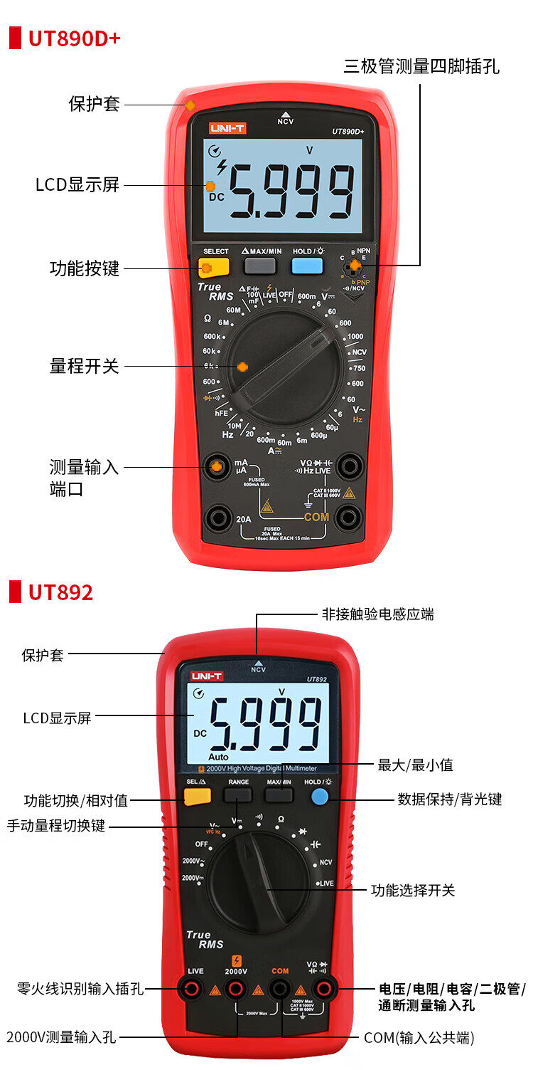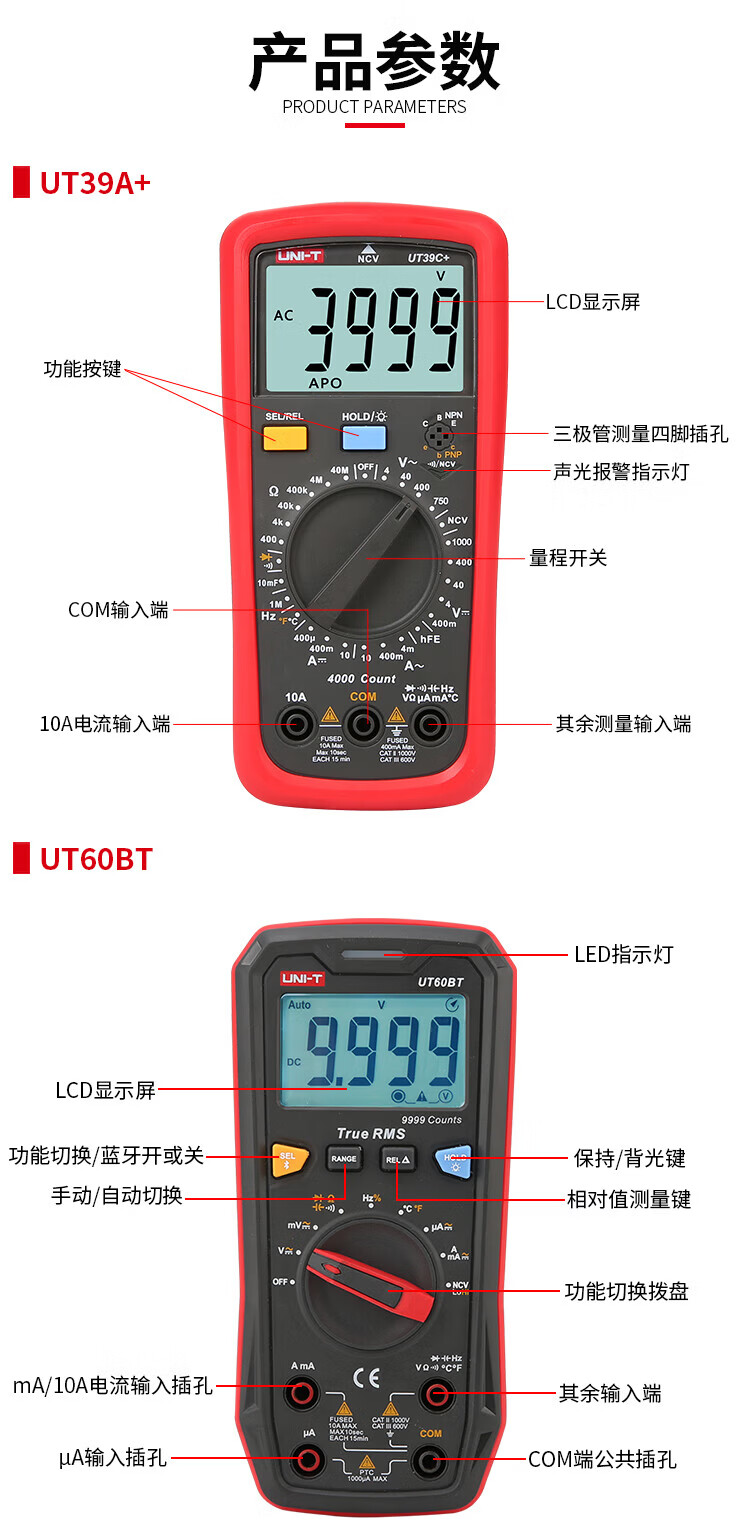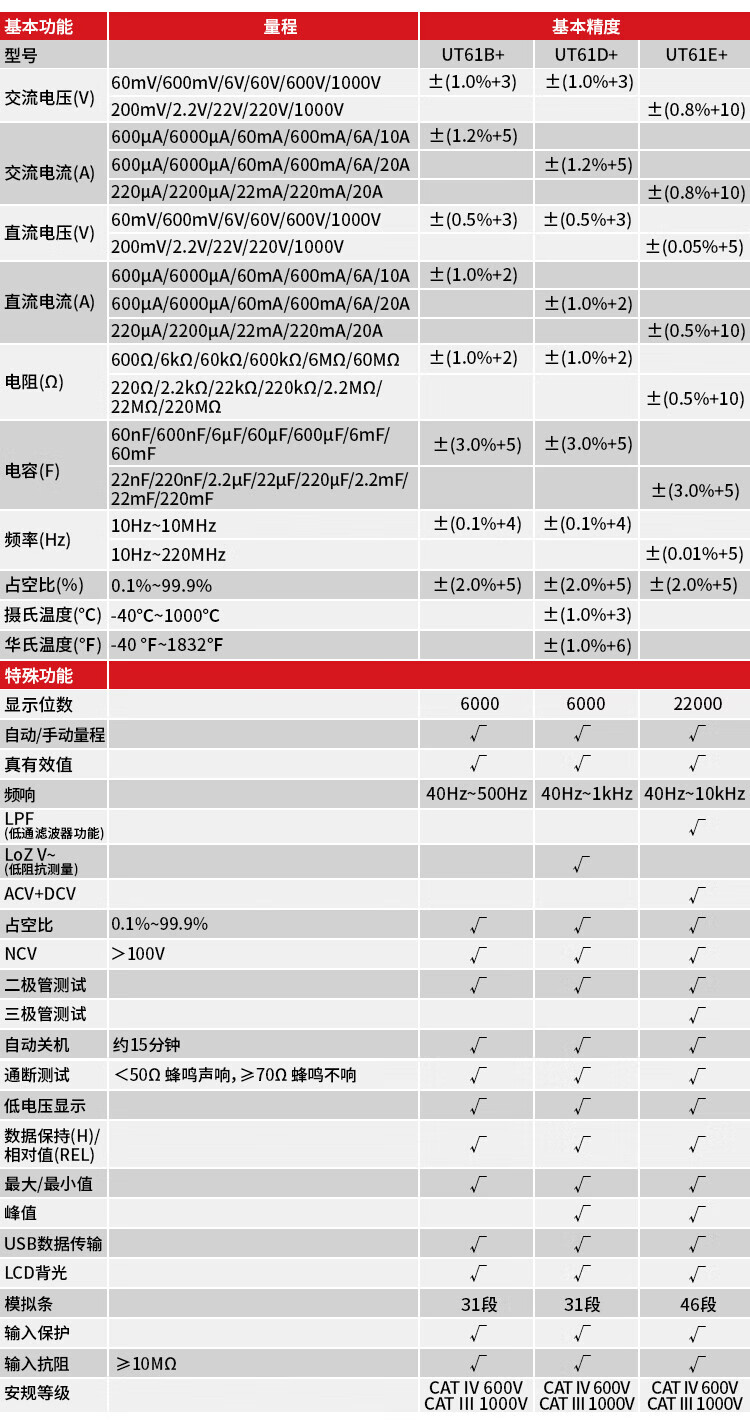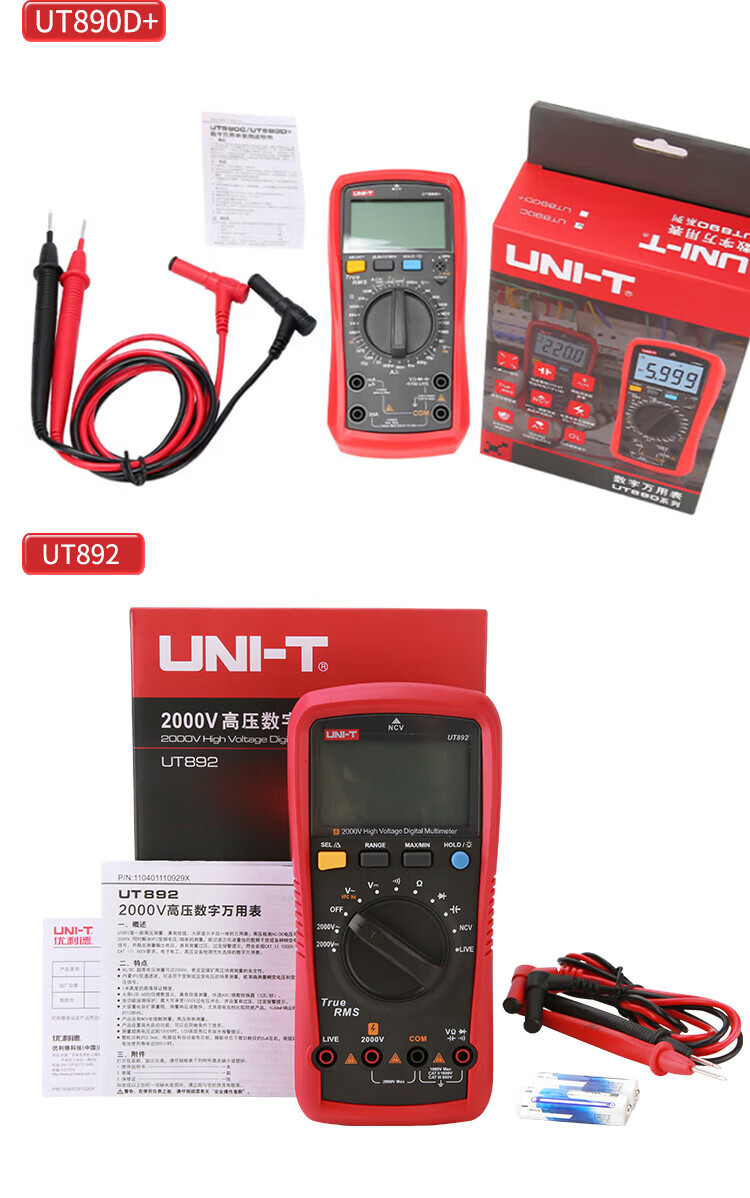 UNI-T digital multimeter, intelligent anti-burn multimeter, high-precision household voltmeter, electrician-specific ammeter, UT61B+ large capacitance/NCV measurement