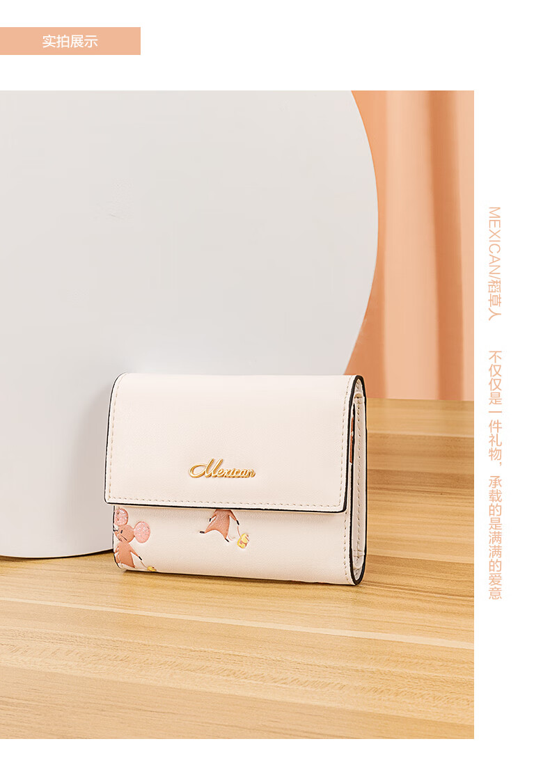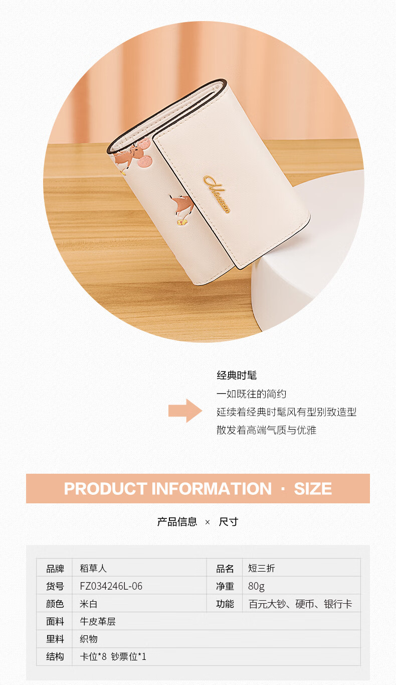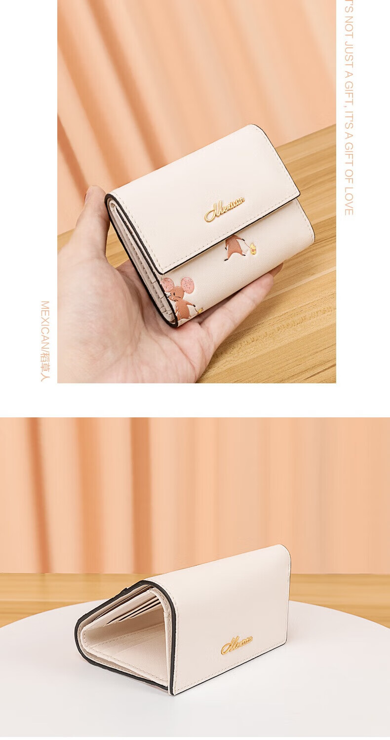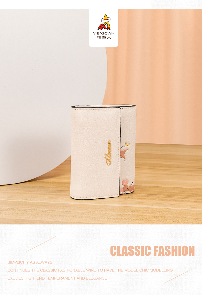 Scarecrow Cartoon Wallet Short Three-fold Women's Cowhide Wallet Multiple Card Slots Cute Student Folding Birthday Gift for Girlfriend 34246-6Z Beige