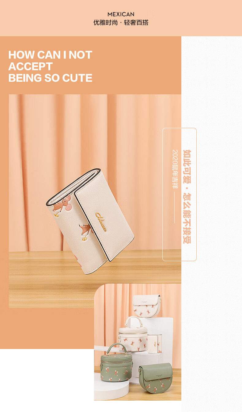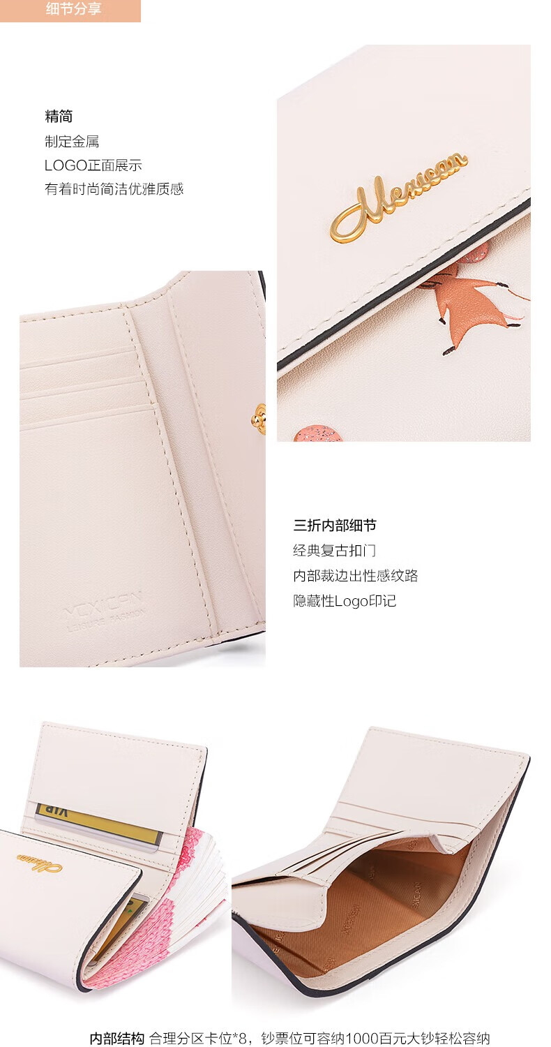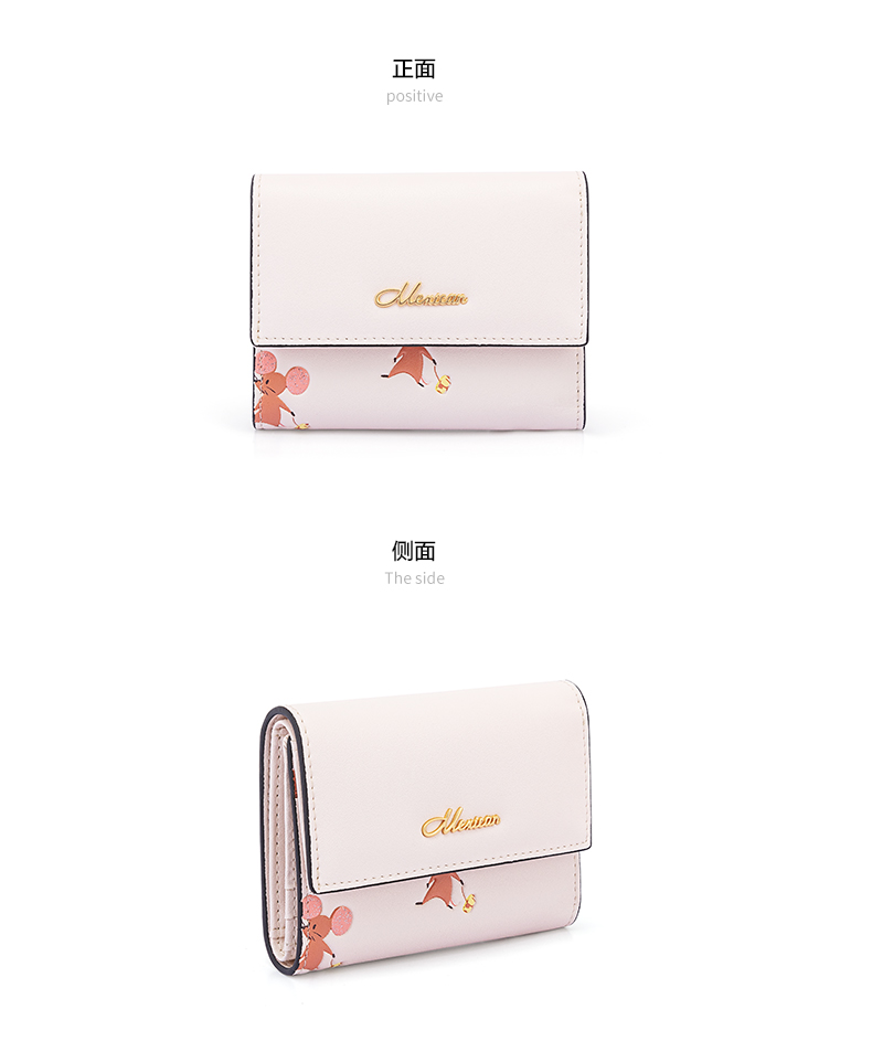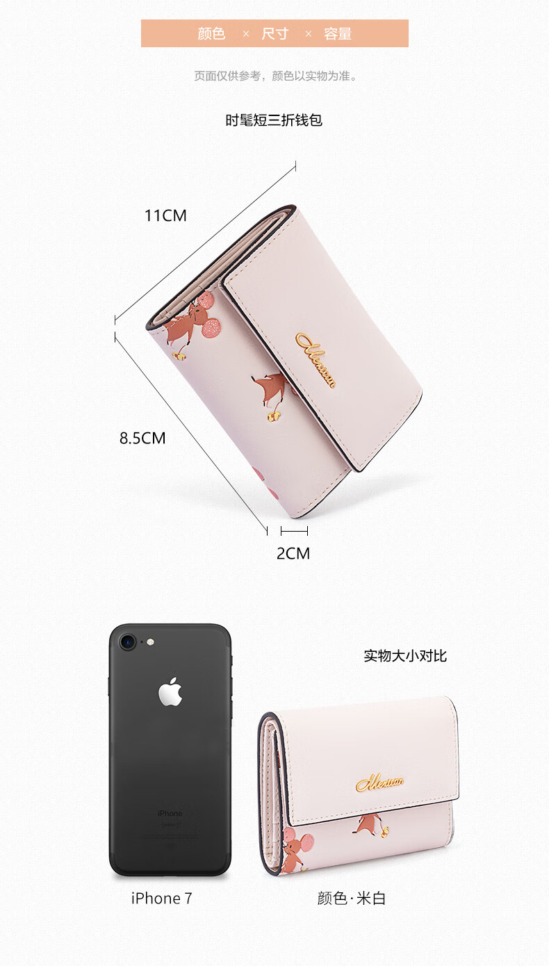 Scarecrow Cartoon Wallet Short Three-fold Women's Cowhide Wallet Multiple Card Slots Cute Student Folding Birthday Gift for Girlfriend 34246-6Z Beige