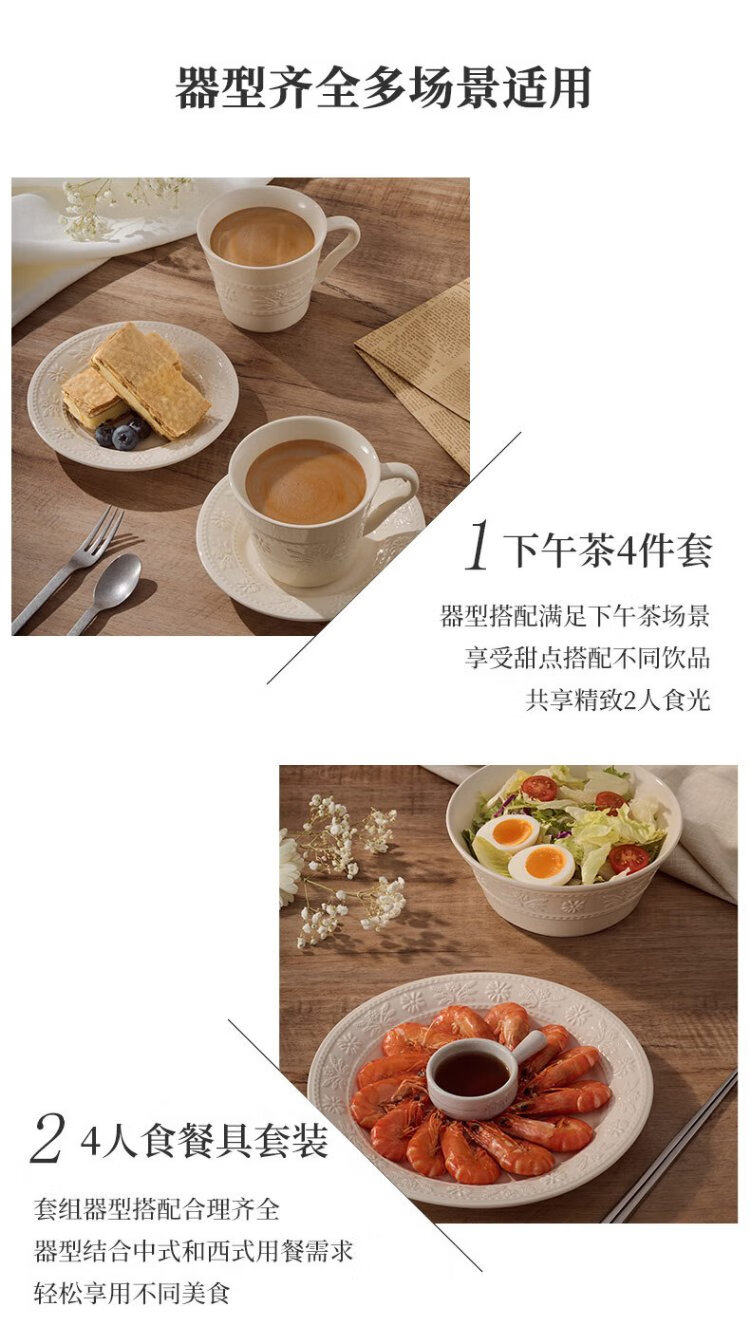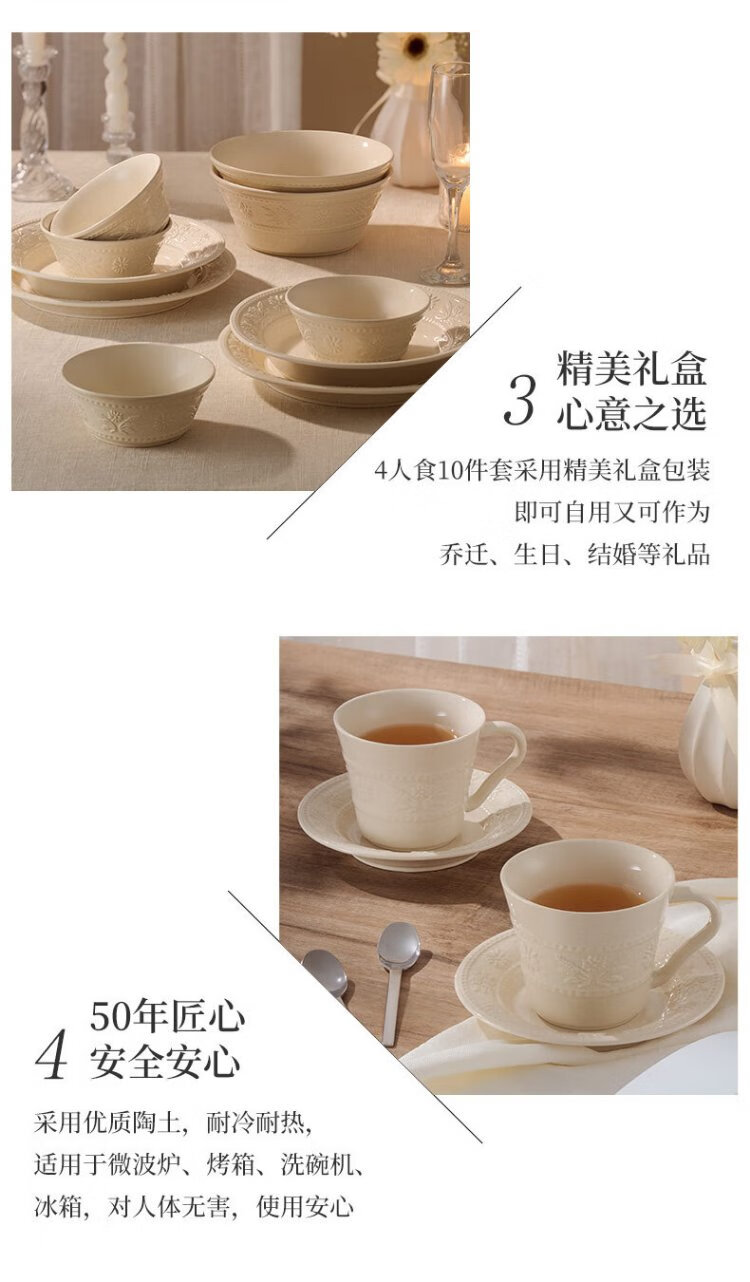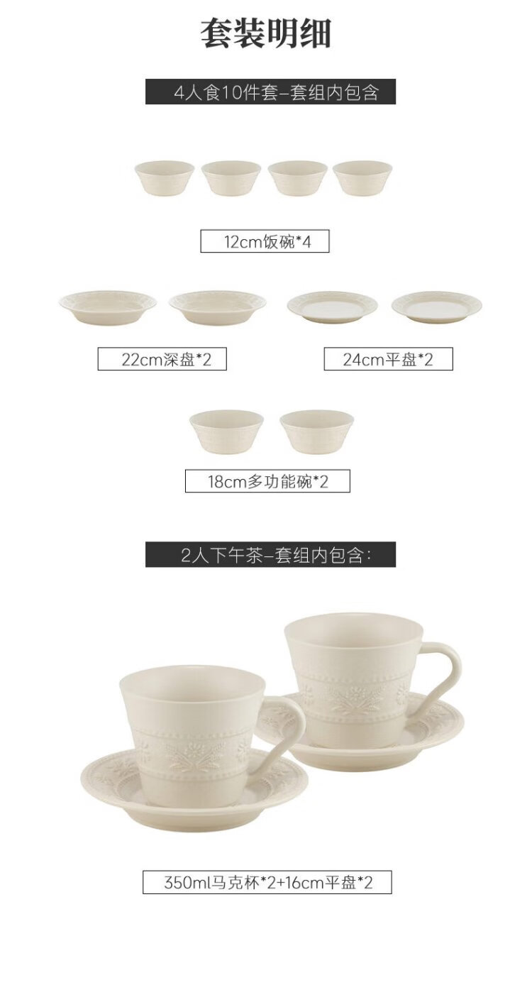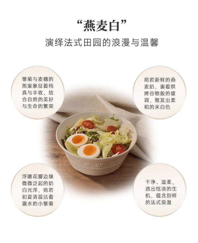 Staub ceramic household rice bowl, dish plate, multifunctional tableware, daisy oatmeal white tableware 10-piece set 1034390