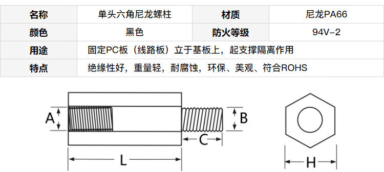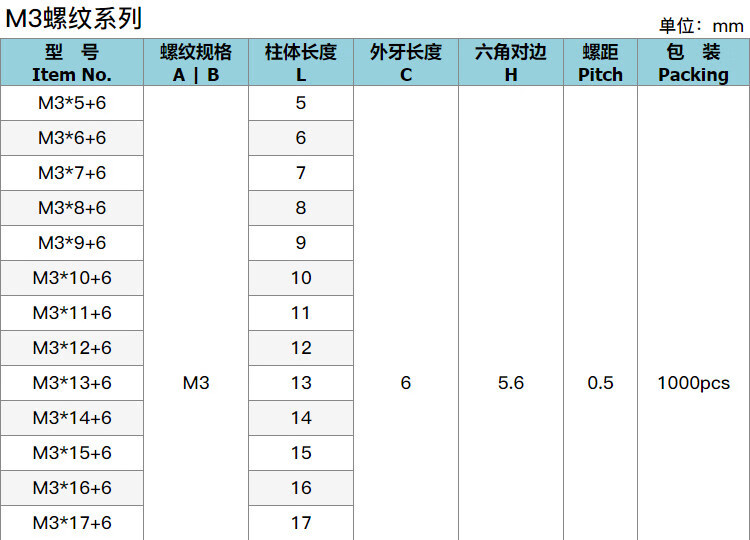 Axler hexagonal nylon column single-head isolation column plastic stud insulating support column M3*9+6 (100 pieces)