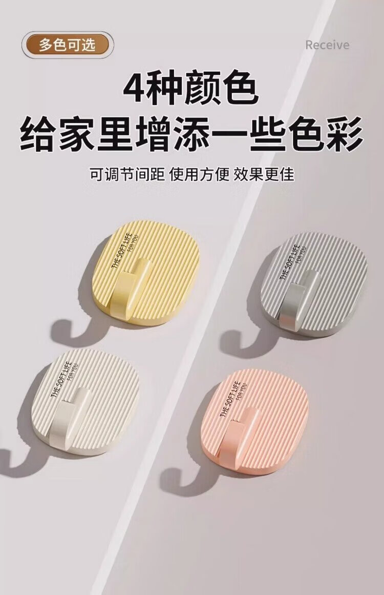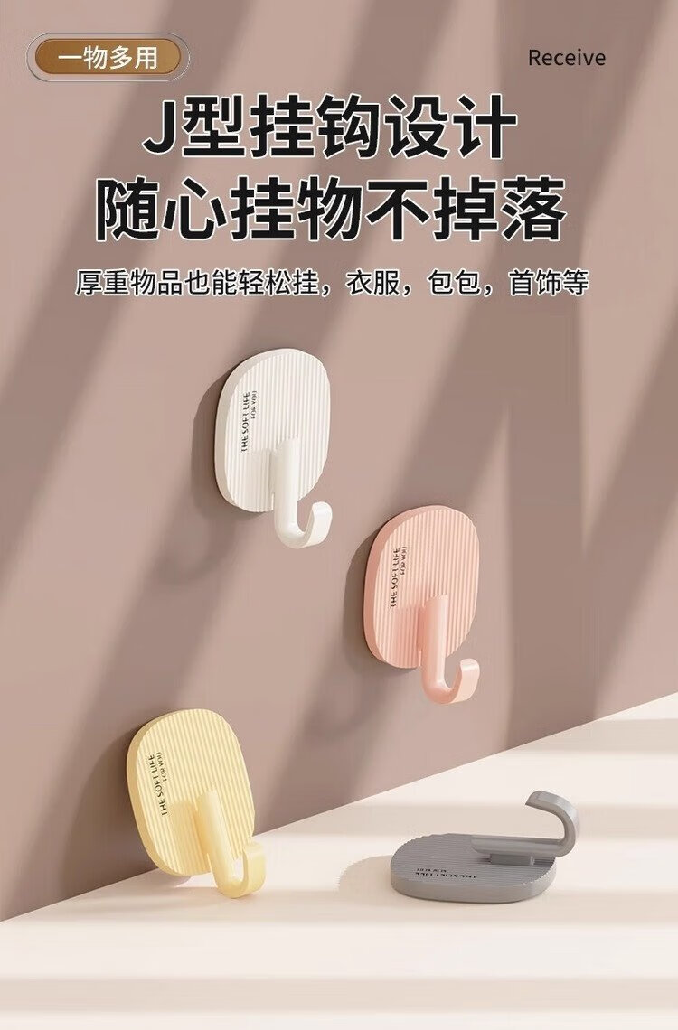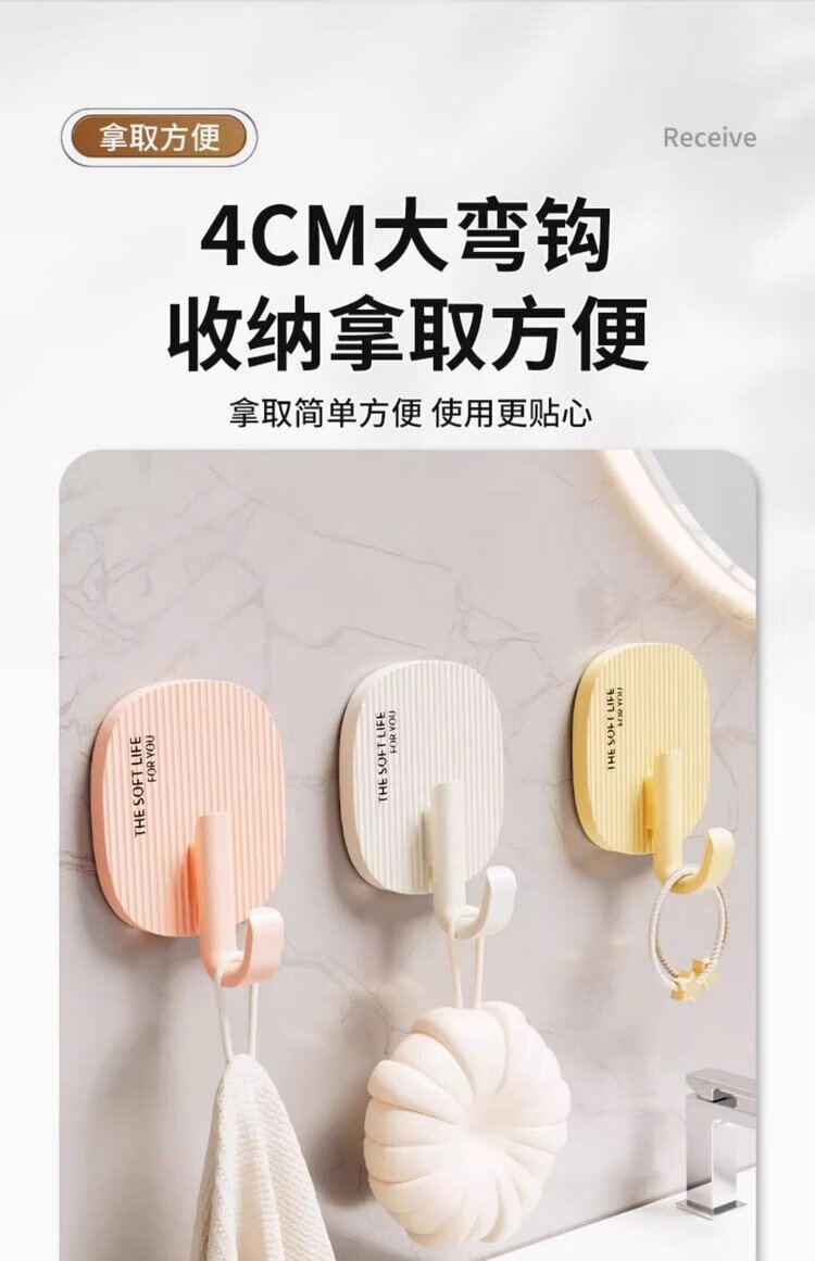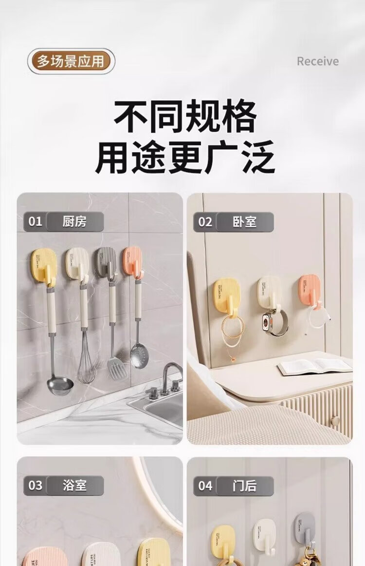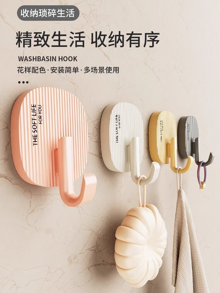 FAJIENUO cream-style hooks strong adhesive punch-free load-bearing dormitory bathroom toilet kitchen sticky hooks mixed colors 8 pack