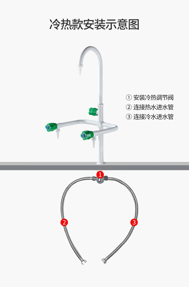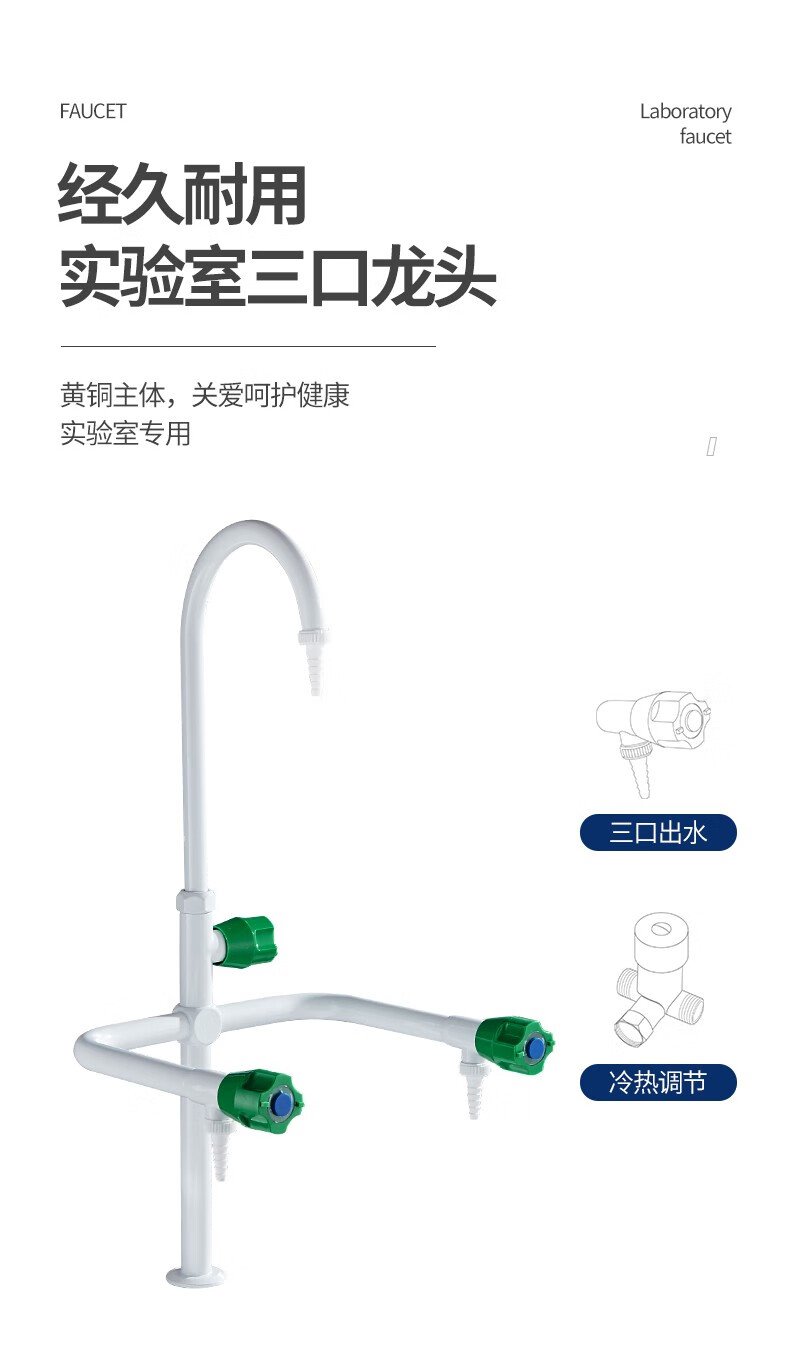 CUNGSA CUNGSA laboratory hot and cold faucet triple three-port laboratory water nozzle high-education copper spray plastic water nozzle 3312 three-head/hot and cold style