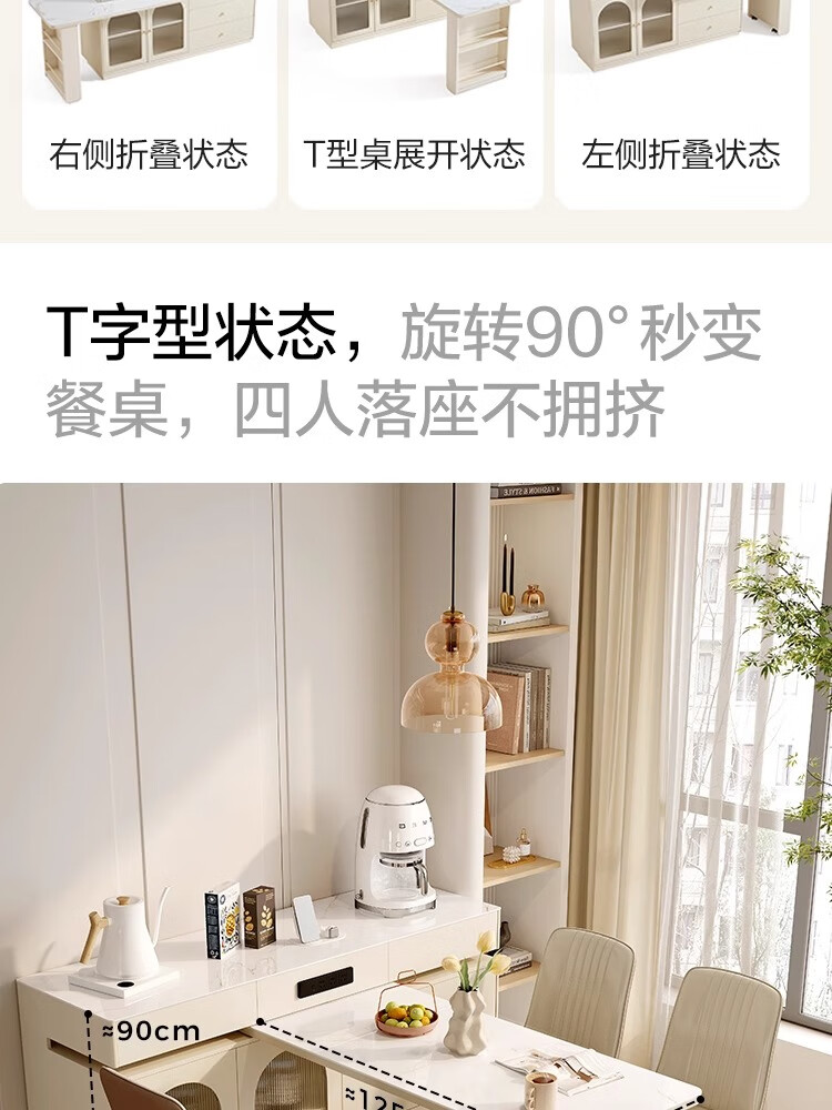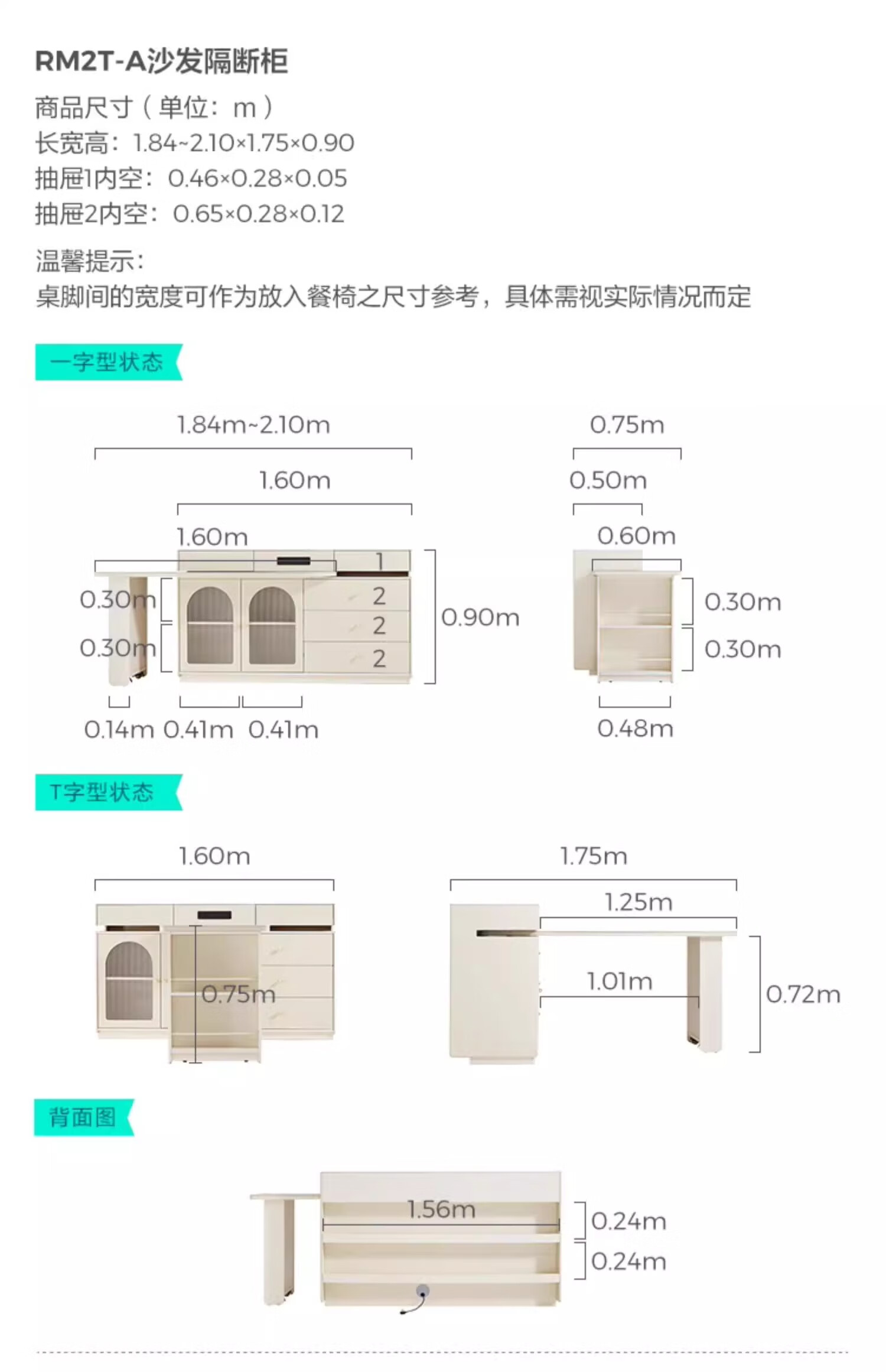 Lin's Home retractable bar slate sideboard wall-mounted folding island dining table storage cabinet RM2T