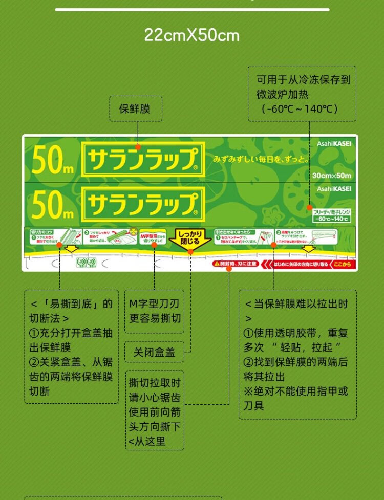Asahi Baoxian imported from Japan PVDC thickened cling film with high temperature resistance and cutter can be microwave heated 3 pieces