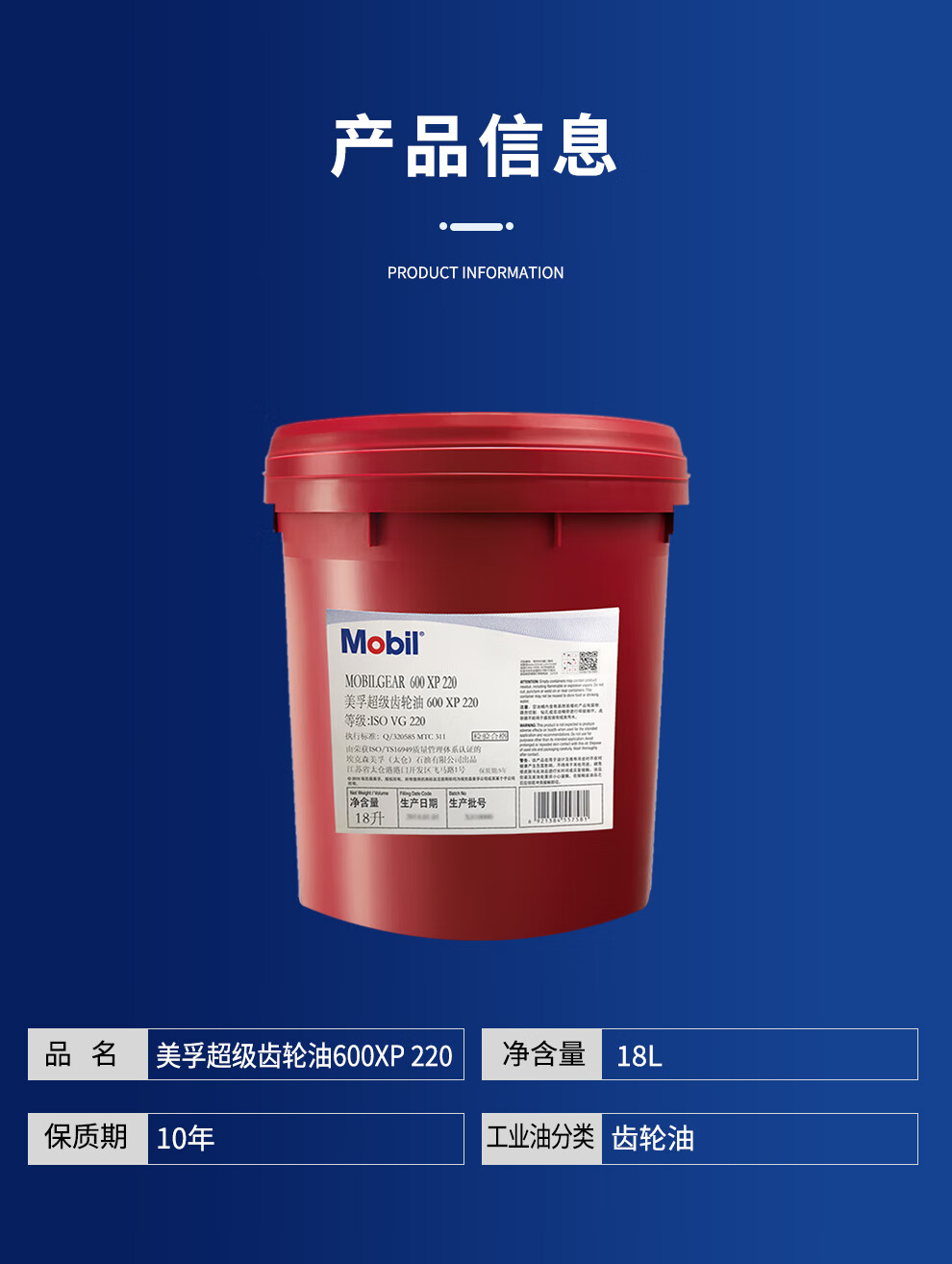 Mobil 600XP No. 220 super gear oil 18L/barrel/