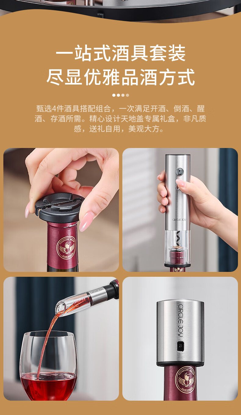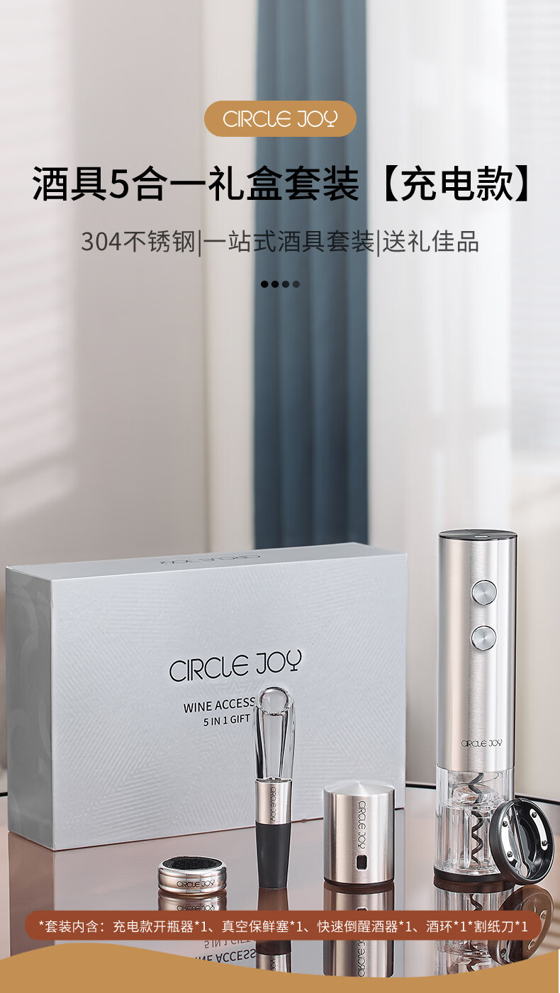 Circle Joy Electric Wine Bottle Opener Stainless Steel Rechargeable Automatic Wine Opener Household Wine Opener 5-in-1 Set
