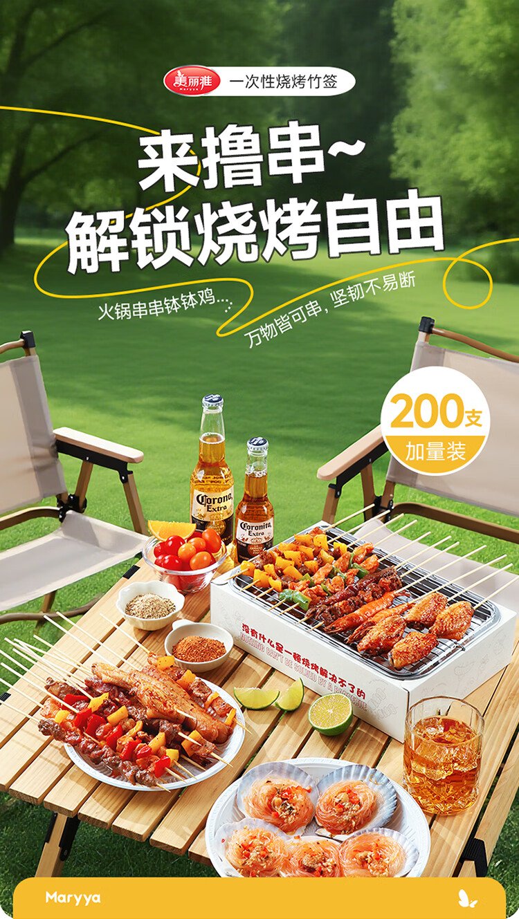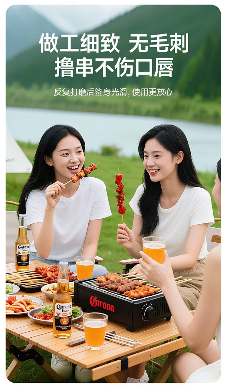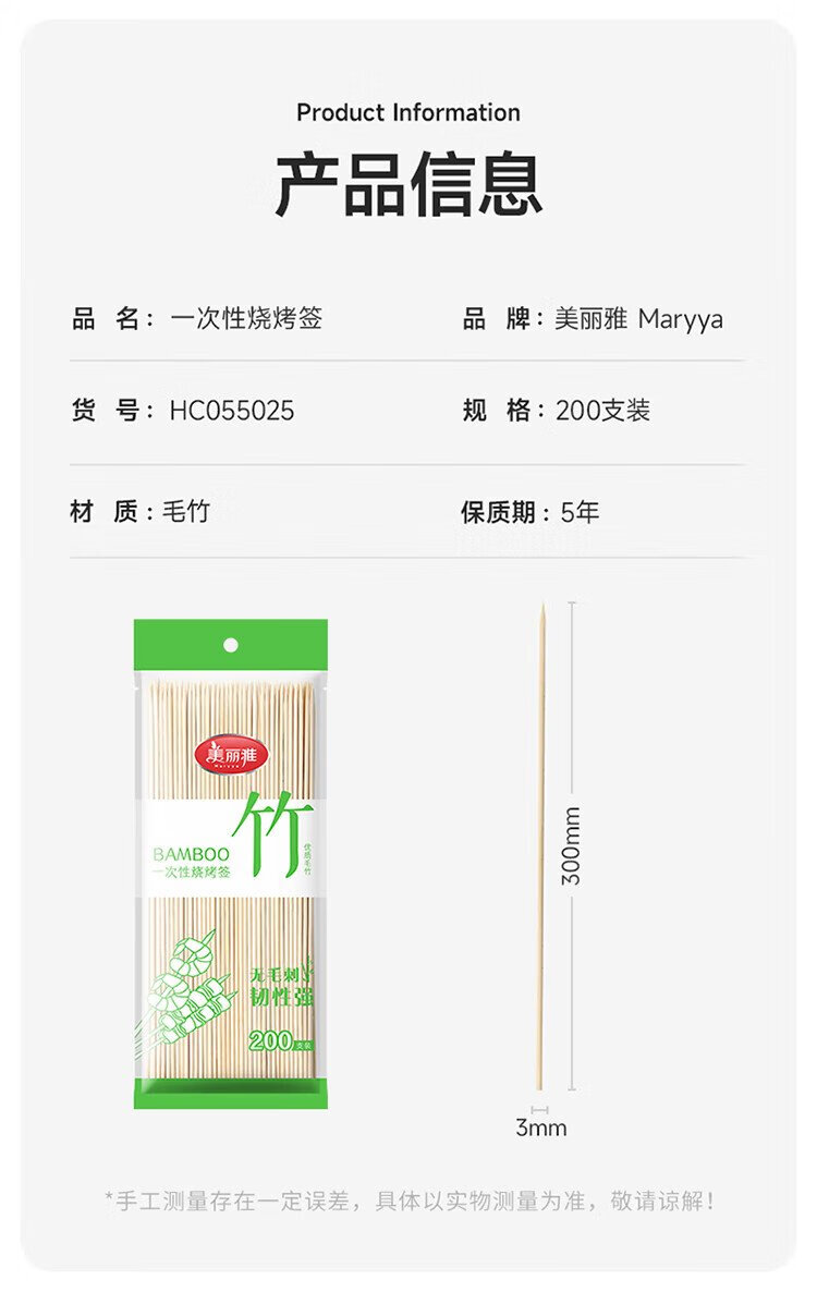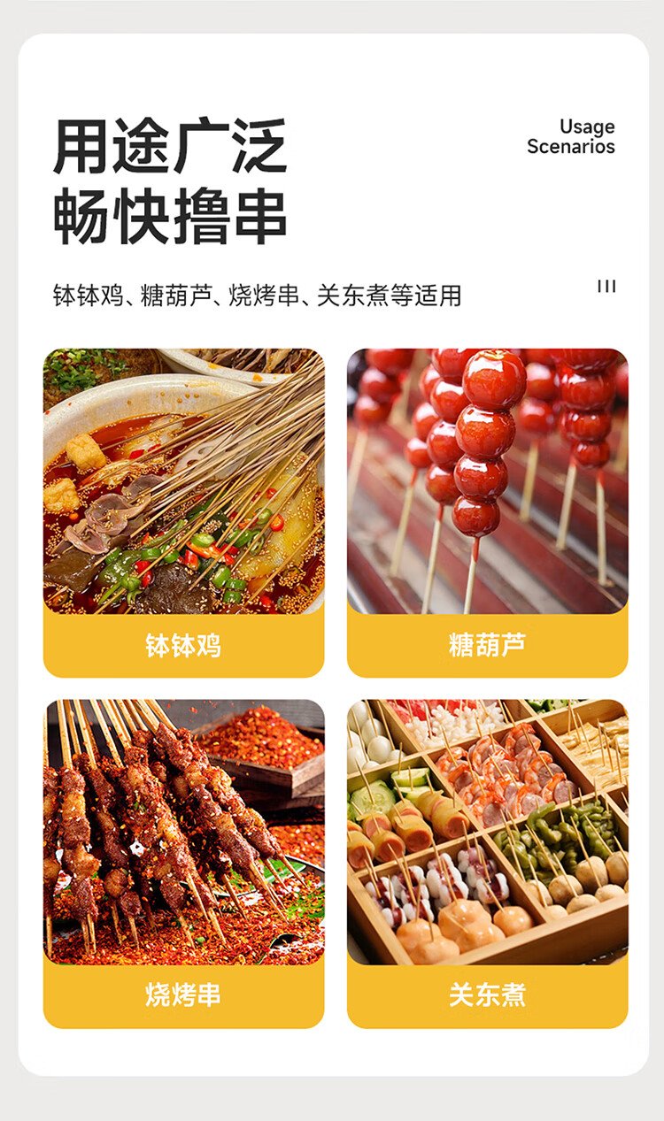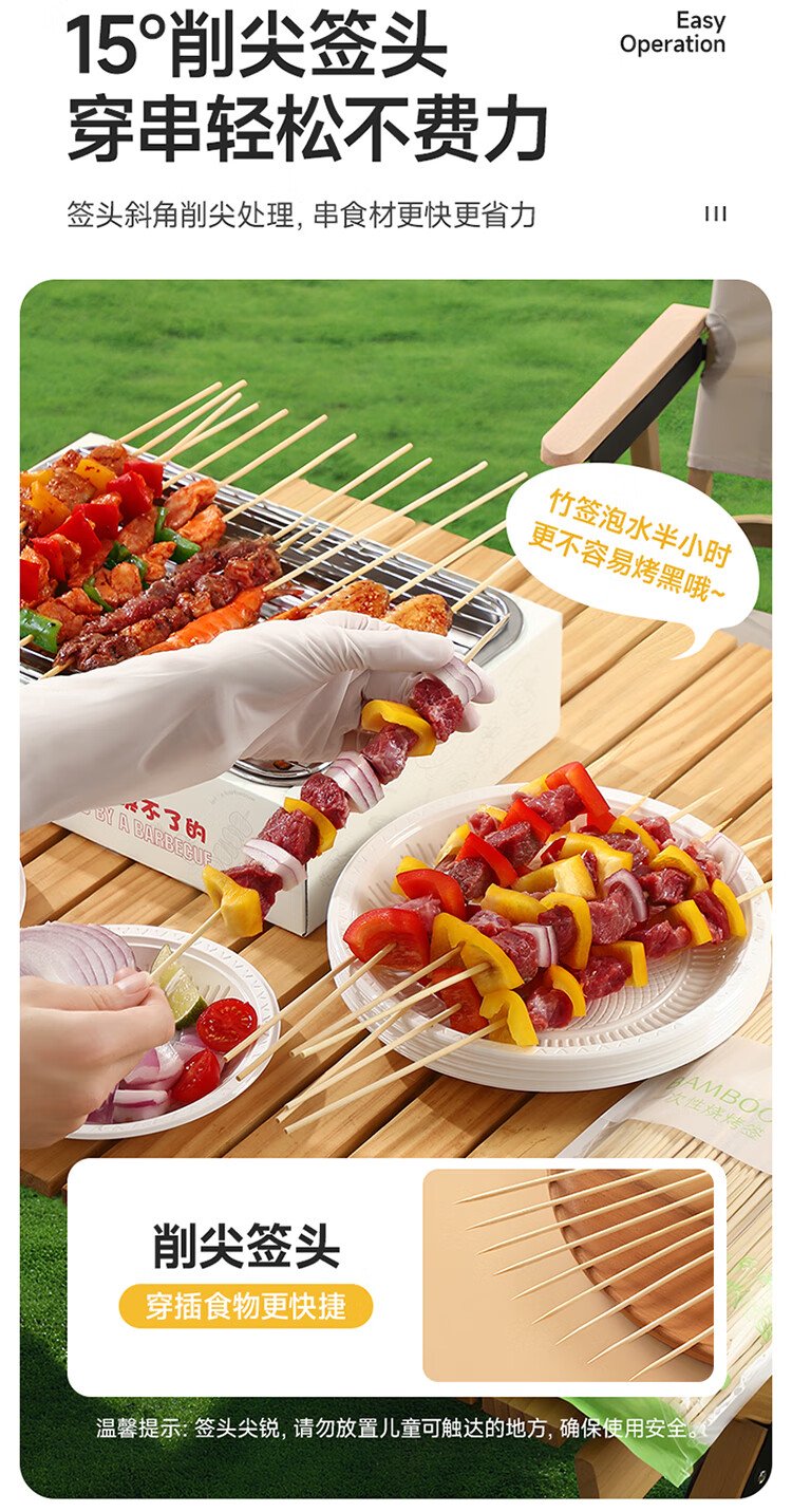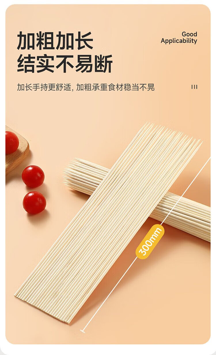 Meliya BBQ skewers 200 pieces, one-time extension 30cm barbecue skewers Bobo chicken and mutton skewers candied haws and bamboo skewers