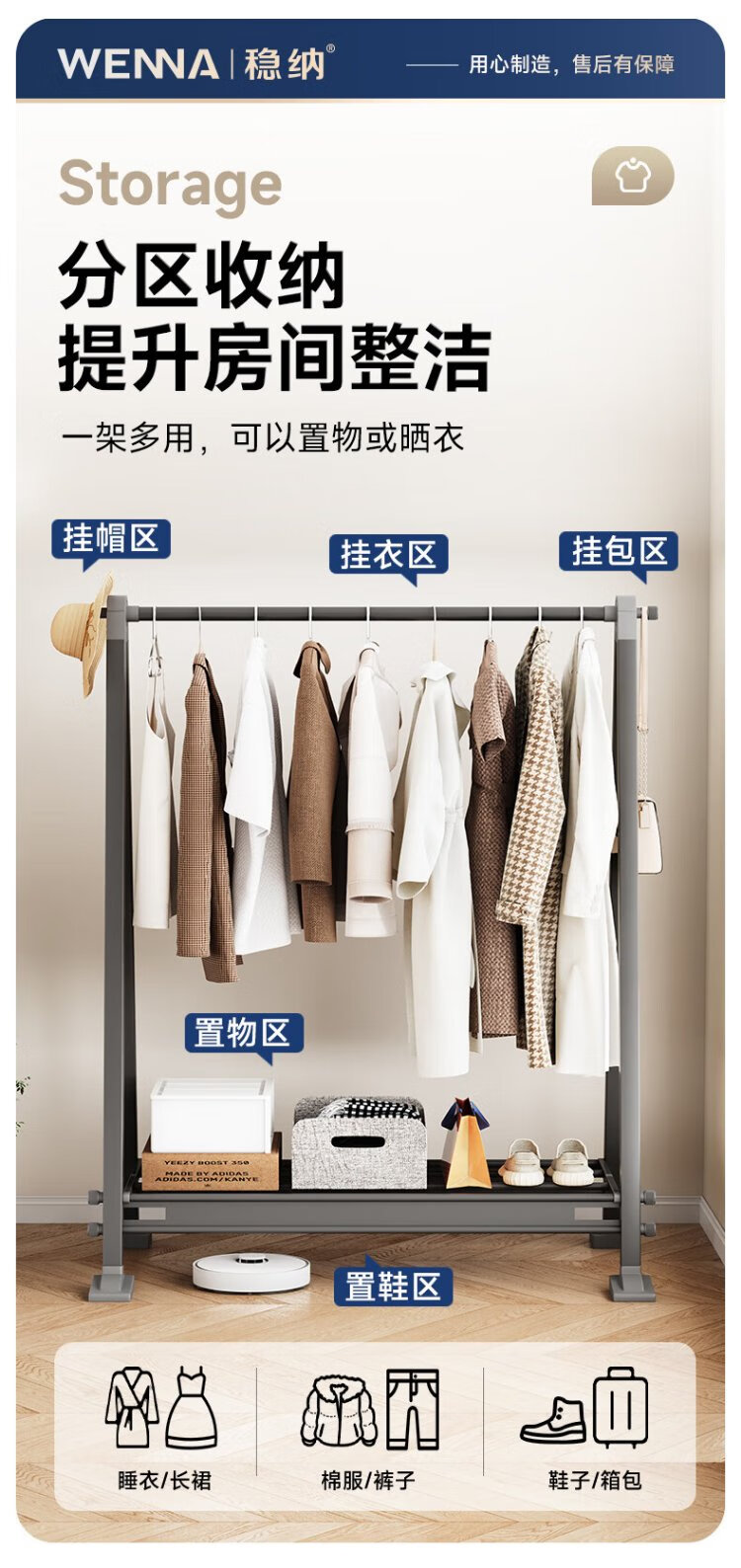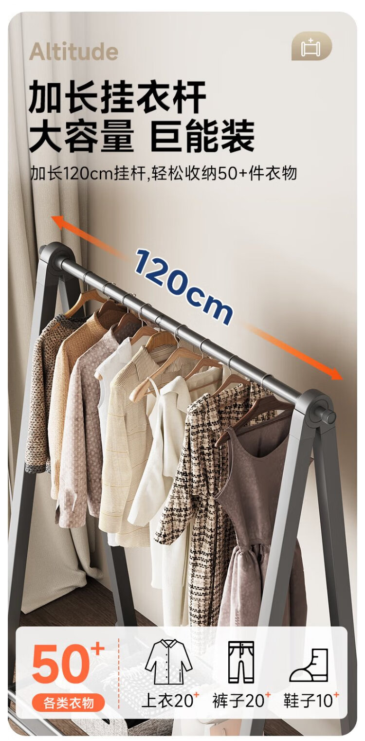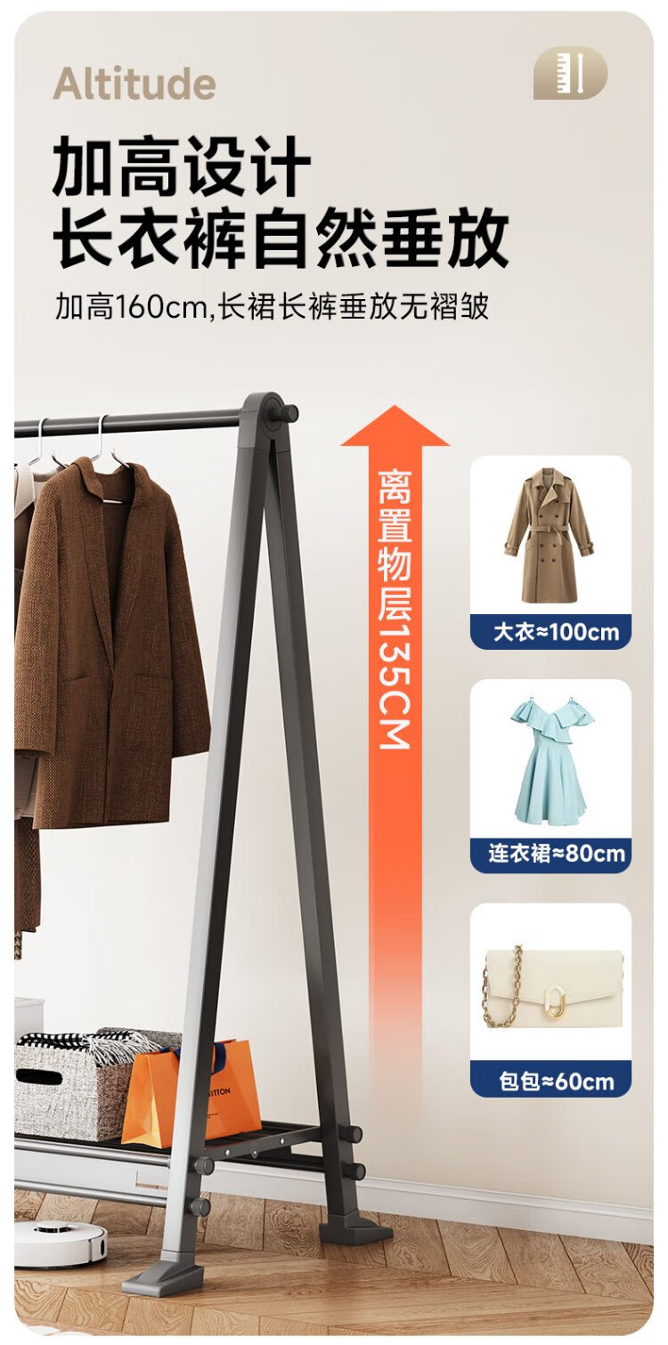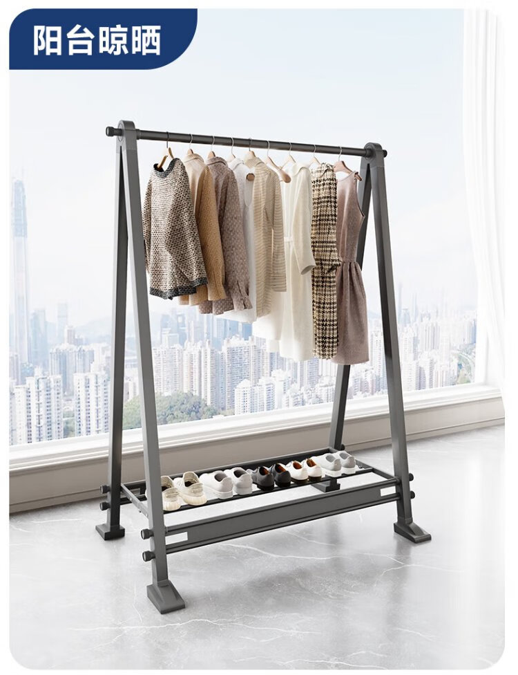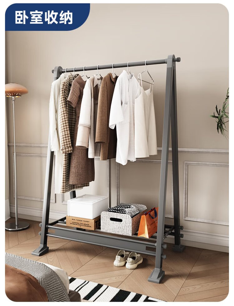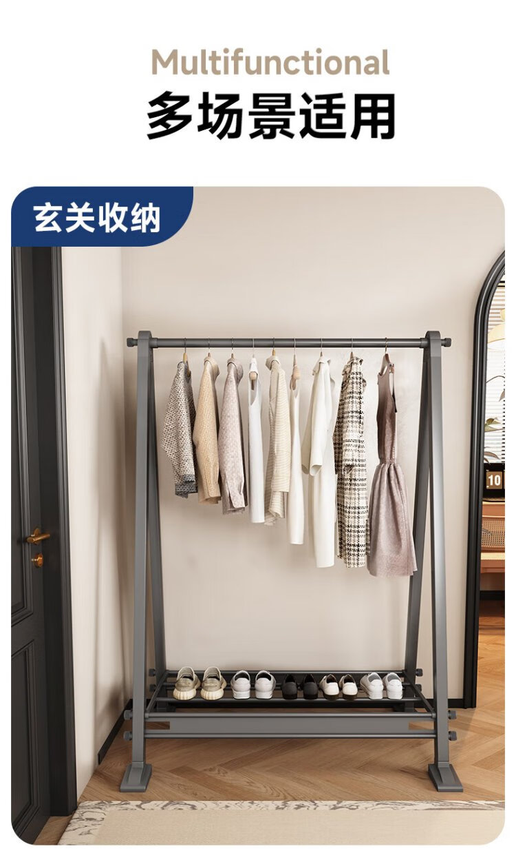 Stable clothes rack floor-standing aluminum alloy coat rack foldable storage rack bedroom clothes hanger simple YA6310G