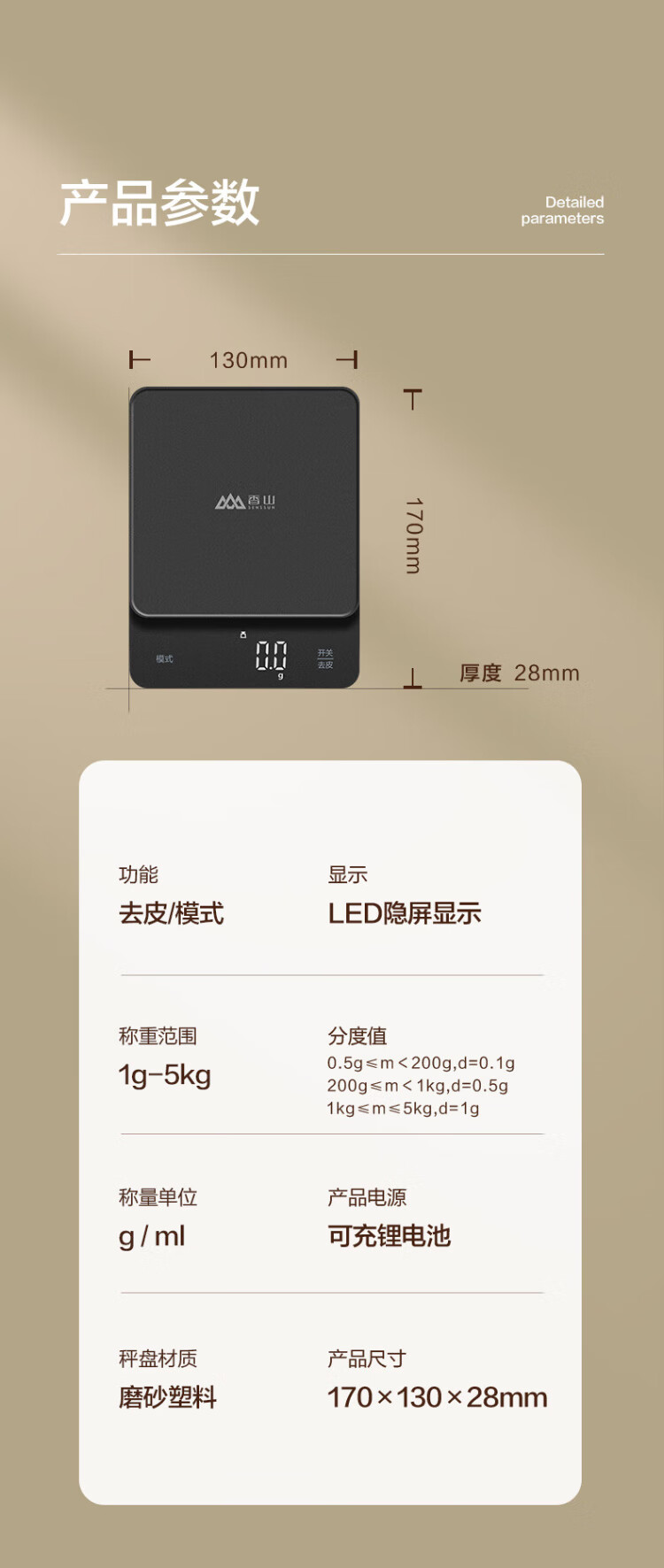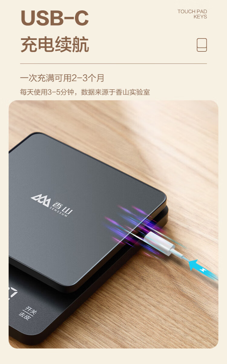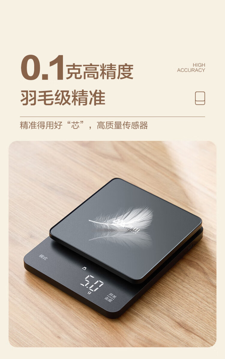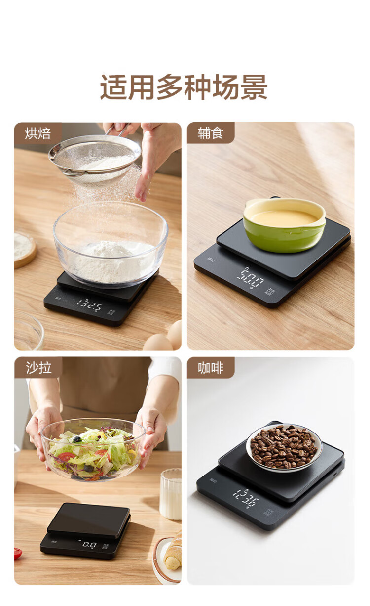 Xiangshan Smart Scale Kitchen Scale Electronic Scale Household Scale Baking Scale Gram Scale 0.1g LED Display Type-C Rechargeable Model