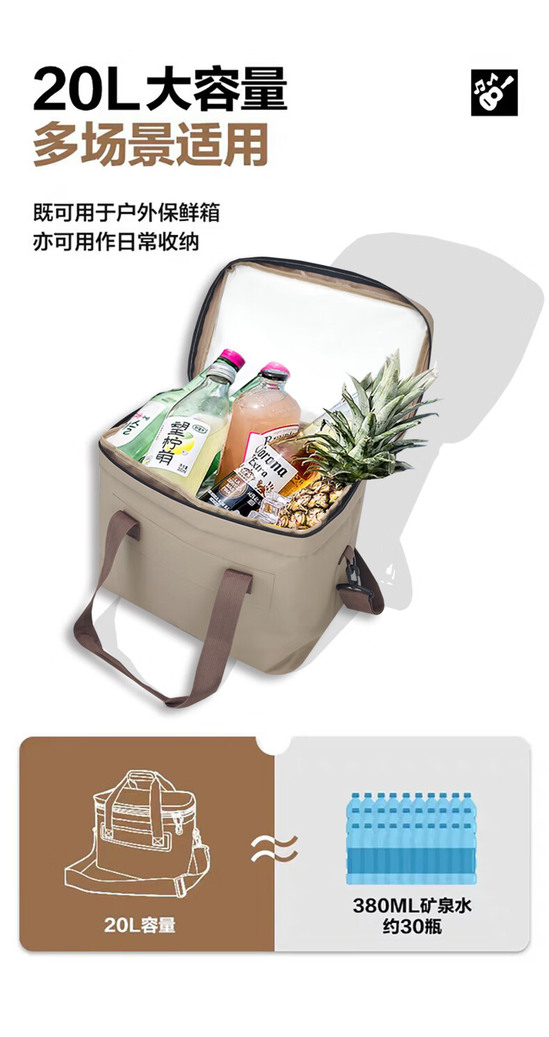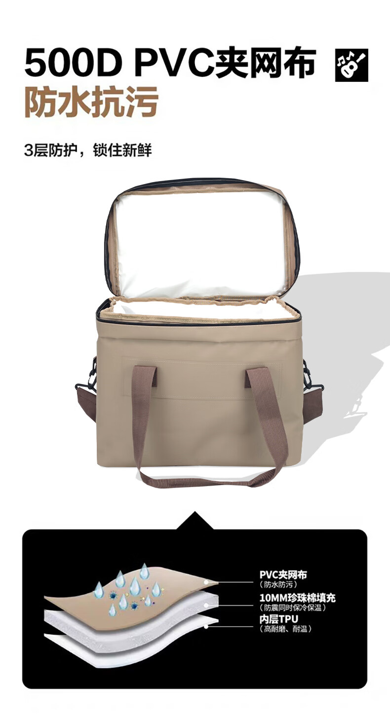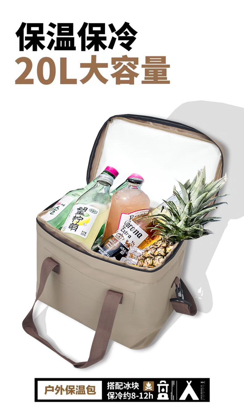 Bag Gole insulation bag 20L thickened large capacity portable picnic insulation bag stall takeout sealed insulation box coffee color 20L