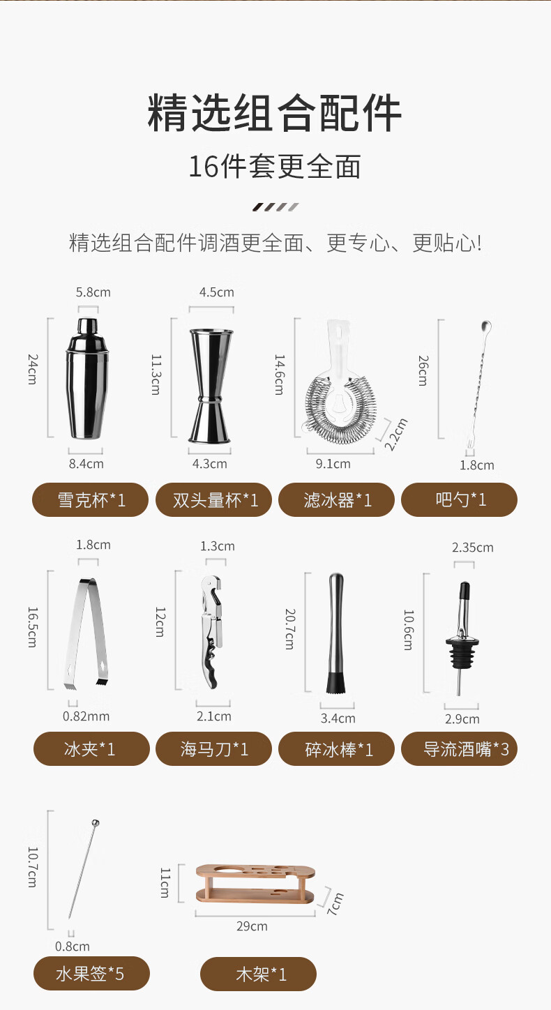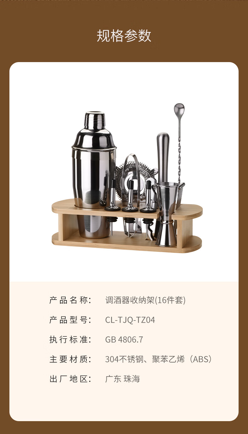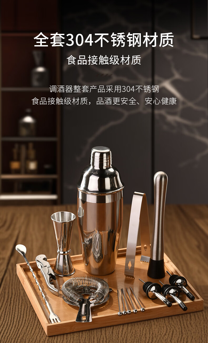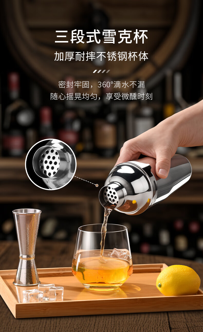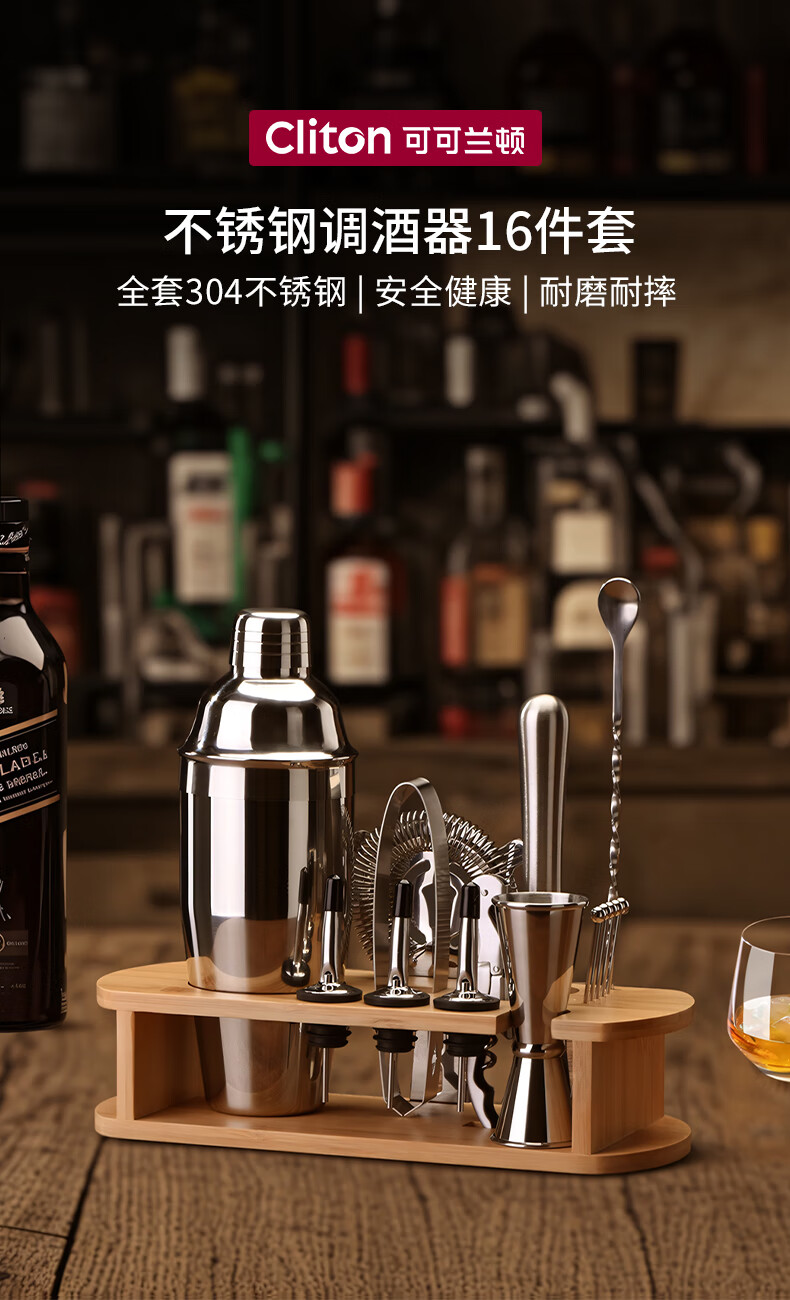CLITON304 stainless steel cocktail mixer, milk tea shop hand-made lemon artifact cocktail hand-shake shaker cup and pot 16-piece set