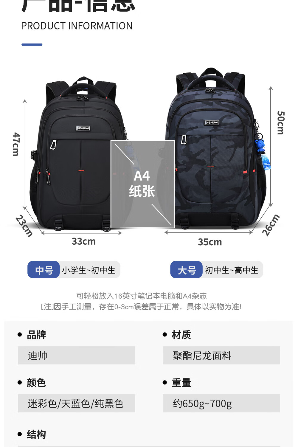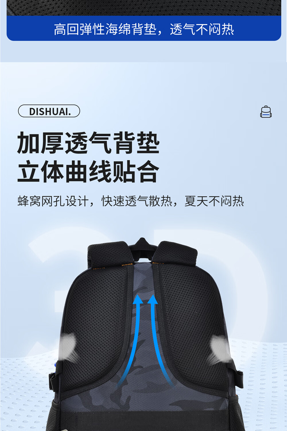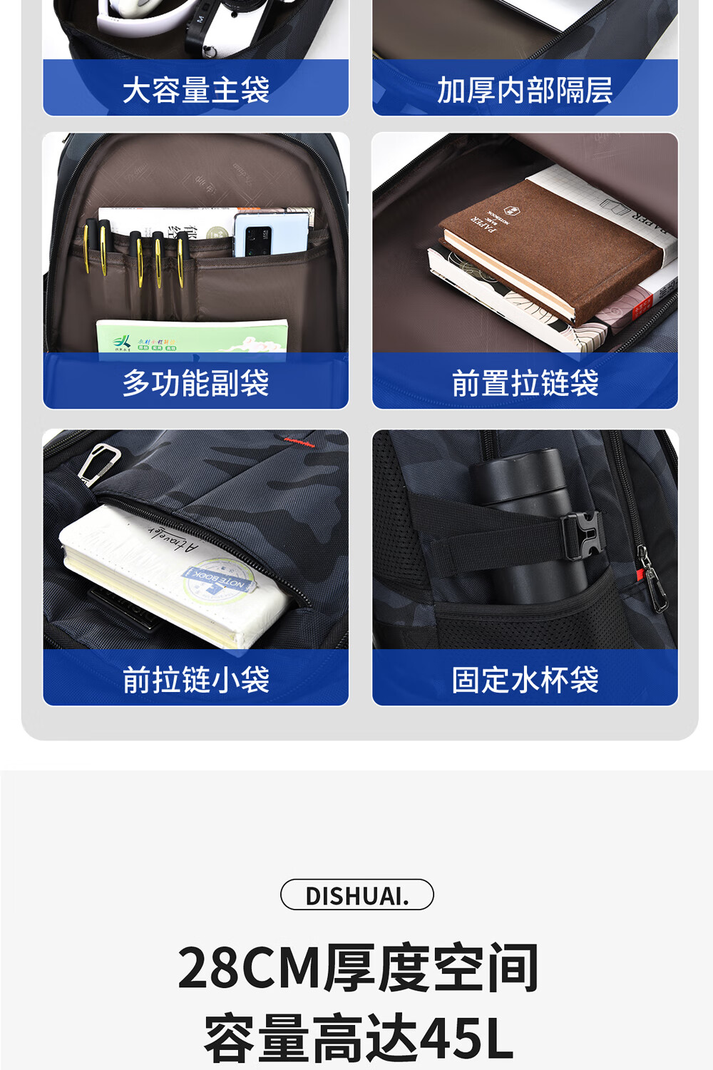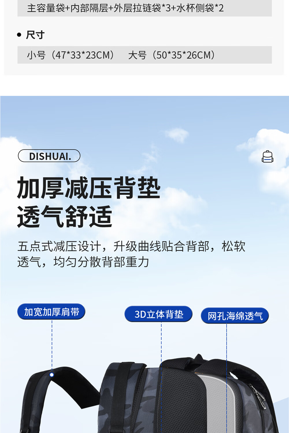 Di Shuai schoolbag junior high school boy 45L large capacity spine protection burden reduction lightweight middle school high school student backpack
