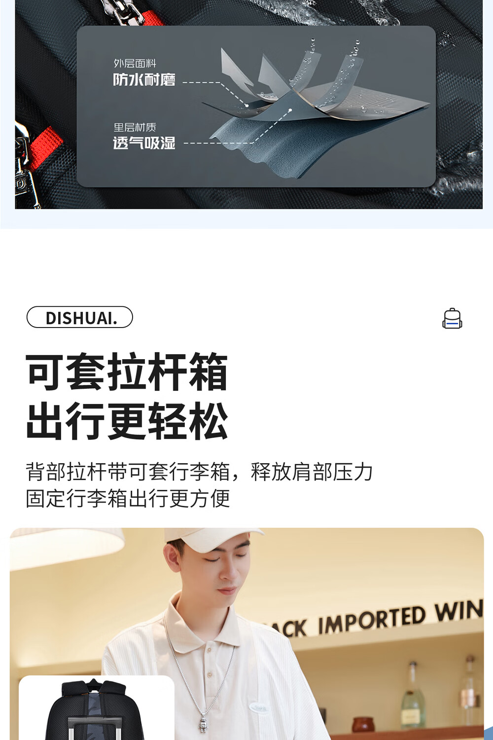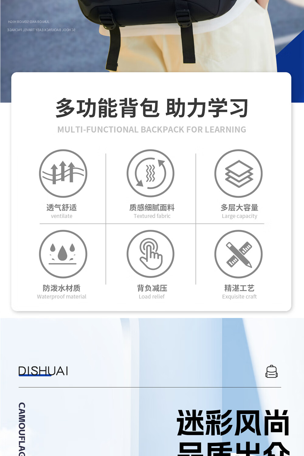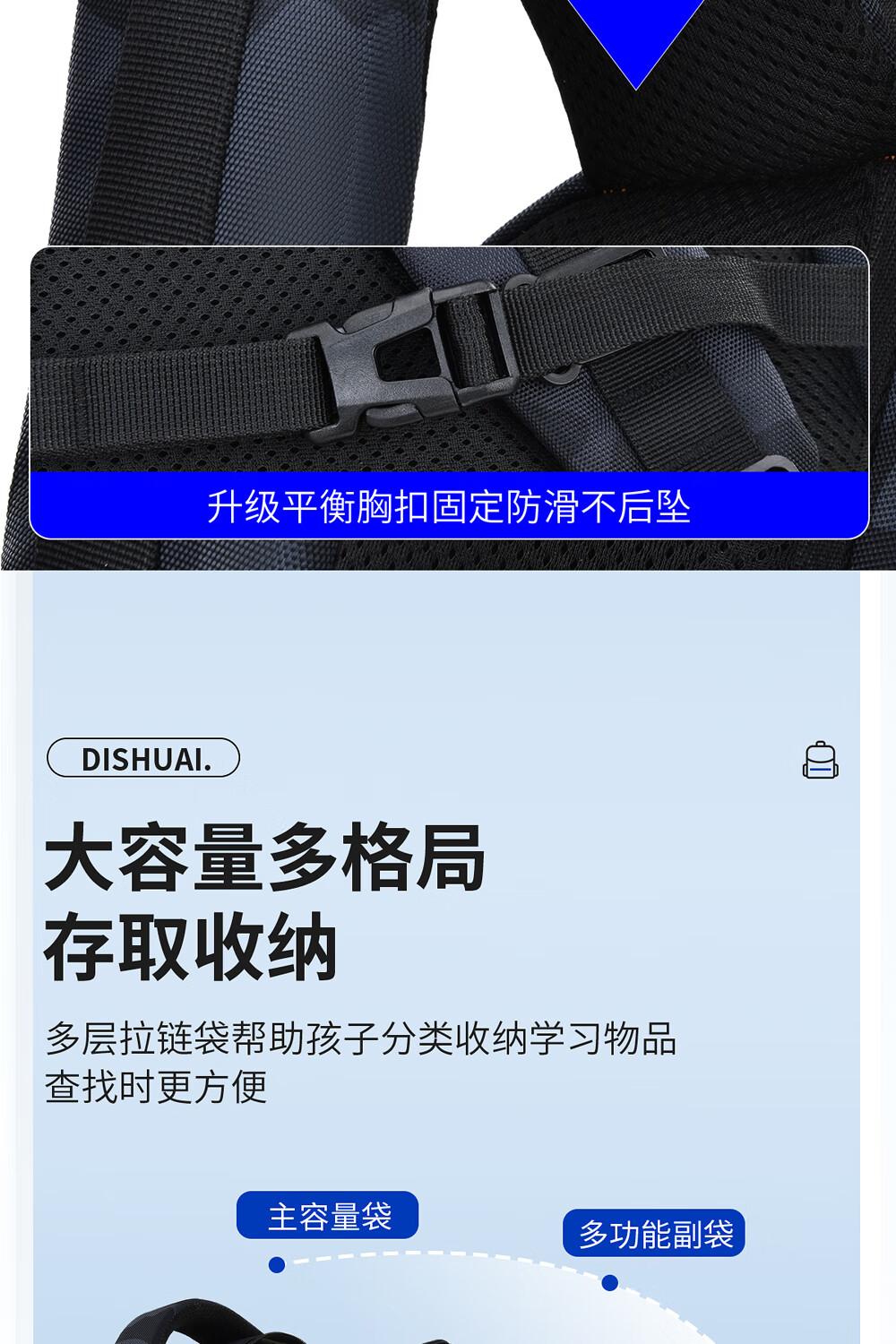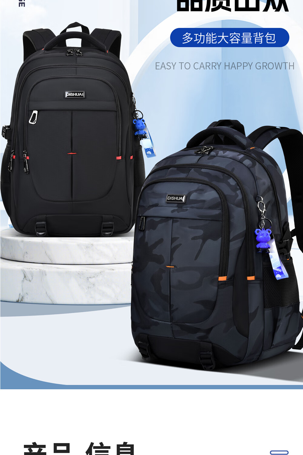 Di Shuai schoolbag junior high school boy 45L large capacity spine protection burden reduction lightweight middle school high school student backpack