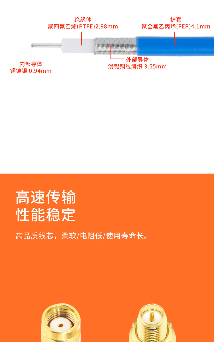Menitian SMA male inner needle to SMA curved male inner needle RF connection cable RG402/141 semi-flexible high frequency 18G extension cable 15 meters RT-SMAJWJ/RG402-150