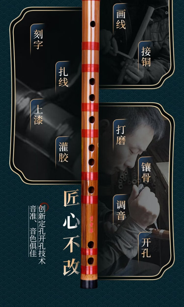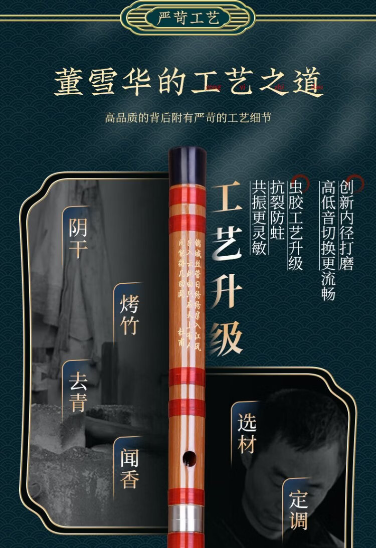 Dong Xuehua 8881 whole section bamboo flute flute one transverse flute beginner entry level student examination flute spiritual instrument CDEF key/G key