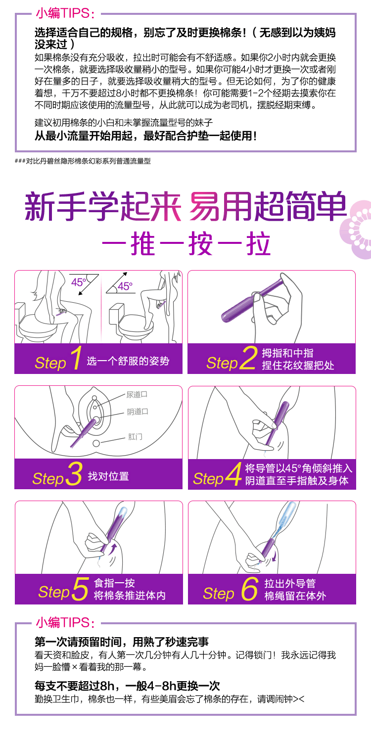 TAMPAX easy-to-push long duct type tampon swimming sanitary napkin invisible aunt napkin day and night use large flow type 7-pack