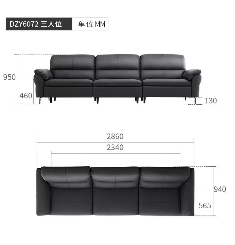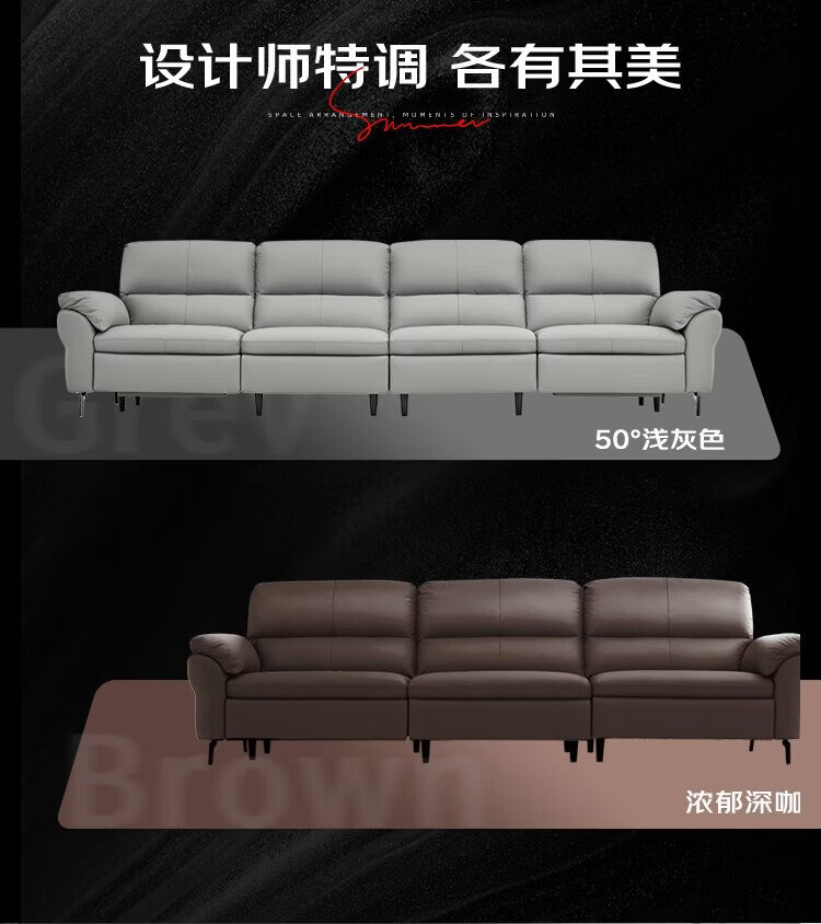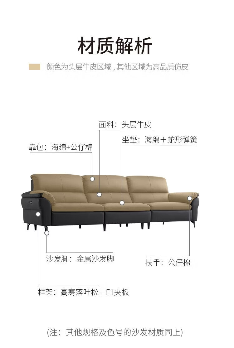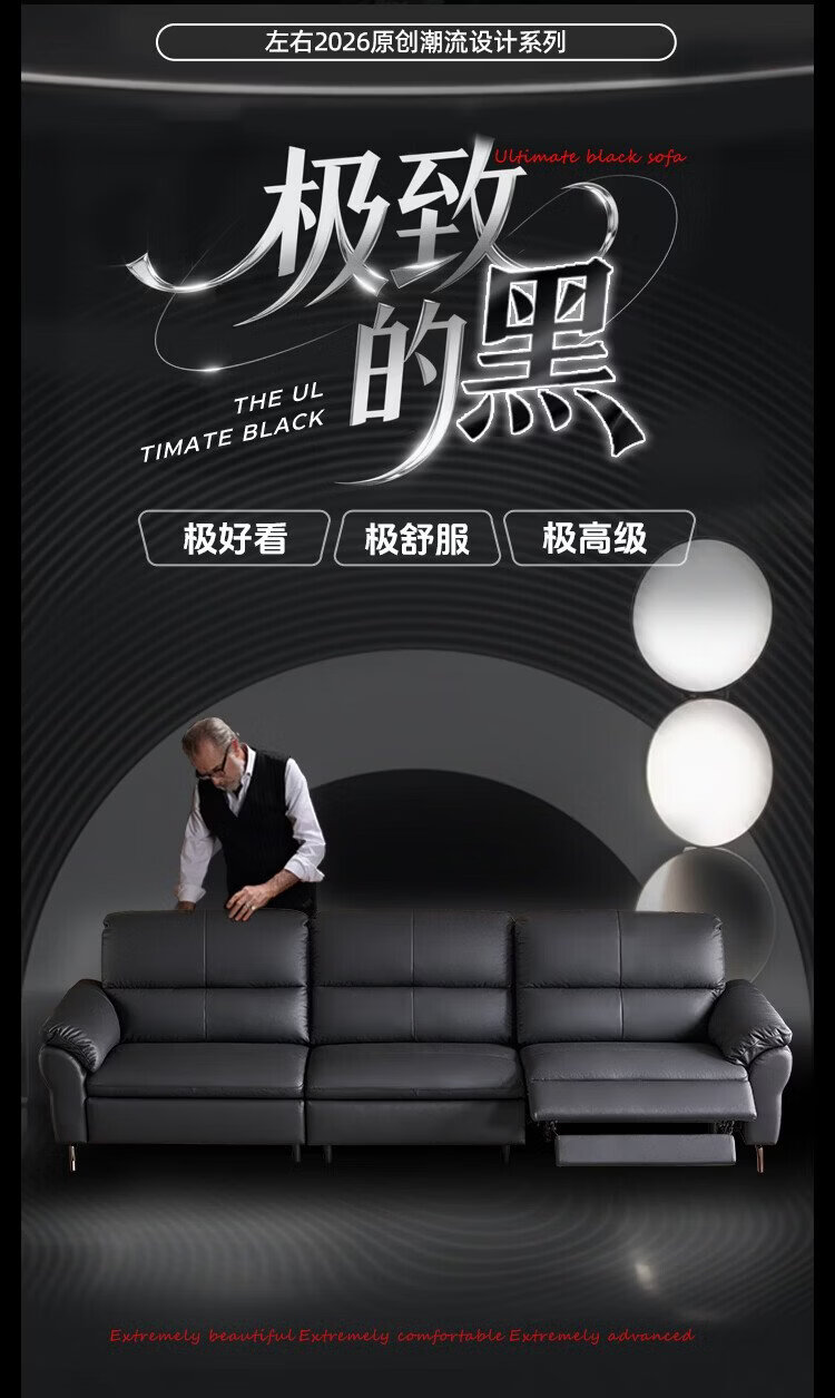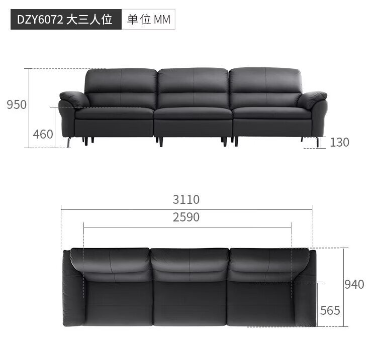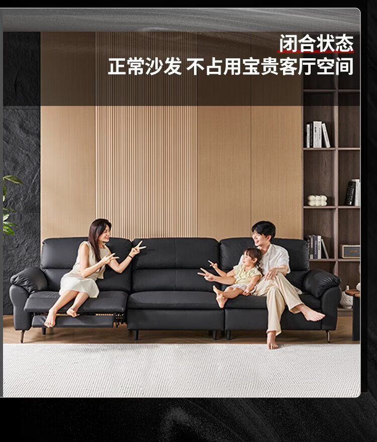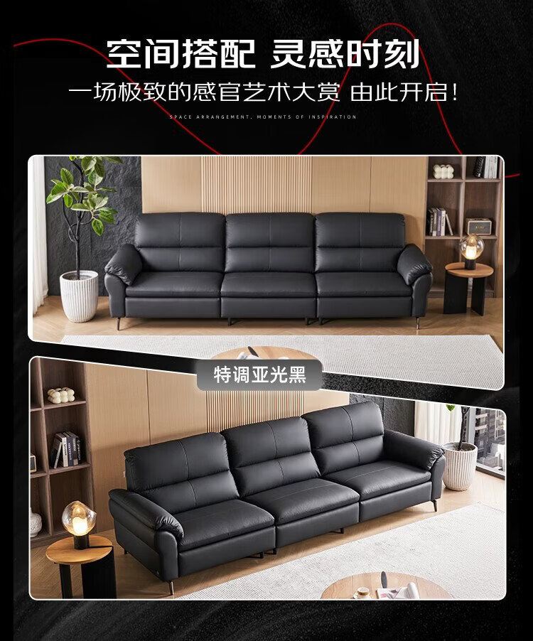 Left and right modern simple first-layer cowhide sofa with high legs and sweeper sofa 6072 3.11 meters large for three people black
