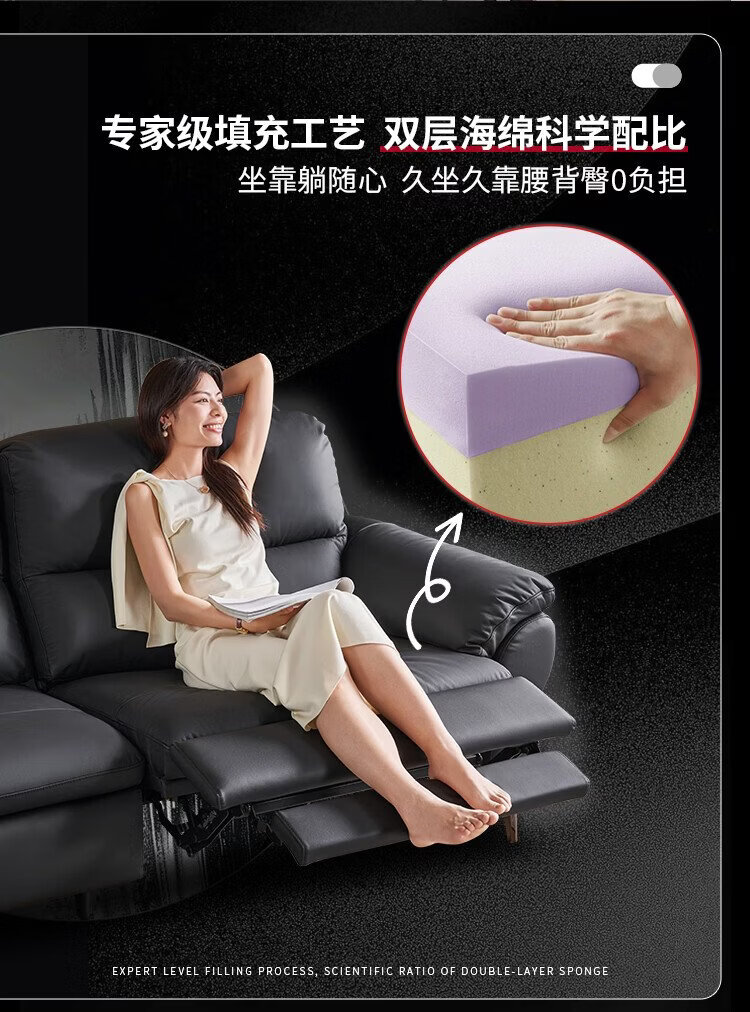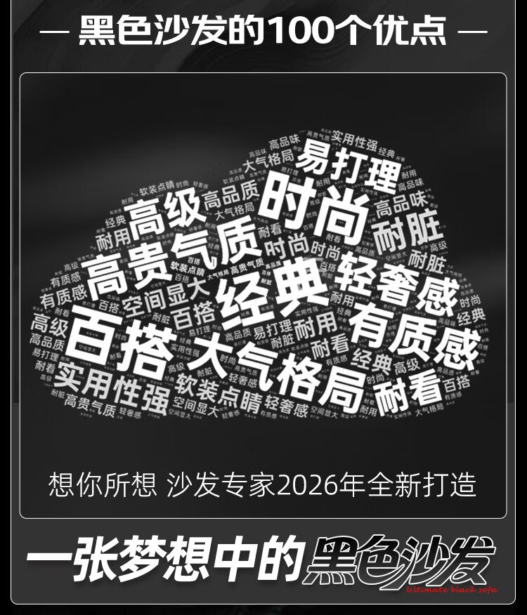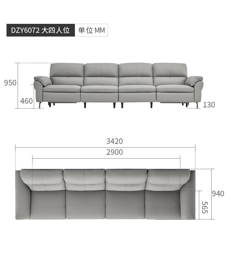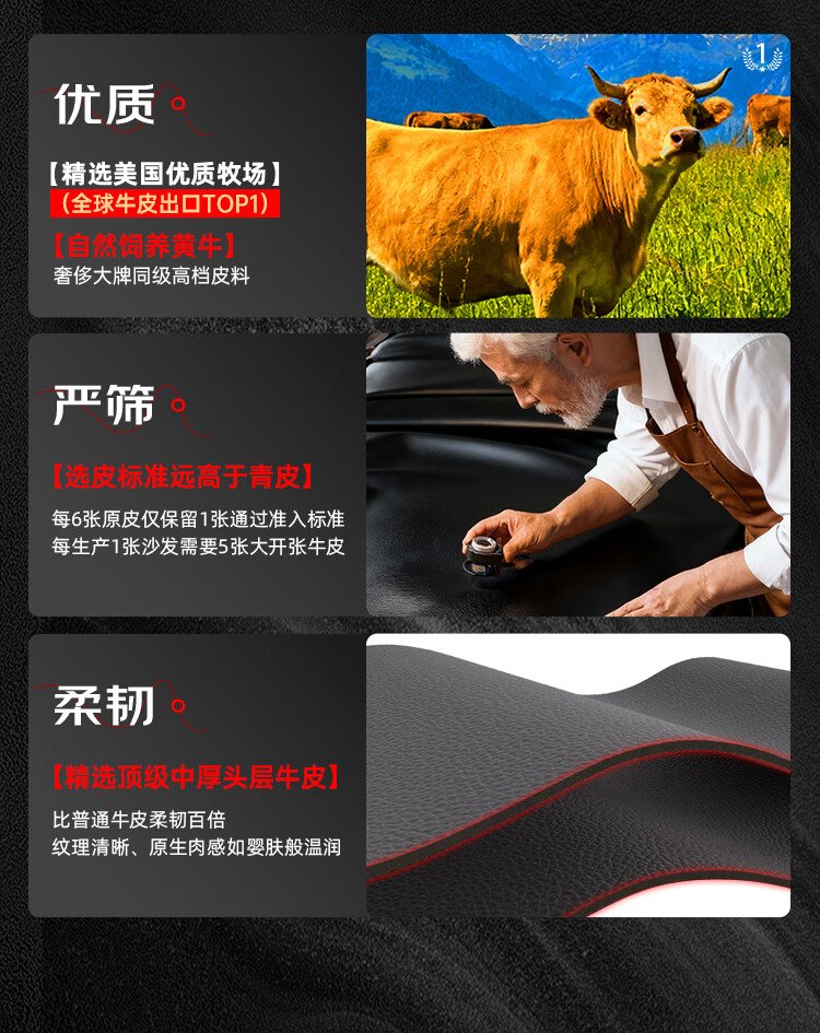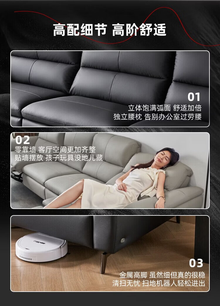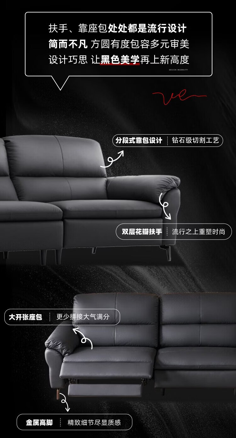 Left and right modern simple first-layer cowhide sofa with high legs and sweeper sofa 6072 3.11 meters large for three people black