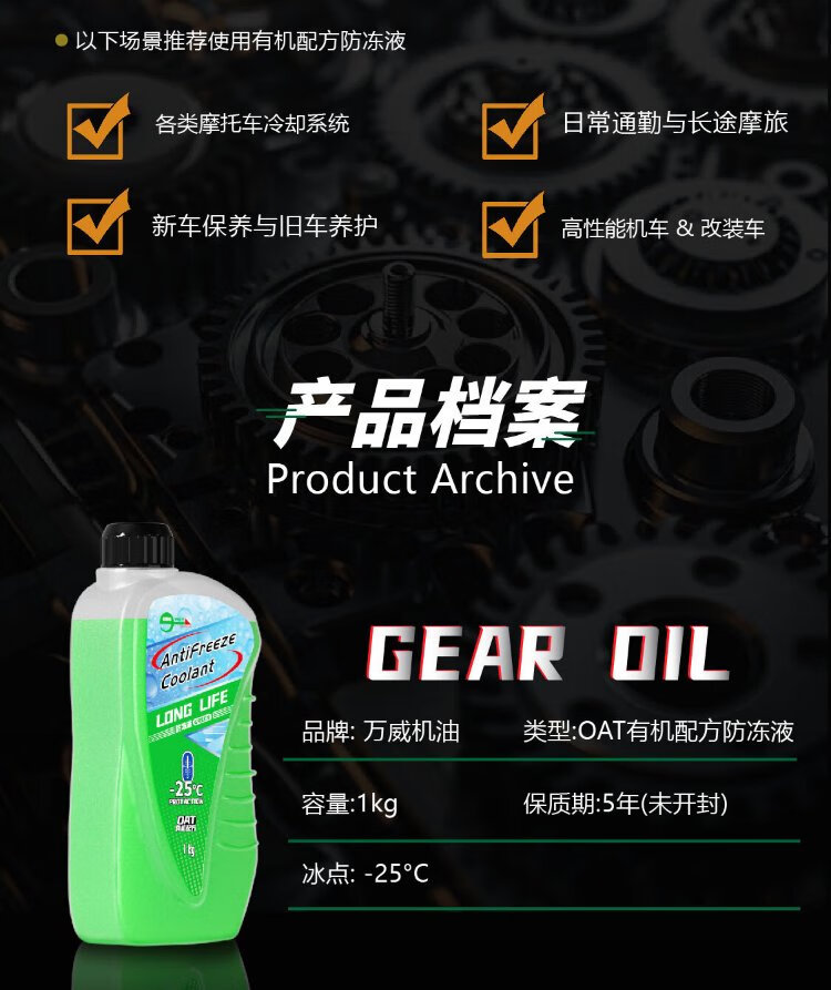 Wanwei Engine Oil Motorcycle Special Antifreeze-25 Antifreeze OAT organic long-lasting formula antifreeze coolant