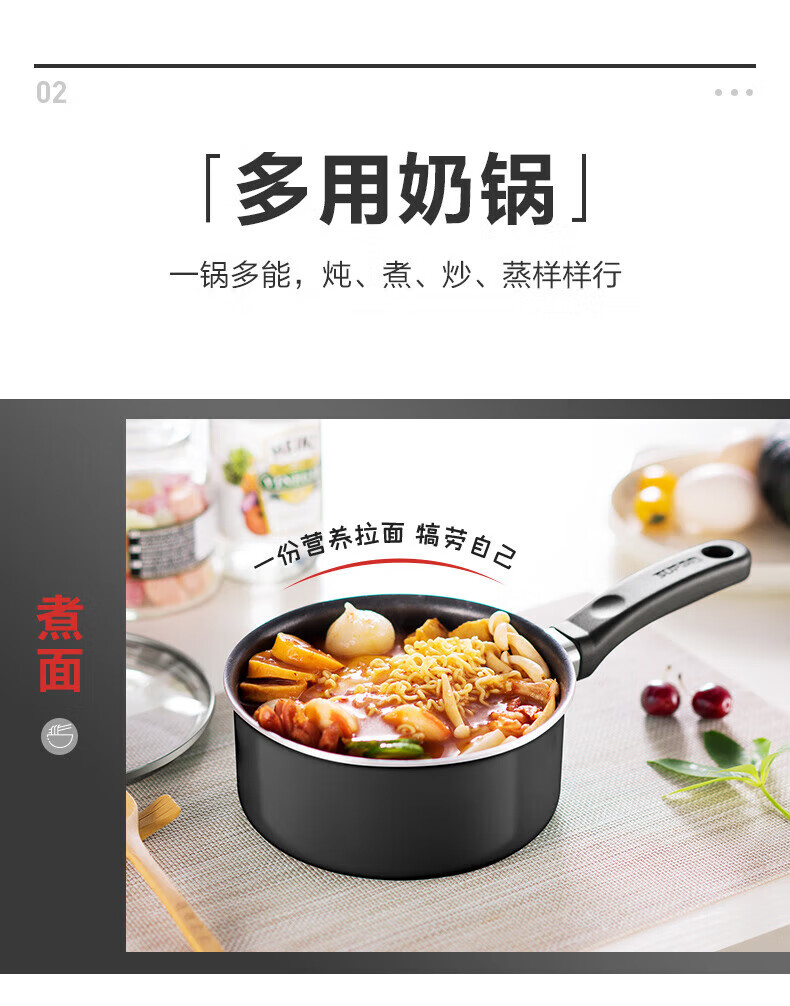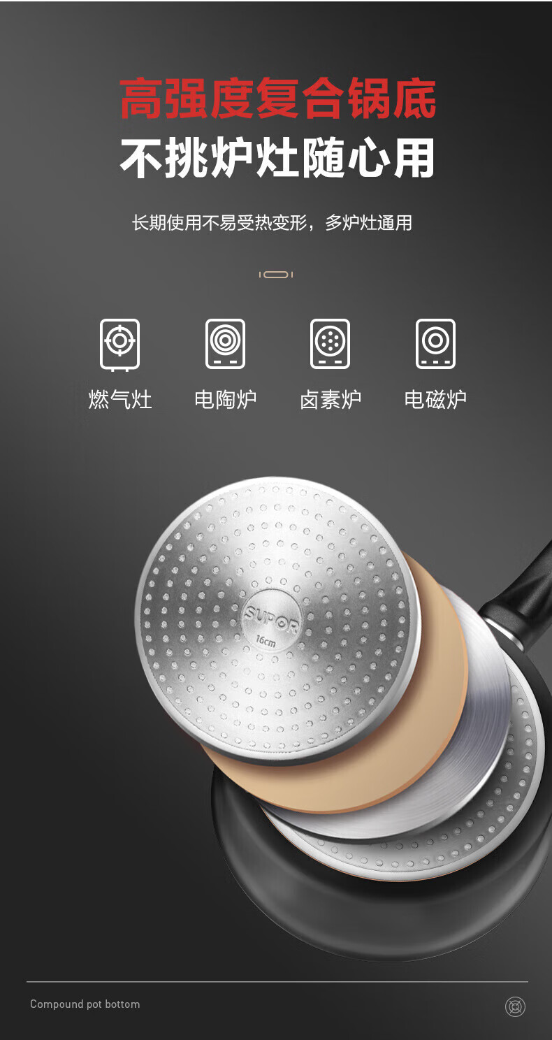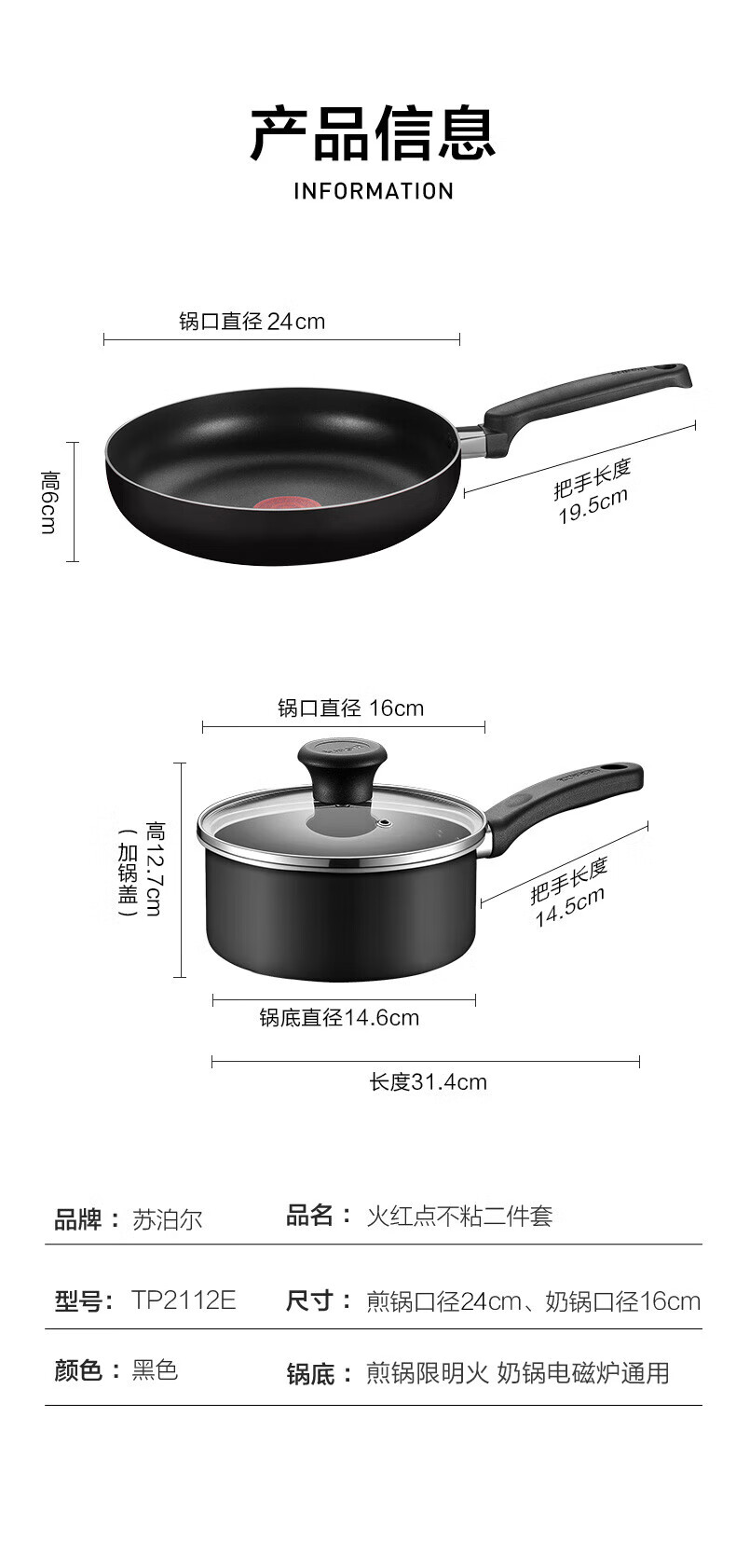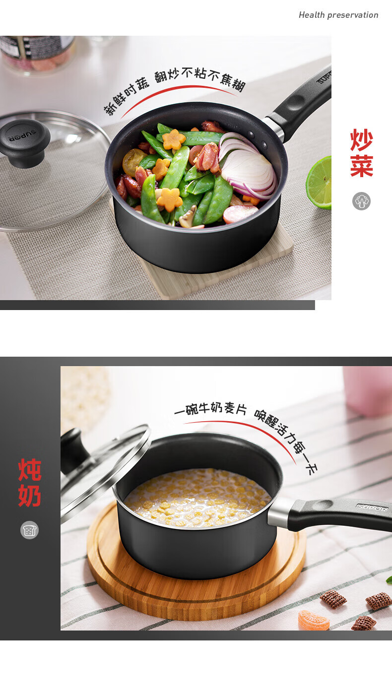 SUPOR pot set, red dot non-stick black two-piece frying pan open flame special milk pot gas induction cooker available TP2112E