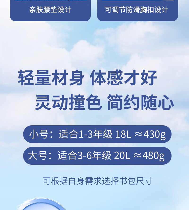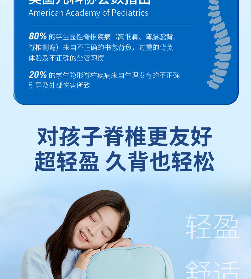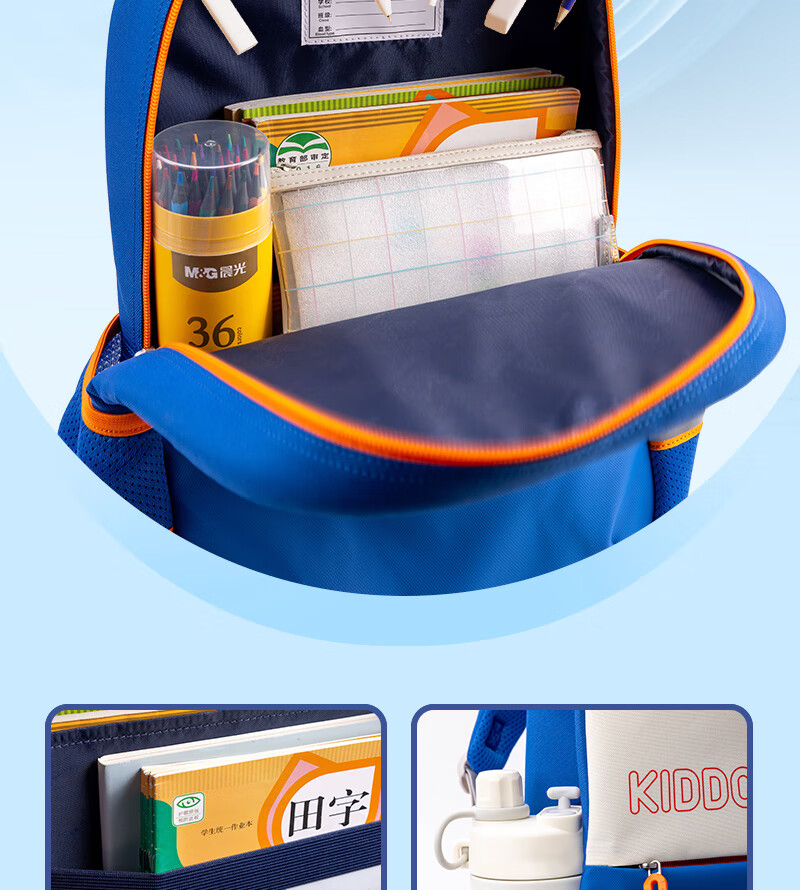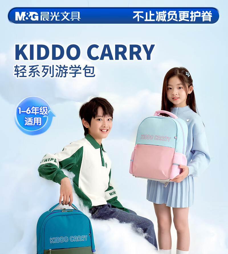 Morning Light (M&G) ultra-light spine-protecting elementary school schoolbag large-capacity load-reducing spine-protecting shoulder travel backpack for grades 3-6 classic blue