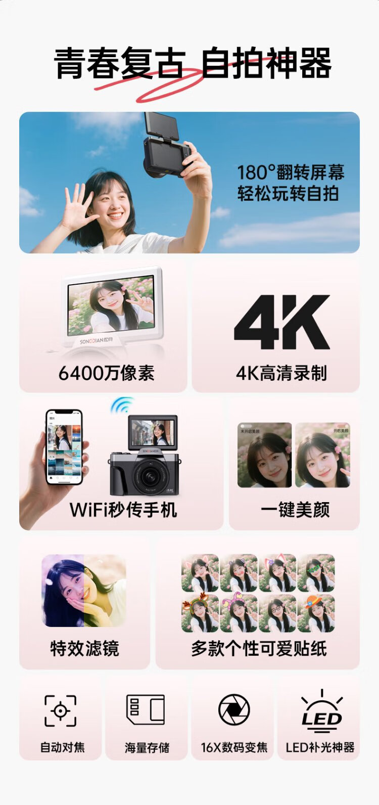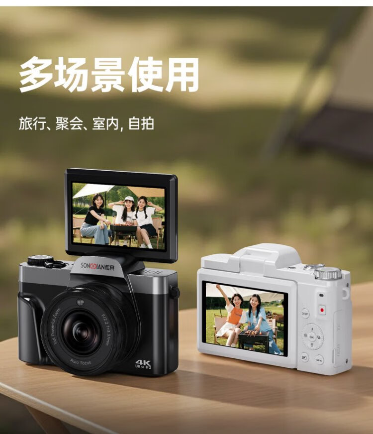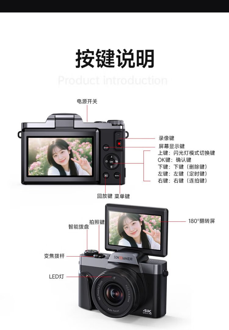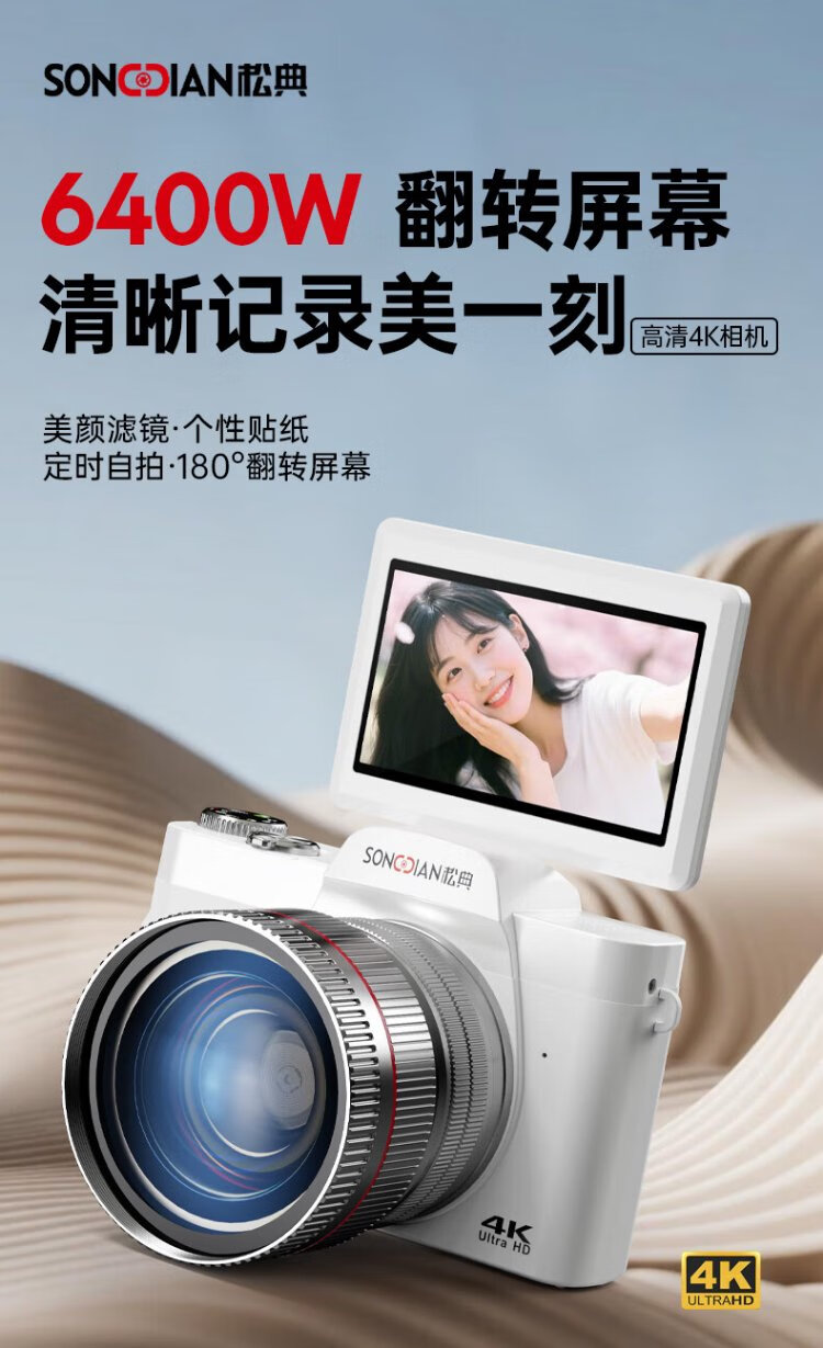 SONGDIAN digital camera 64 million pixels flip screen selfie vlog entry-level campus high-definition mirrorless camera photo travel DC103W black 128G memory