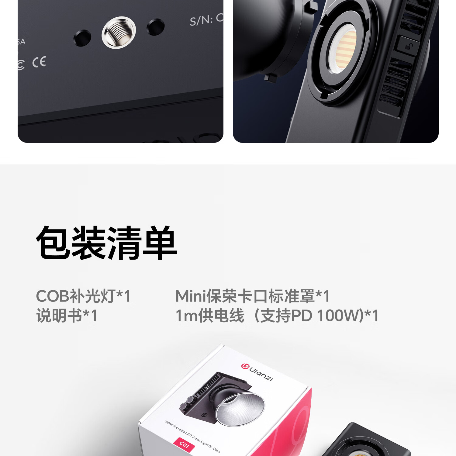 Ulanzi excellent basket C01 photography fill light 100W film and television COB light live broadcast special portrait lighting outdoor portable beauty soft light photo two-color temperature studio lighting