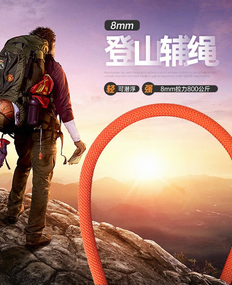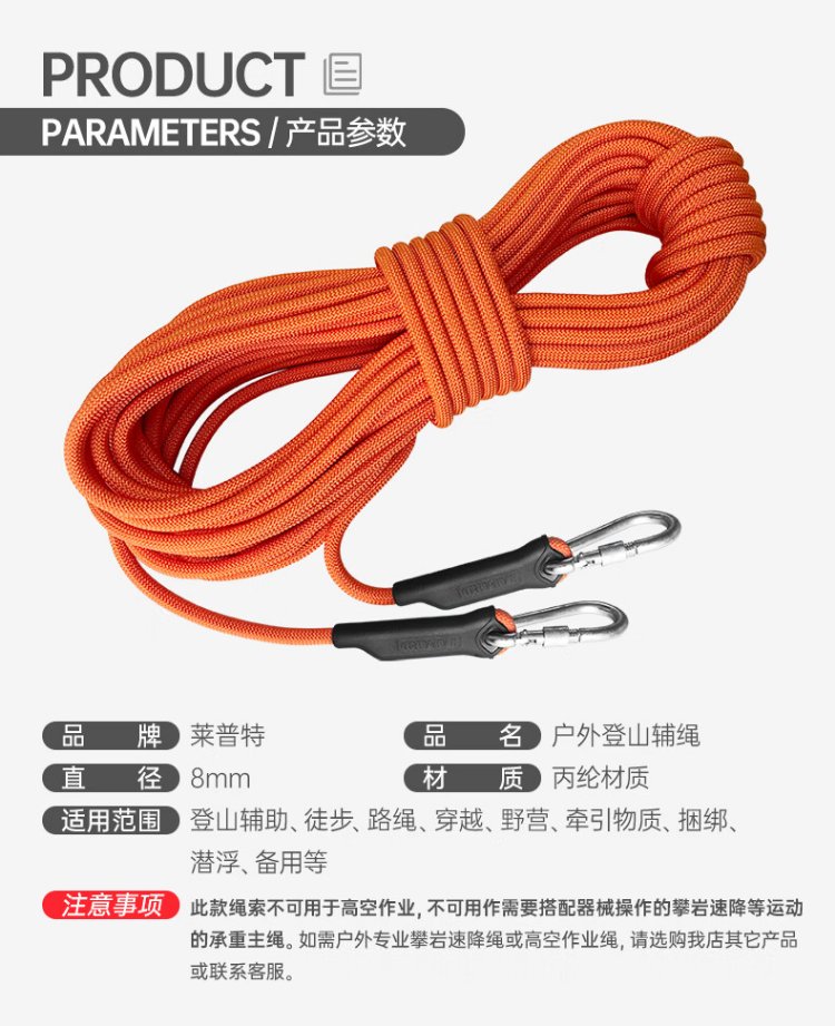 Lept safety rope climbing rope auxiliary rope aerial work rope wear-resistant outdoor rock climbing emergency floating rope special 8mm 30 meters