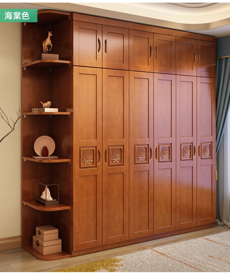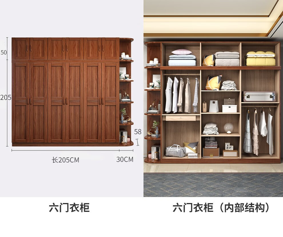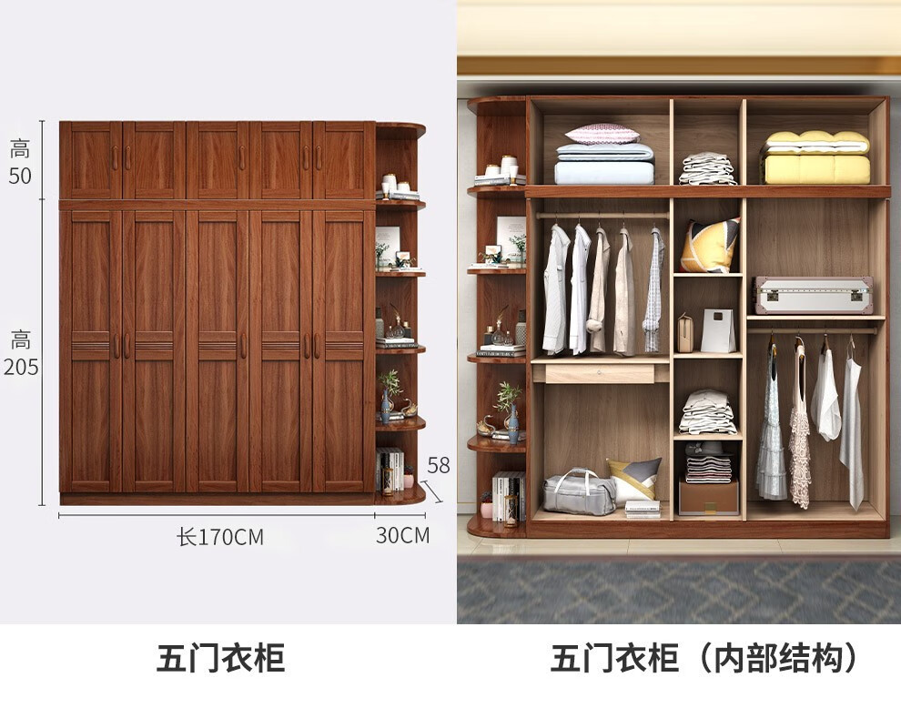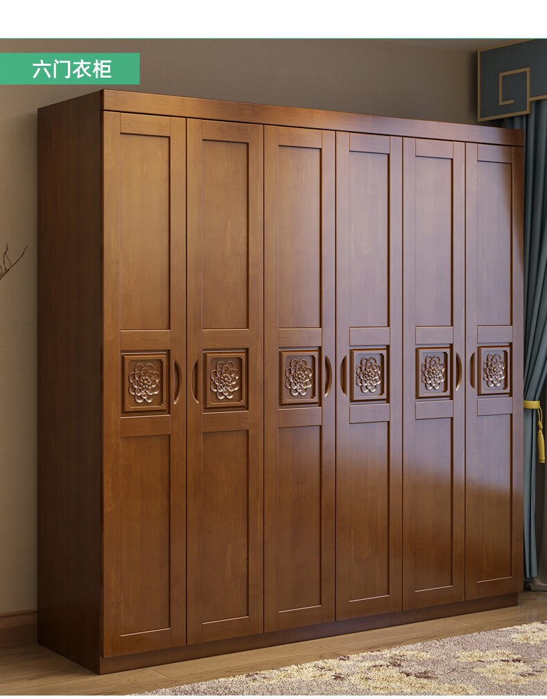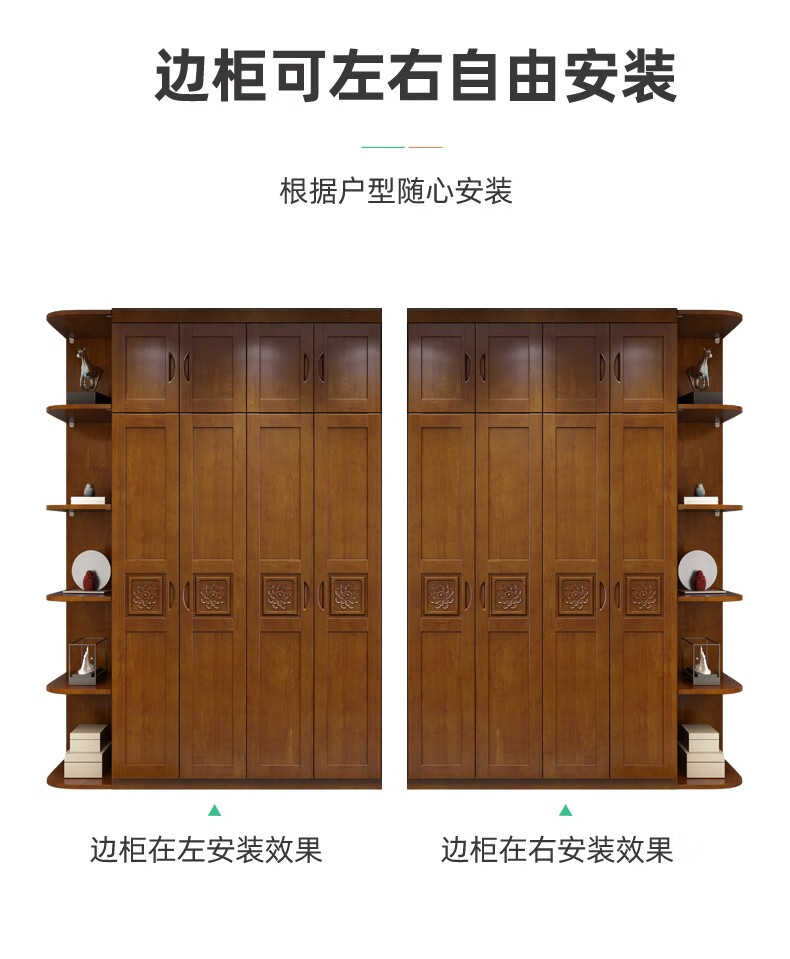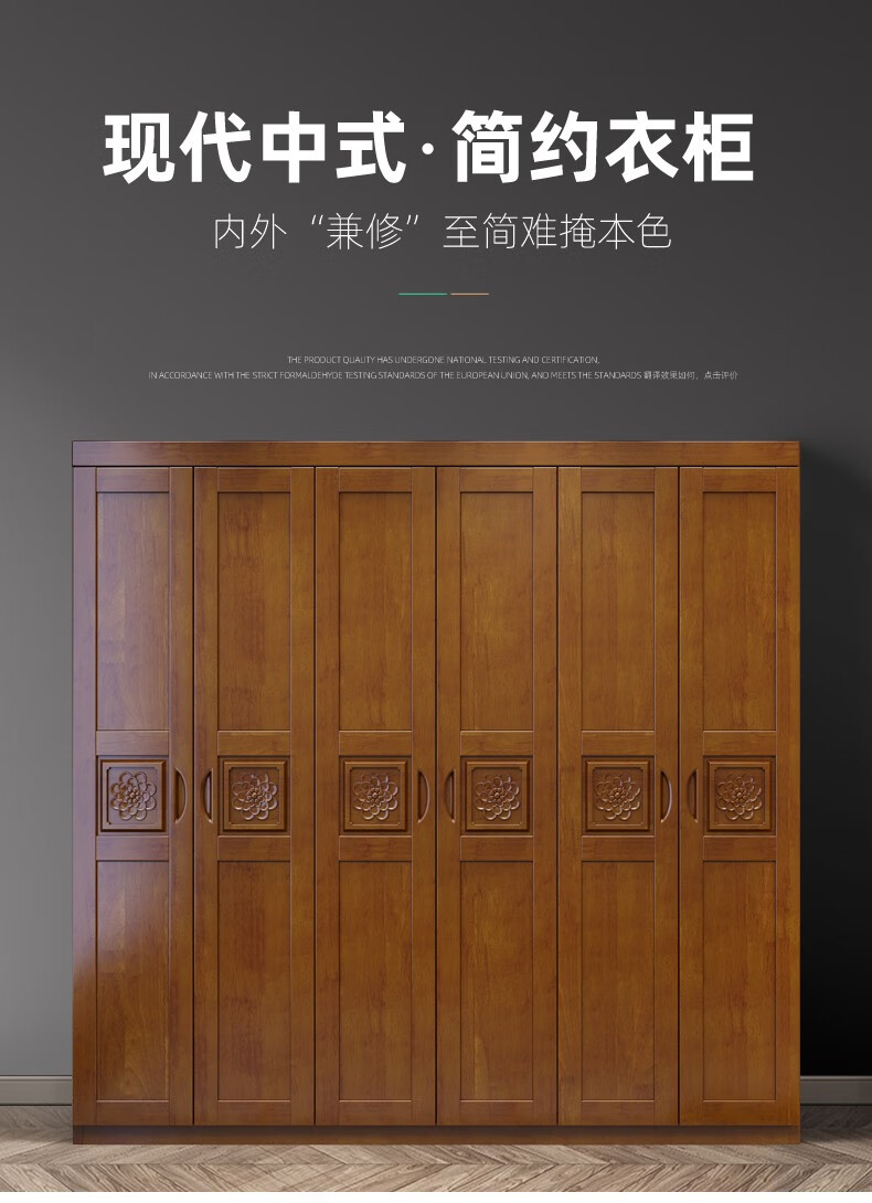 Millennium Shengshi Wardrobe Solid Wood Wardrobe Bedroom Simple Modern Chinese Style Multi-Door Combination Large Wardrobe Wooden Assembly Furniture Walnut Color Without Top Three Doors